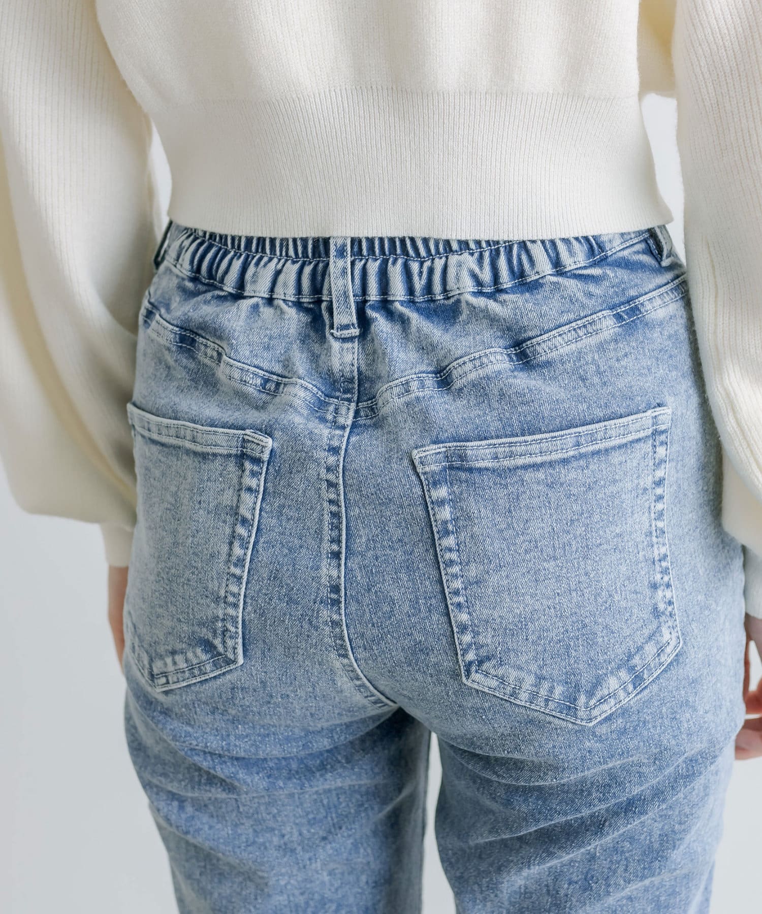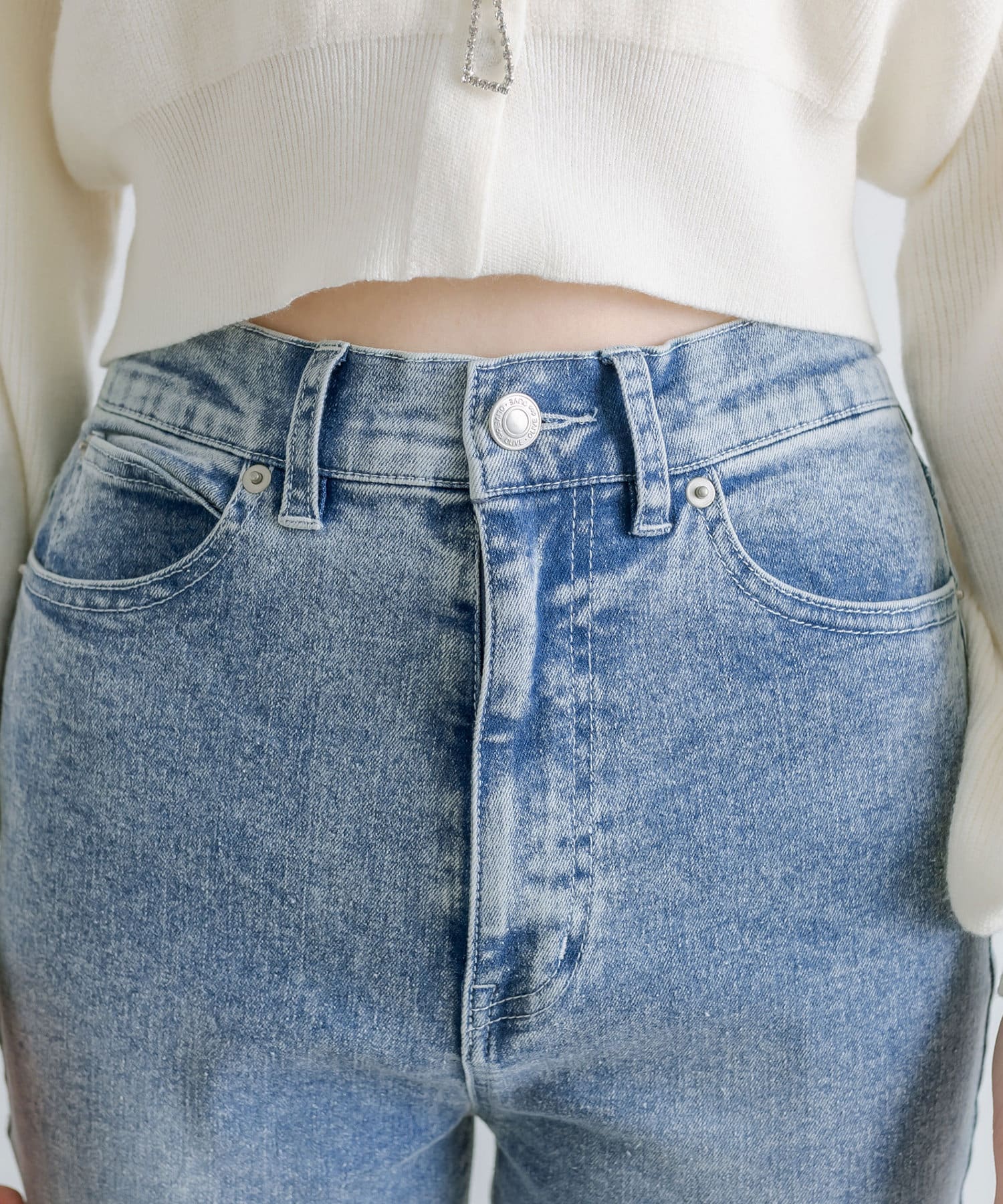 ・深めの股上で腰回りをカバー。ヒップラインからウエスト周りにかけて綺麗なカーブなので腰回りはすっきり見えします。