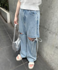 【新色追加/S・Mサイズ展開】サイドスリットリボンデニムパンツ