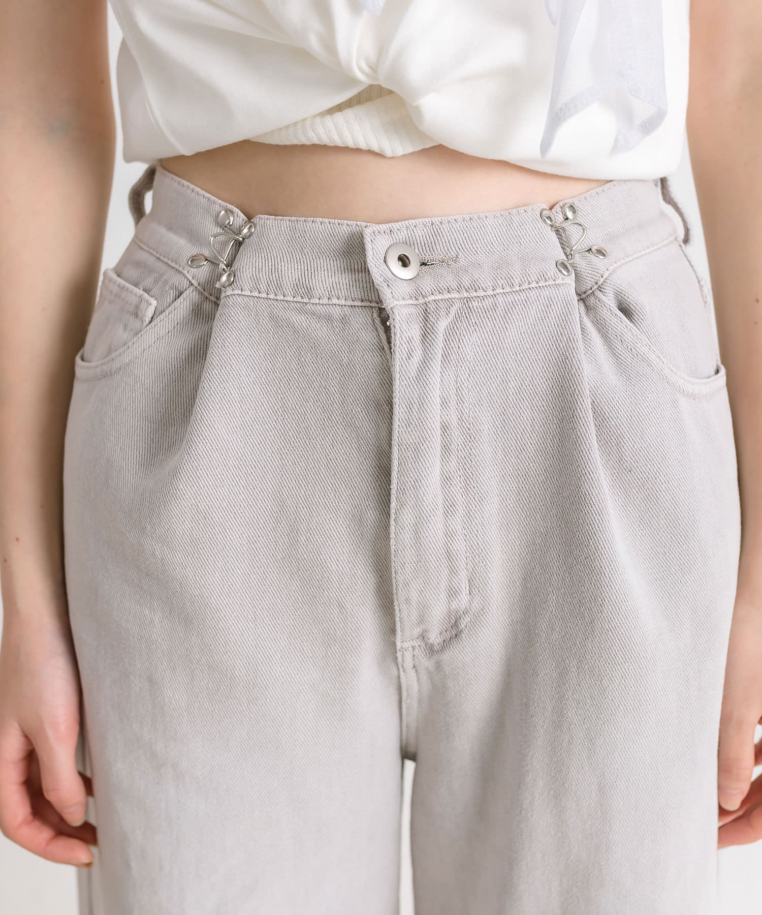 ・ウエストのホックを外すとローライズに。ホックを付けるとハイライズで着ていただけます。