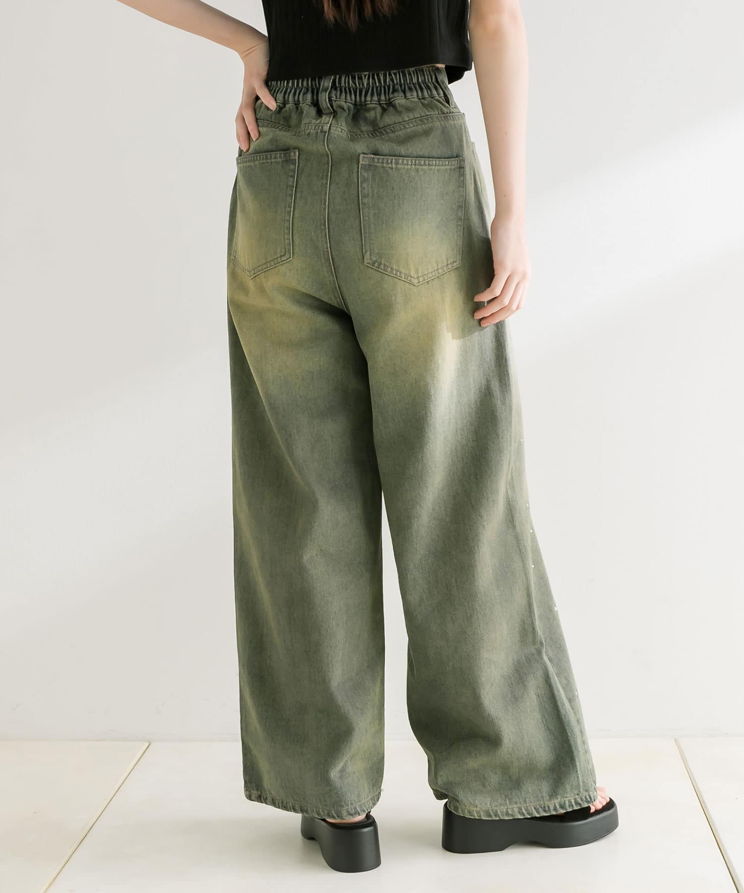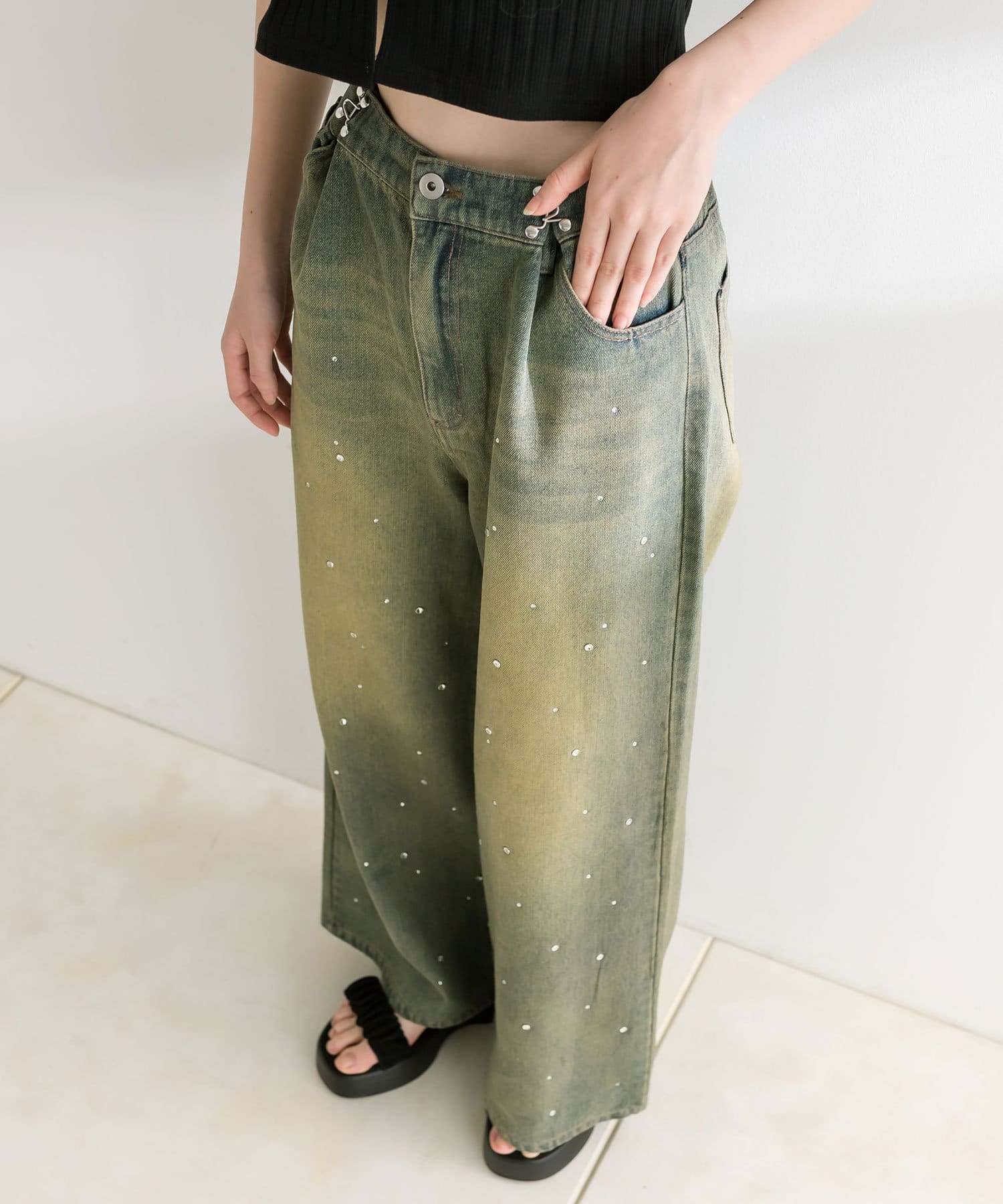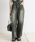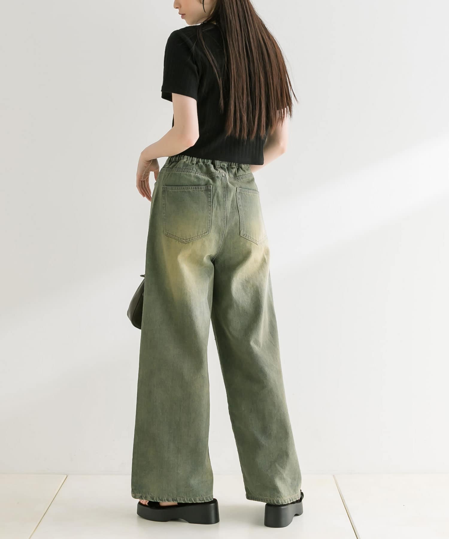 トレンドのオーバーダイ加工を施したワイドパンツ