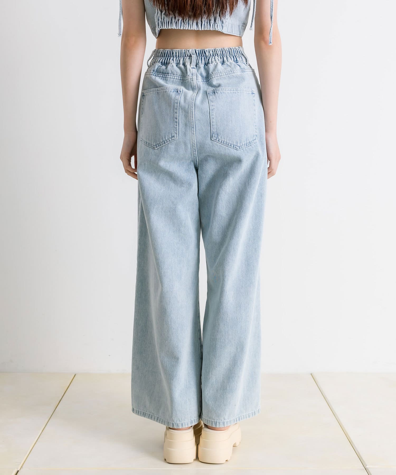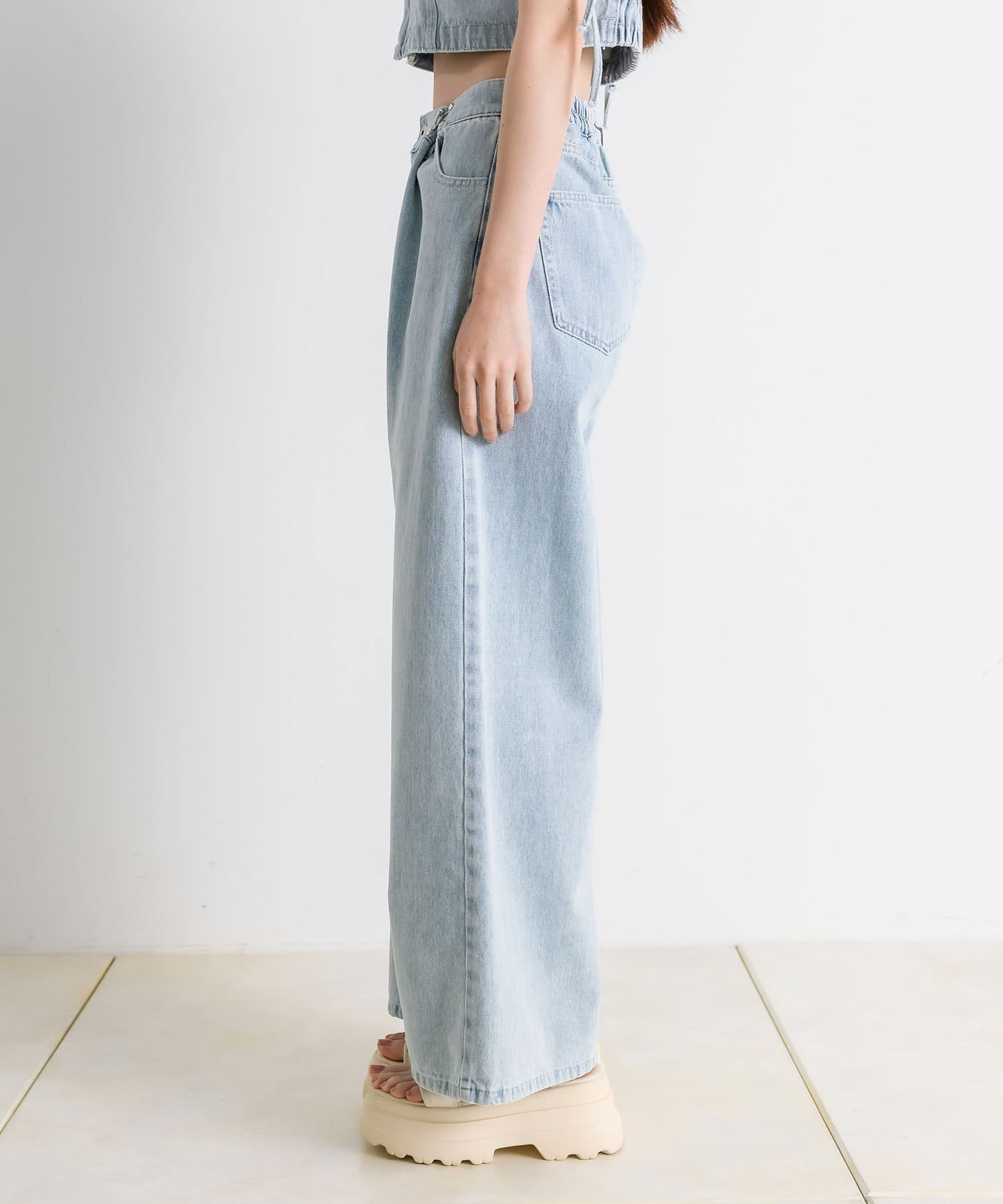 ウエストホックワイドデニムパンツ