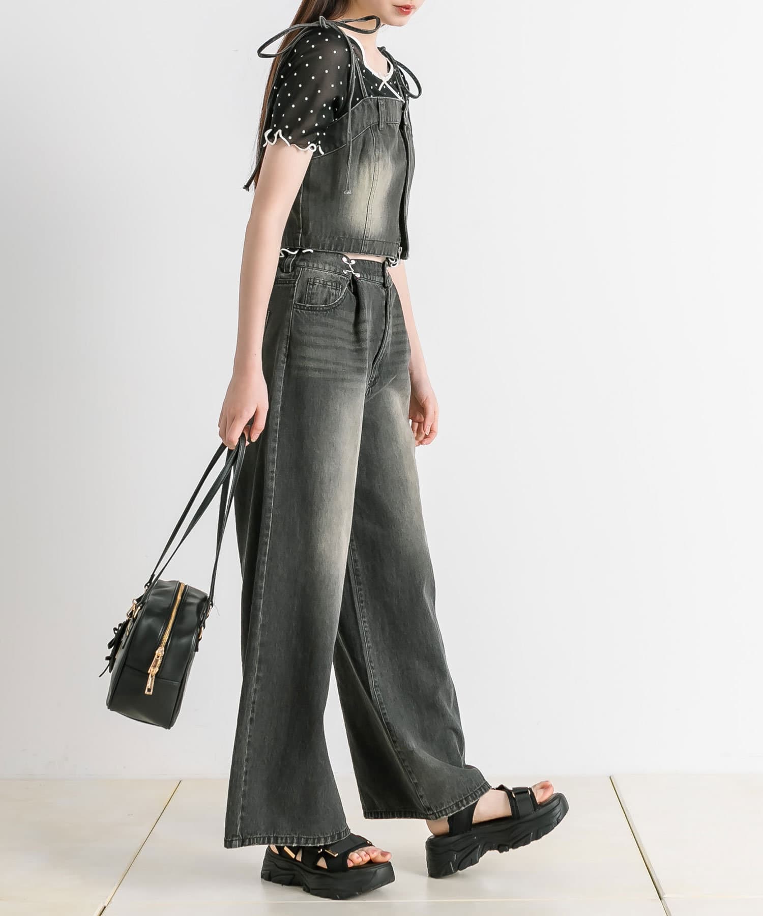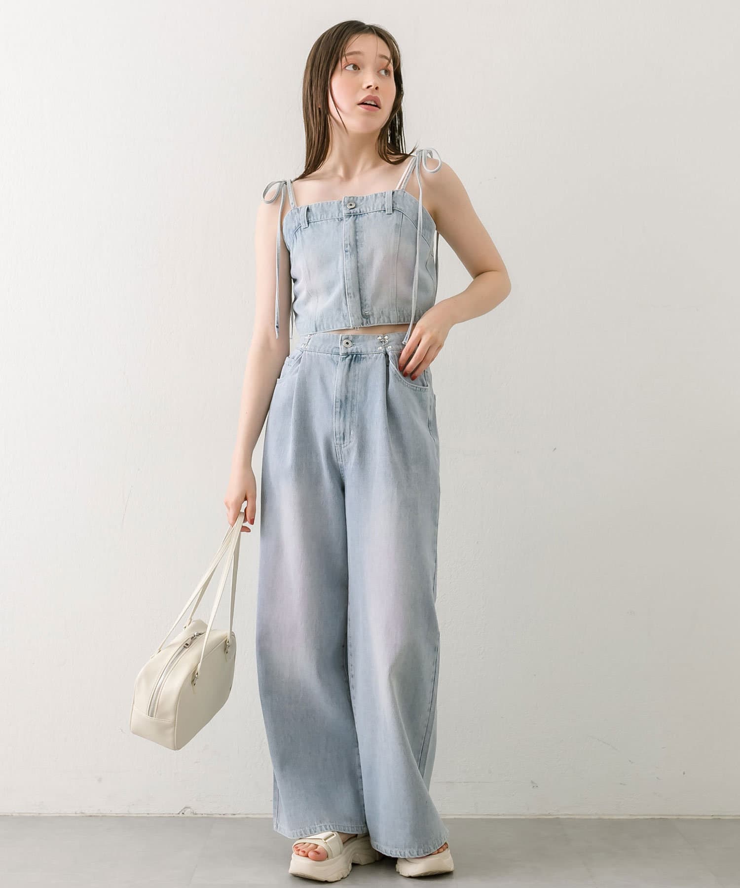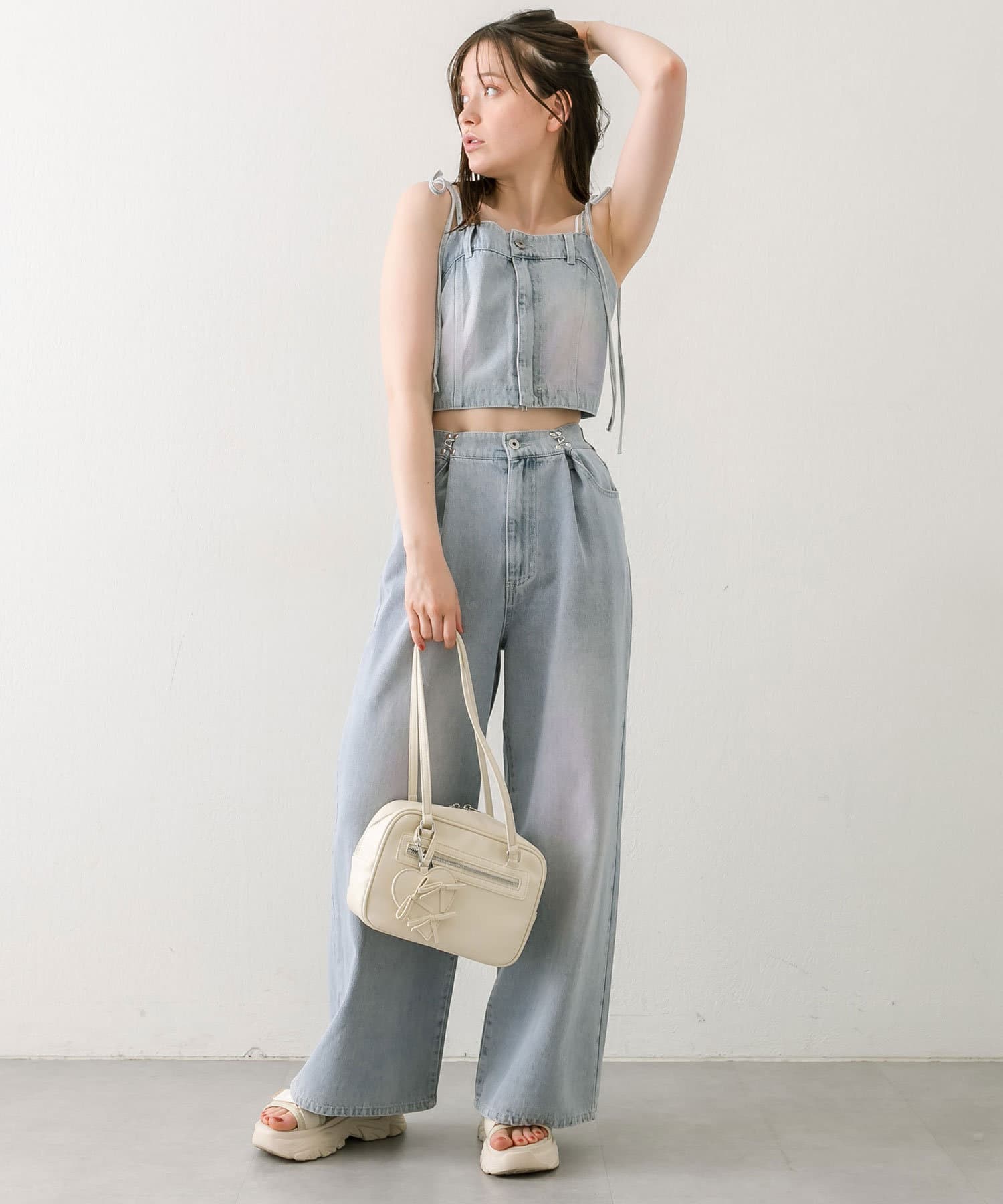 ・同色のパッチワークデニムビスチェ(品番: 1032040010)とセットアップで着用できます。