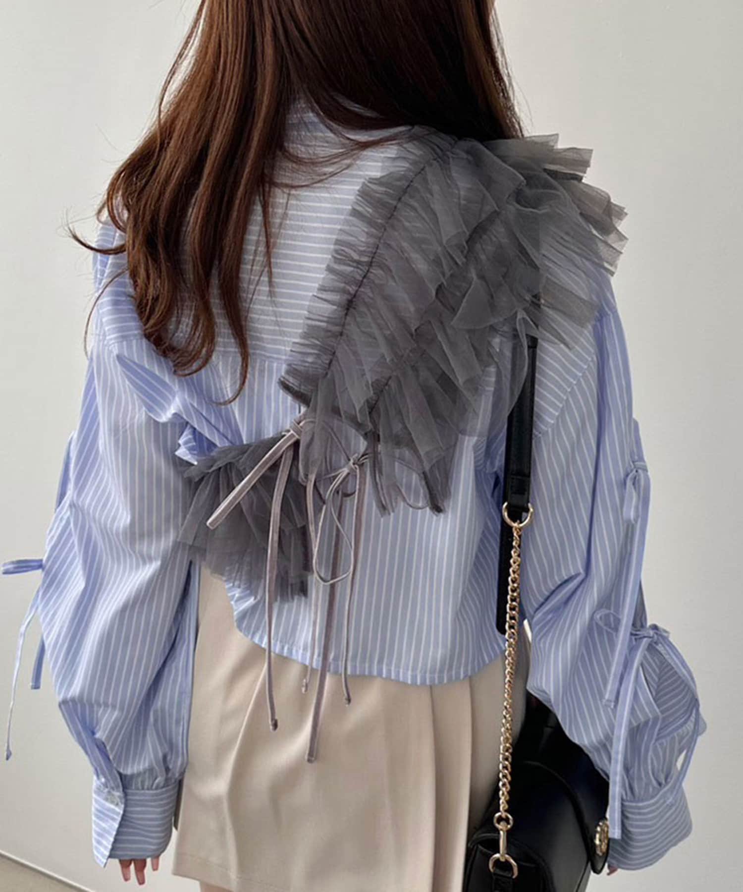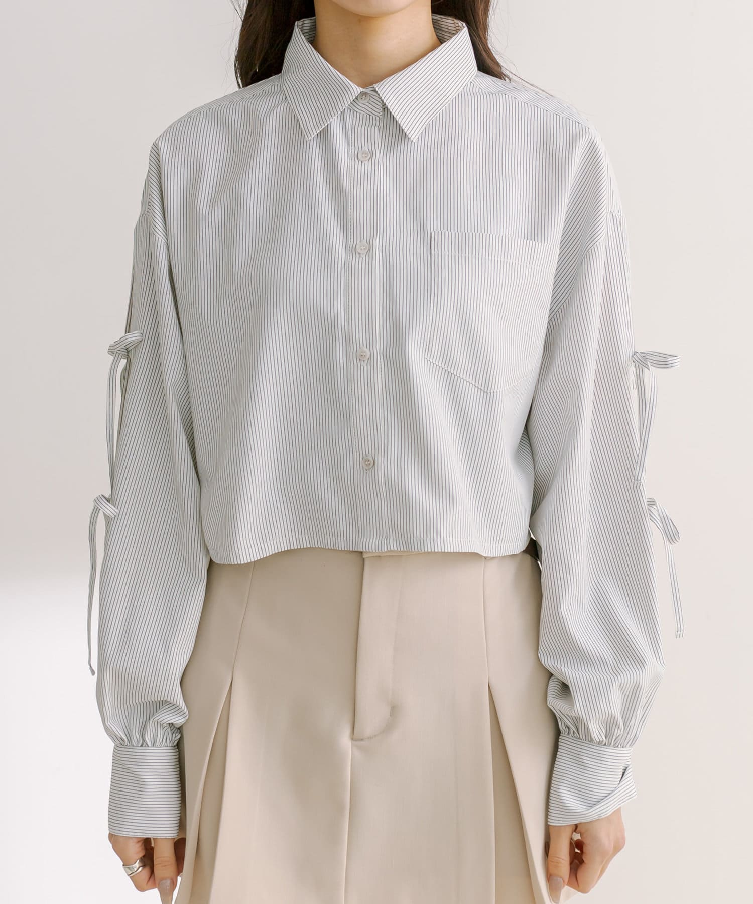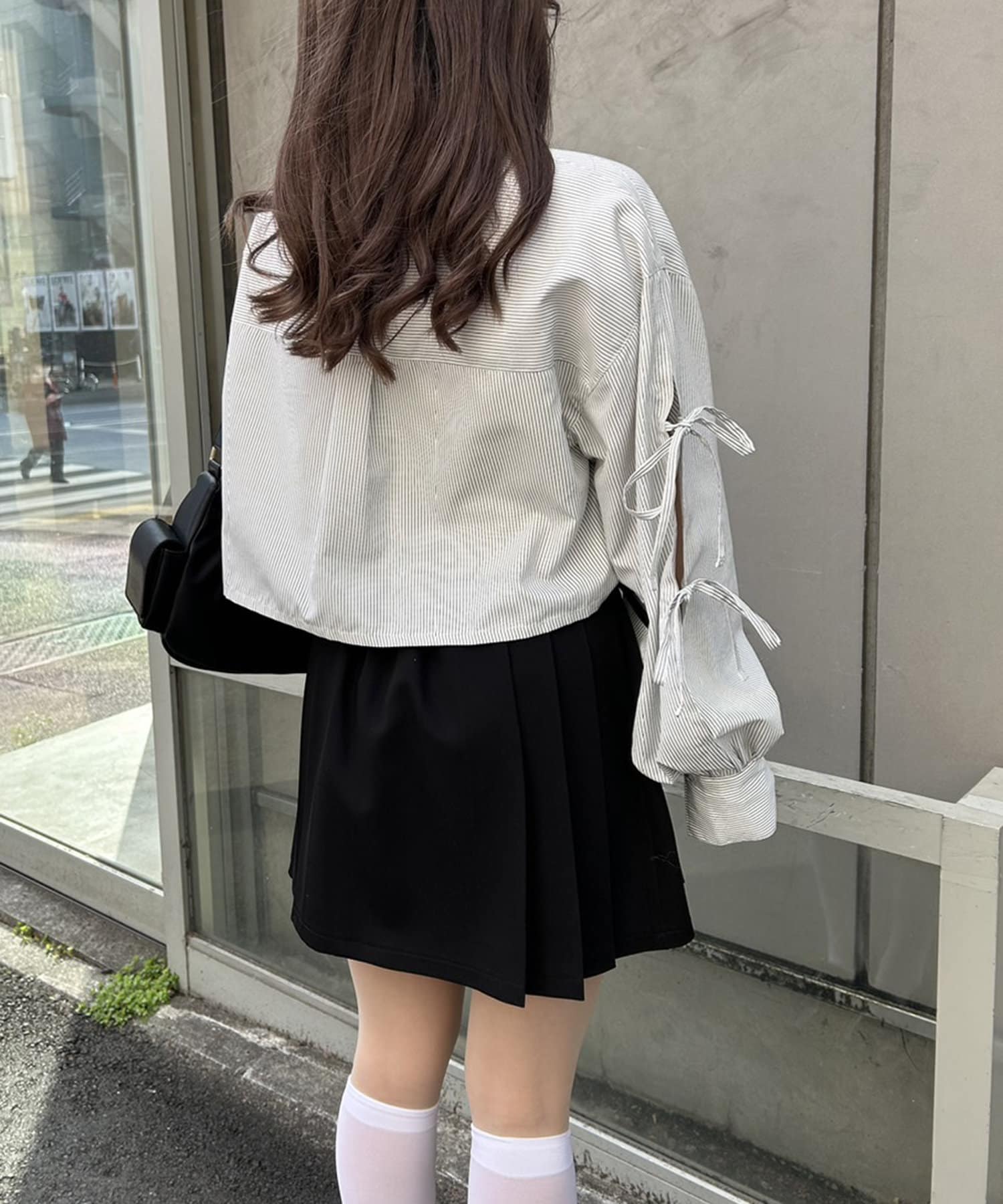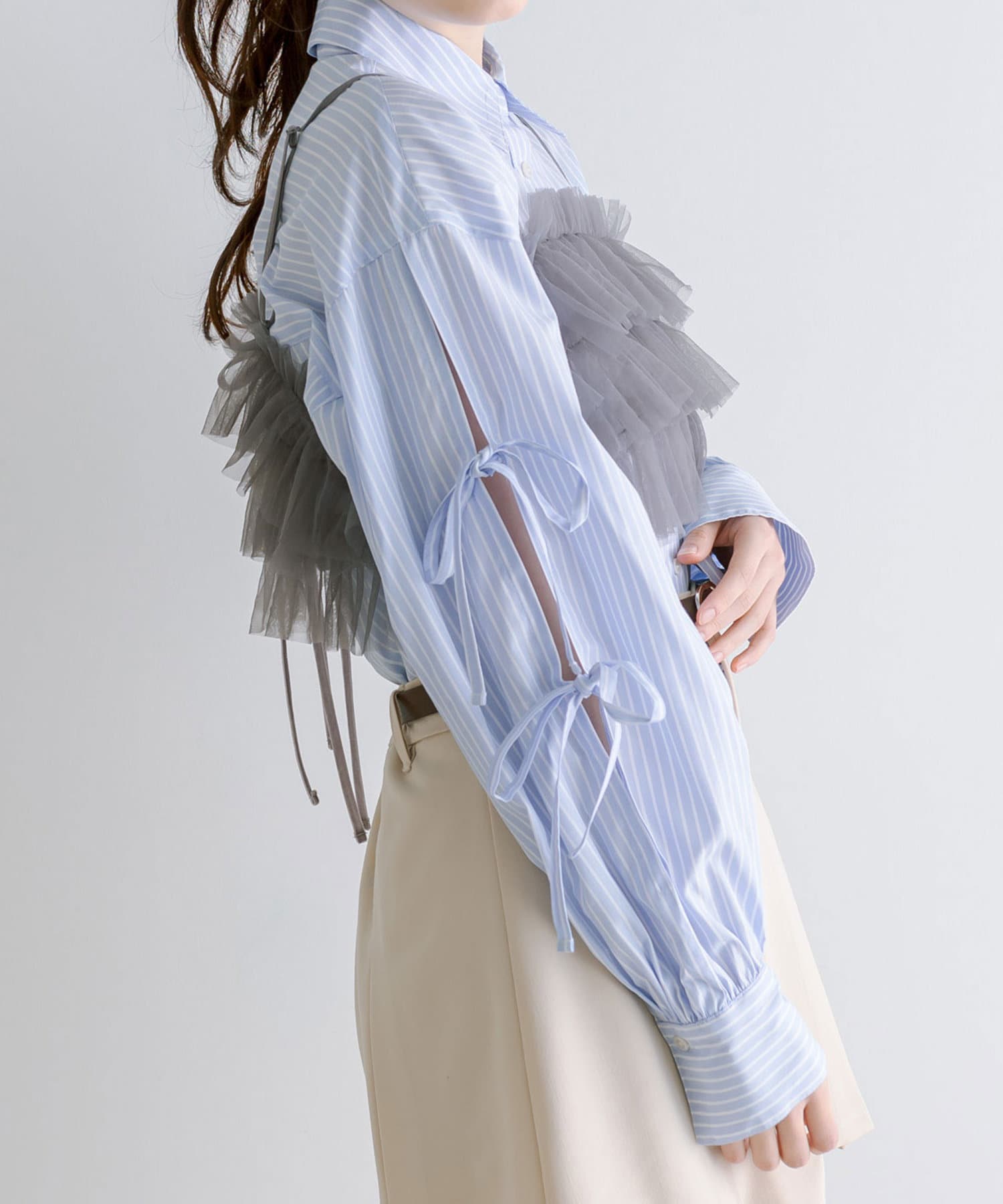 ・バレエコアの流行りで大人気のリボンディティールが可愛いシャツ。