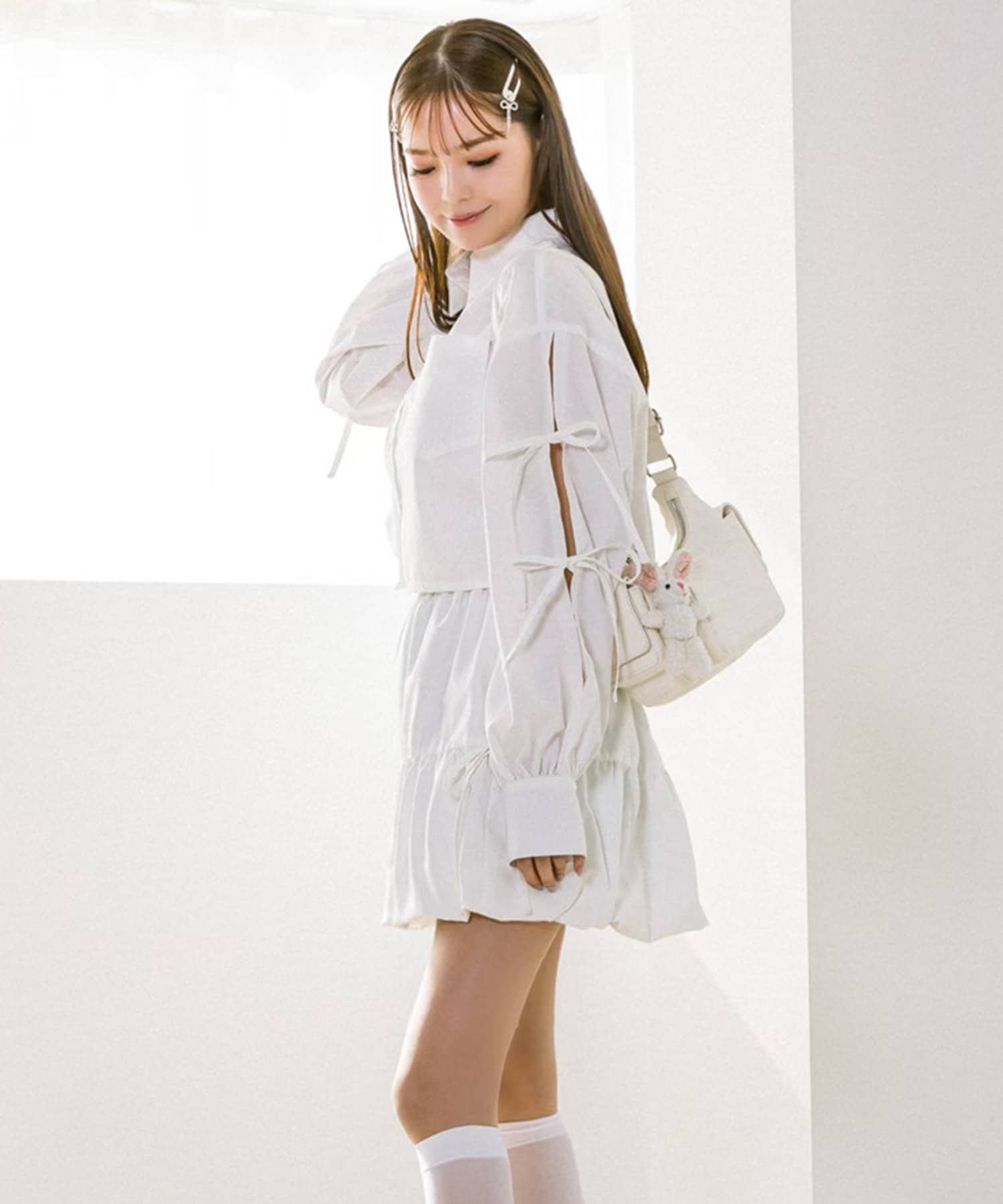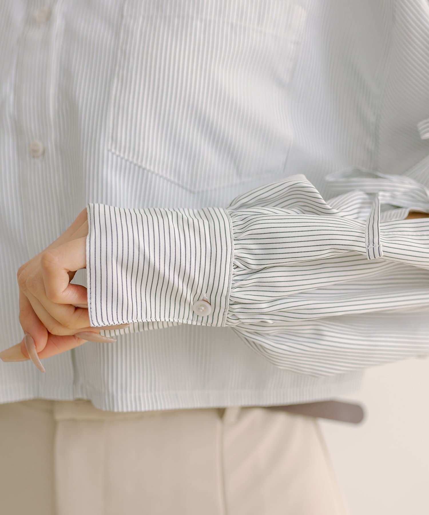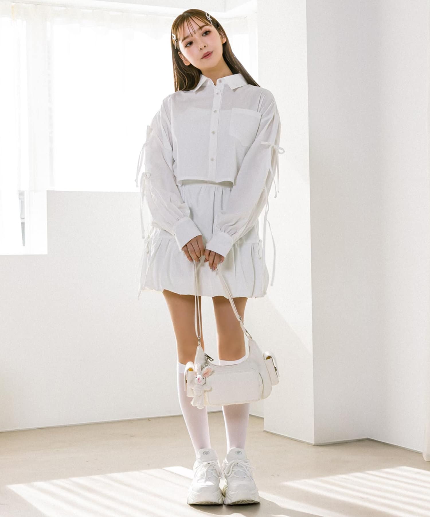 ・バレエコアの流行りで大人気のリボンディティールが可愛いシャツ。