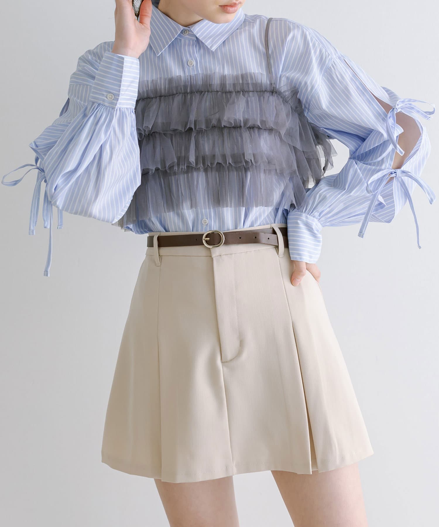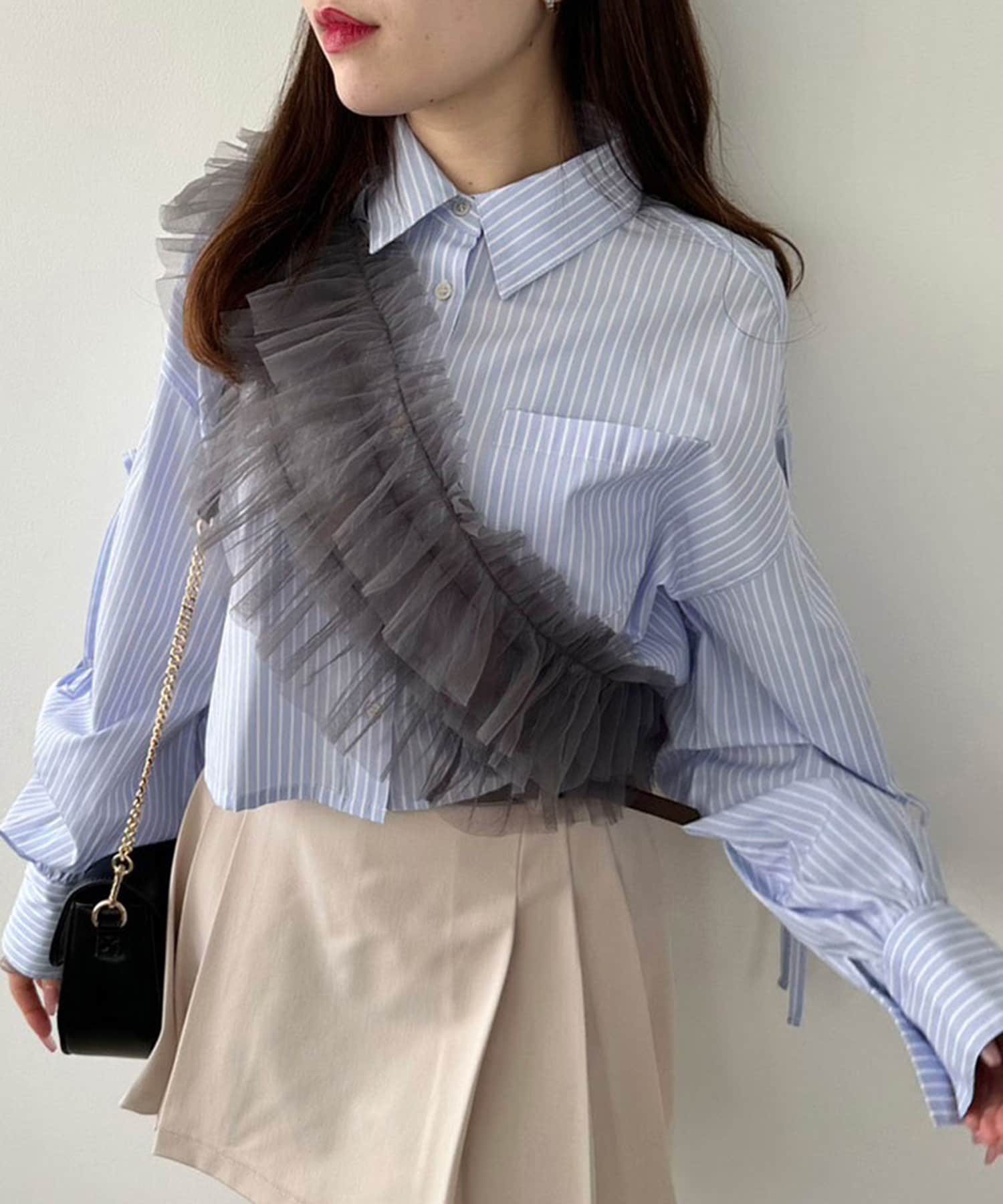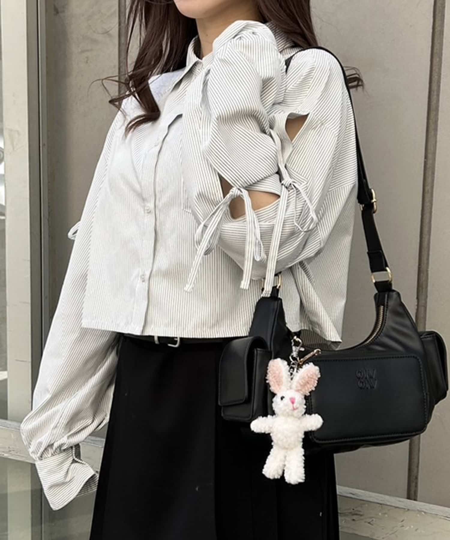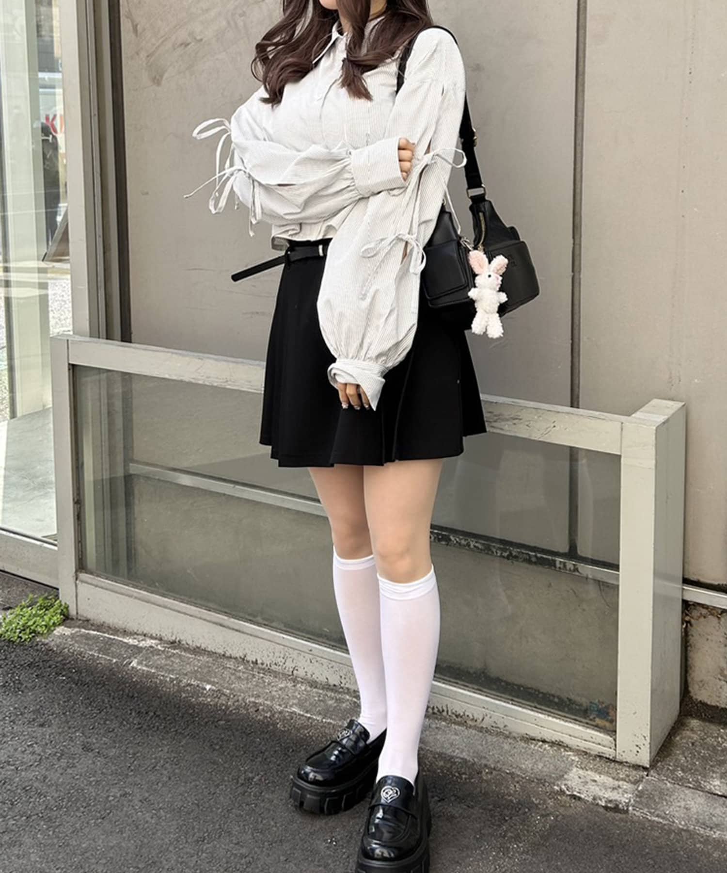 ・バレエコアの流行りで大人気のリボンディティールが可愛いシャツ。