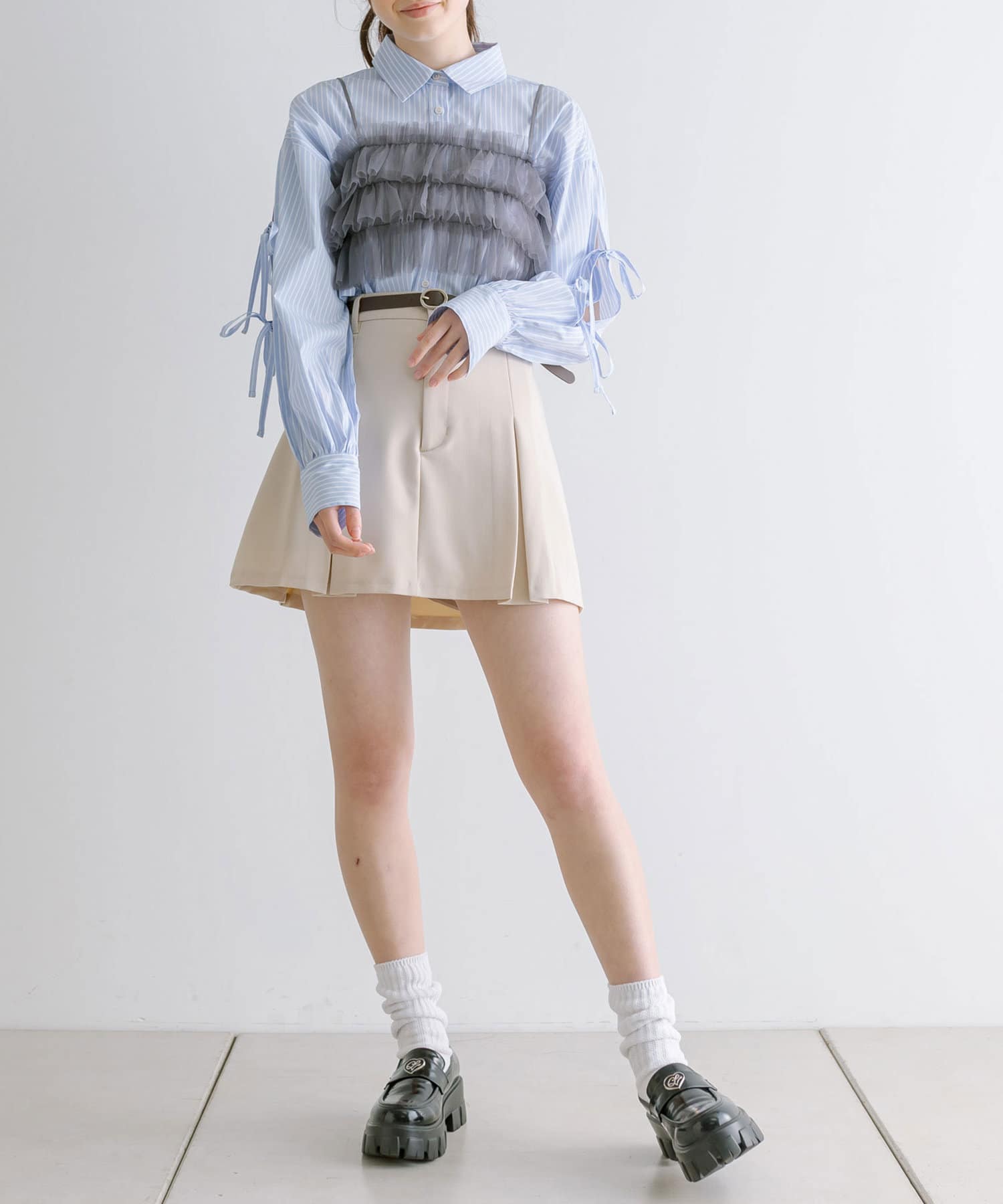 ・上からトレンドのチュールビスチェをレイヤードしても可愛いです。