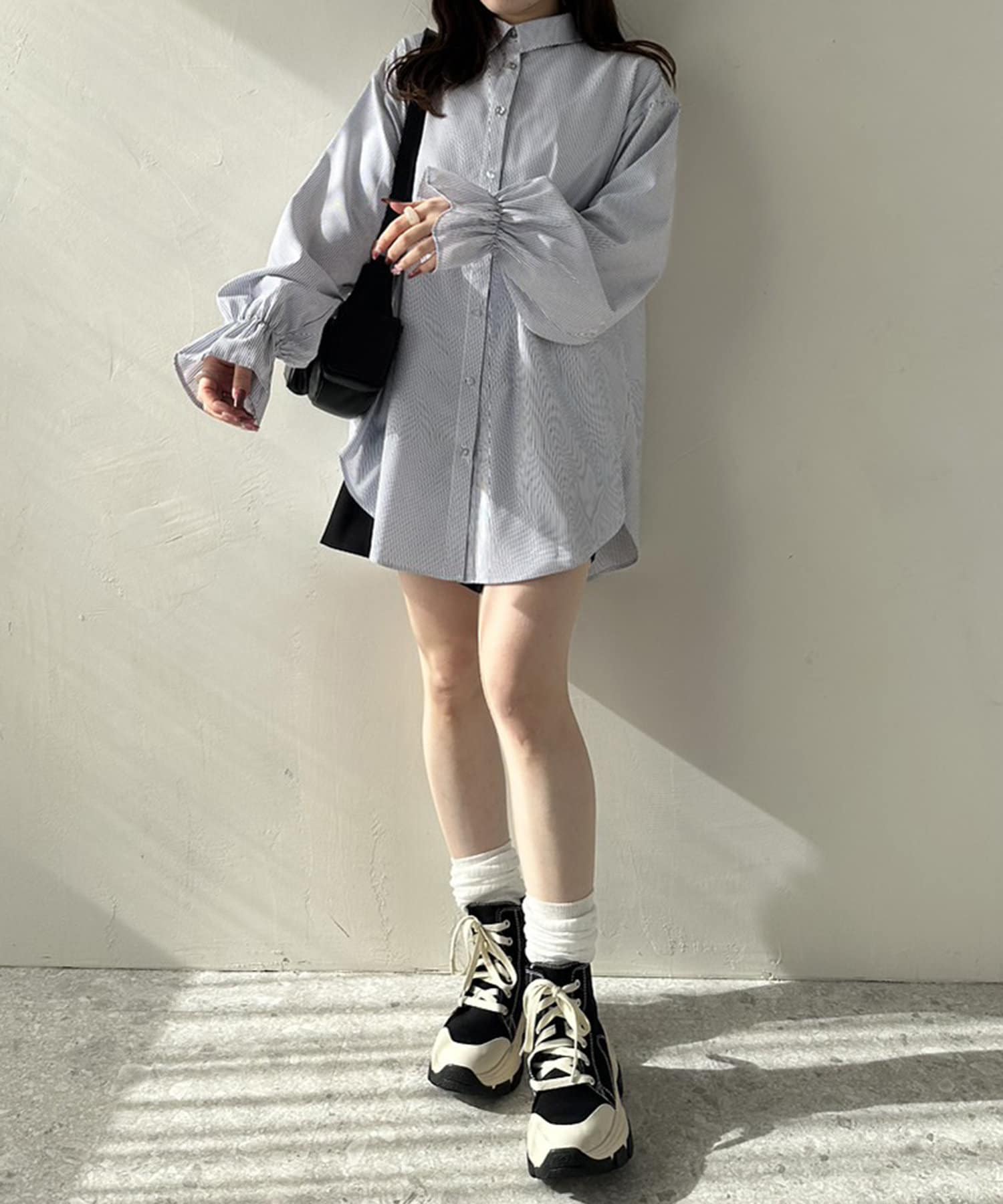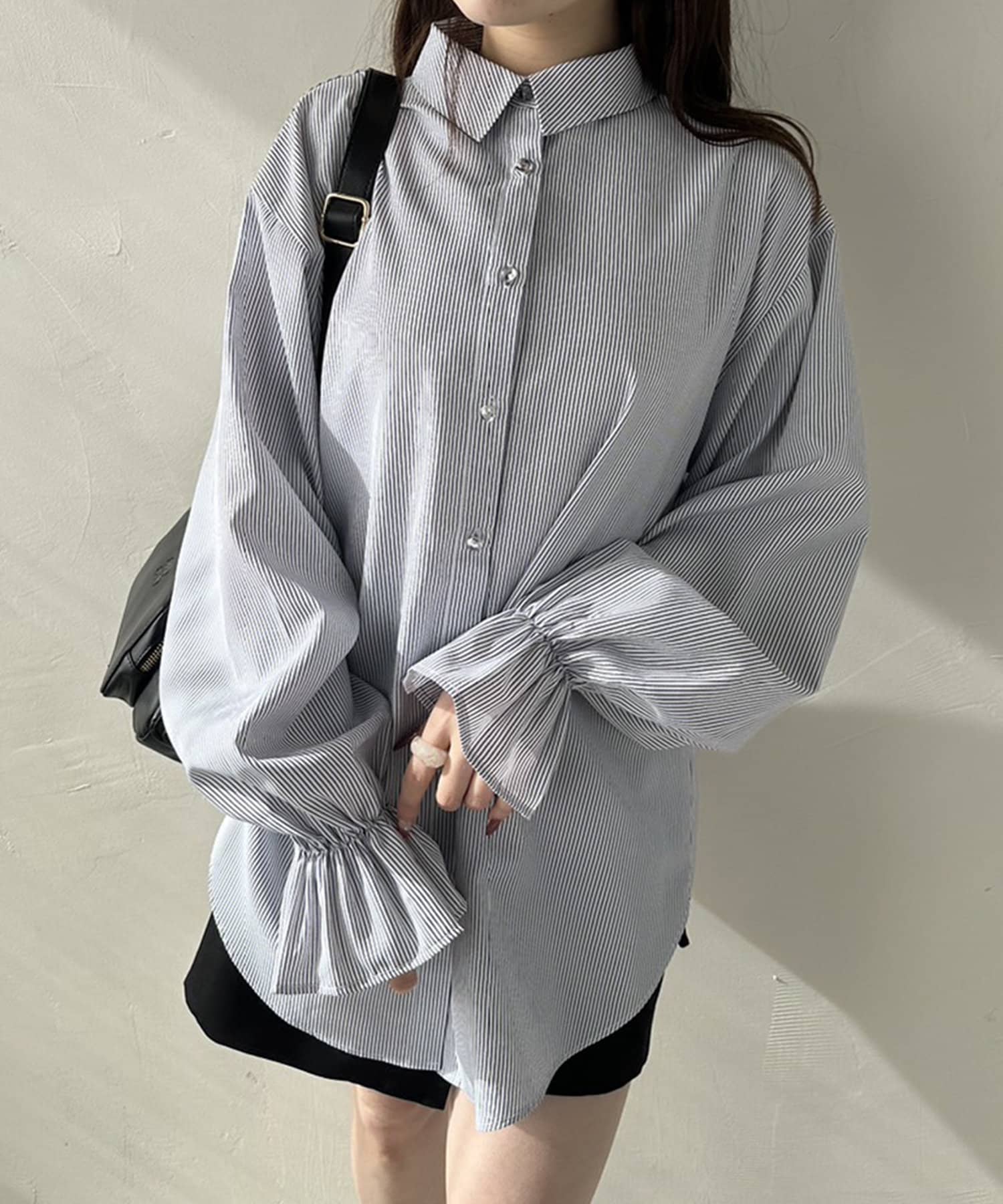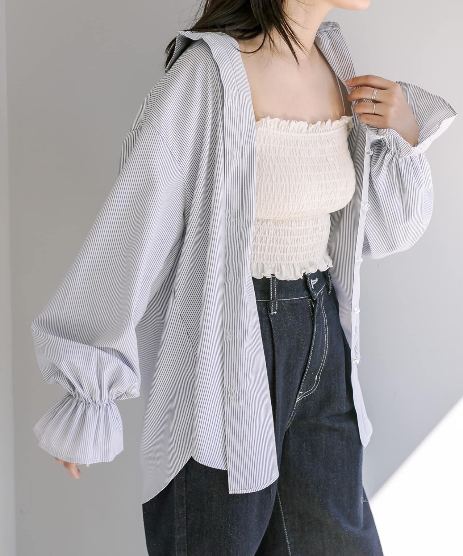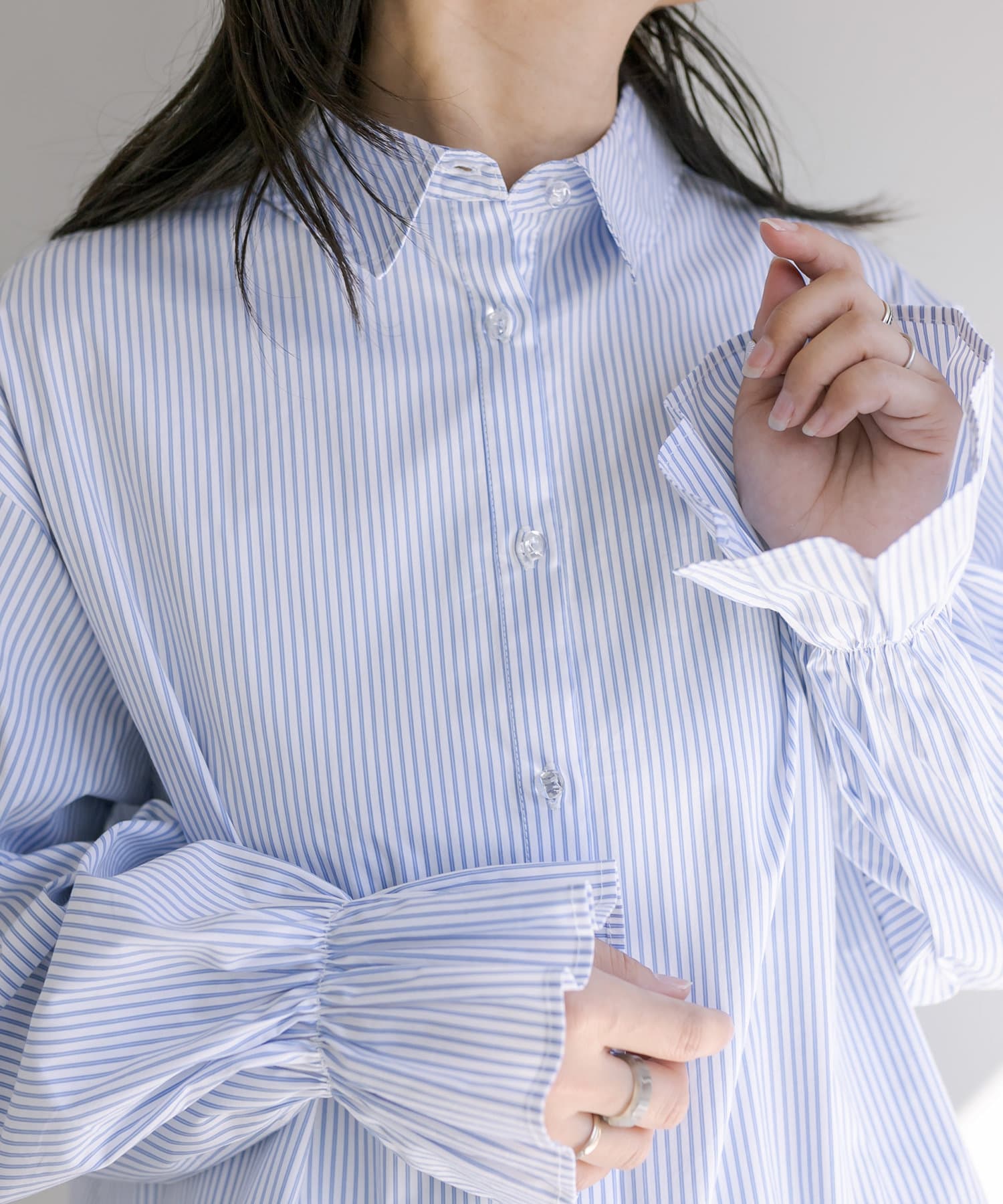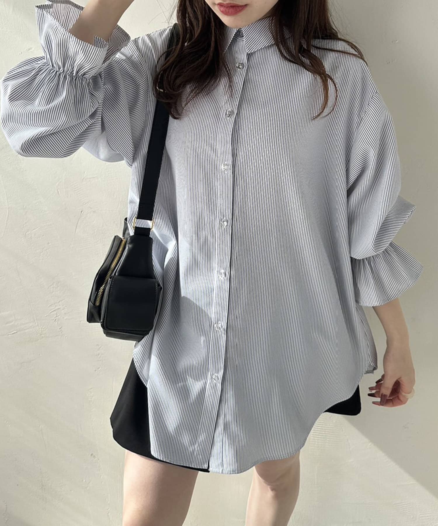 ・袖ボリュームでトレンド感たっぷりに仕上げた長袖シャツです。