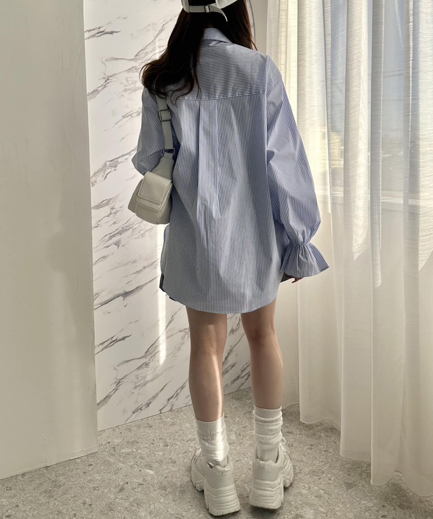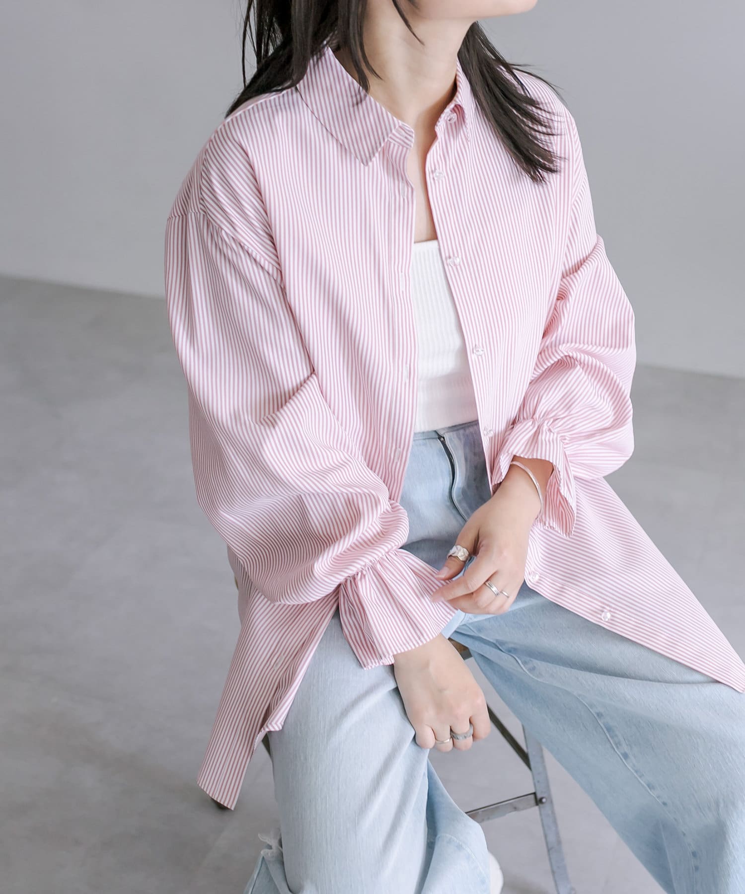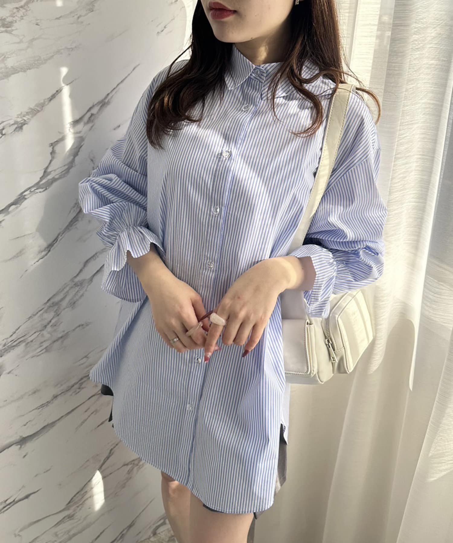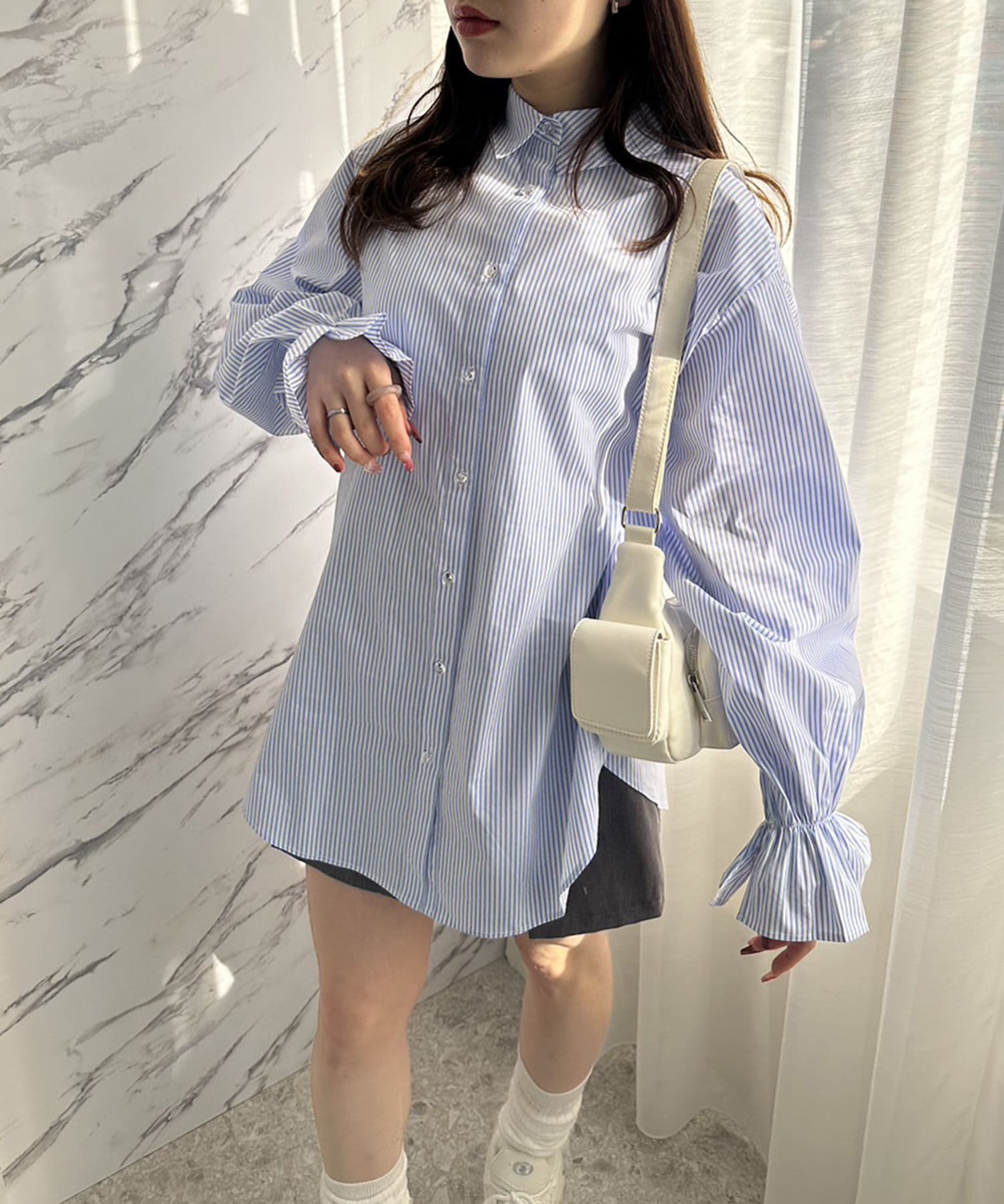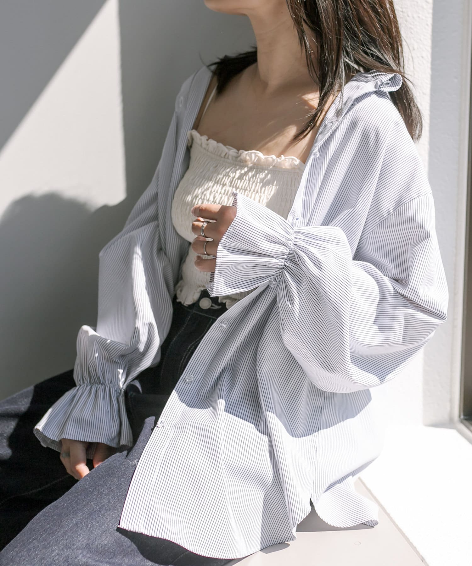 ・袖ボリュームでトレンド感たっぷりに仕上げた長袖シャツです。