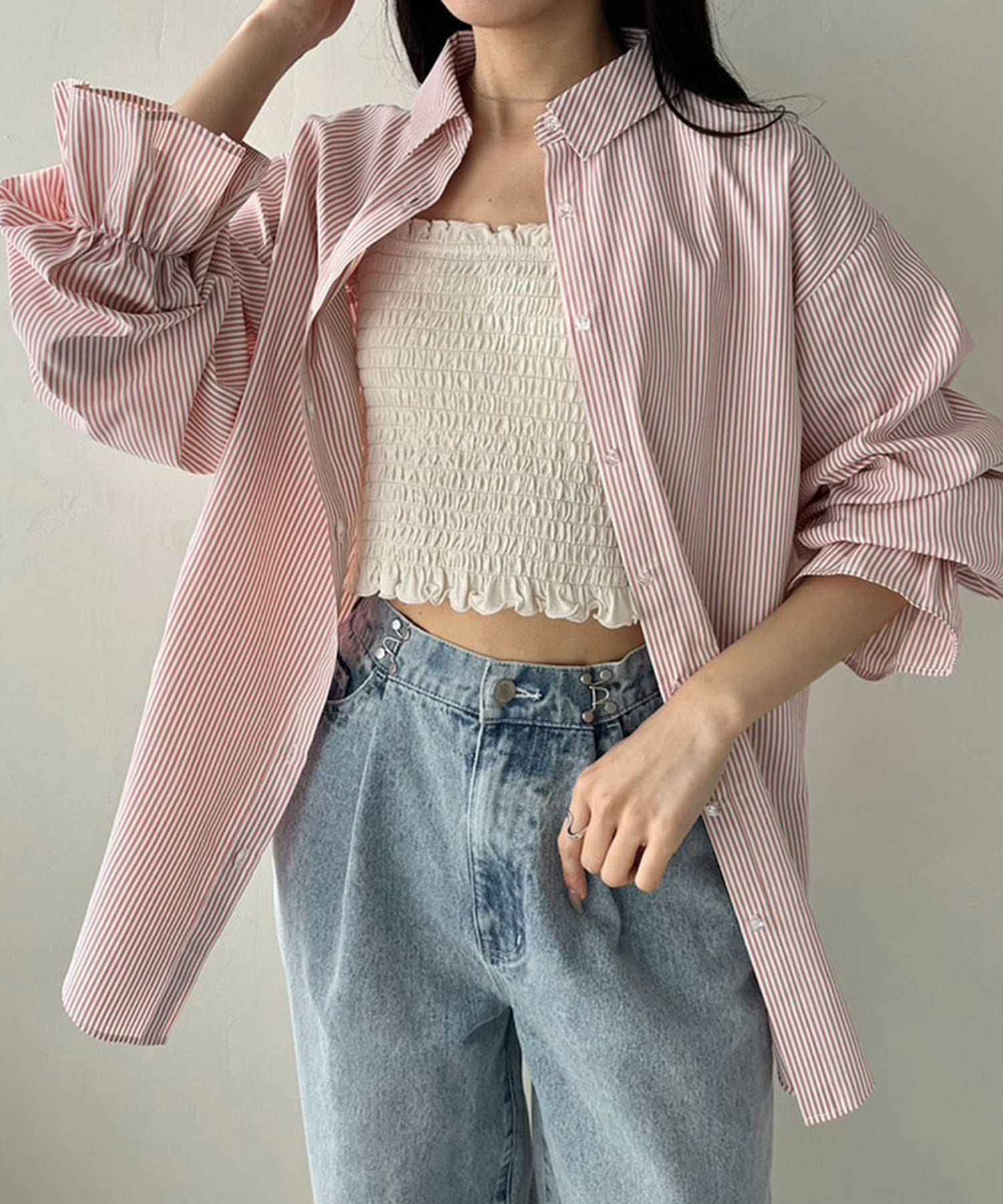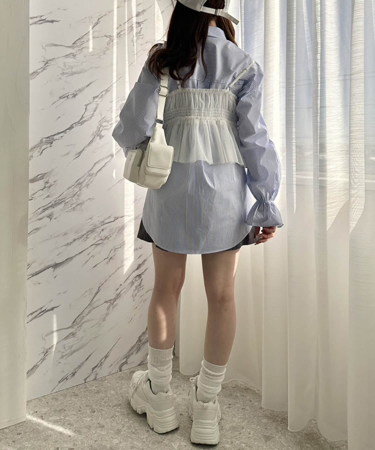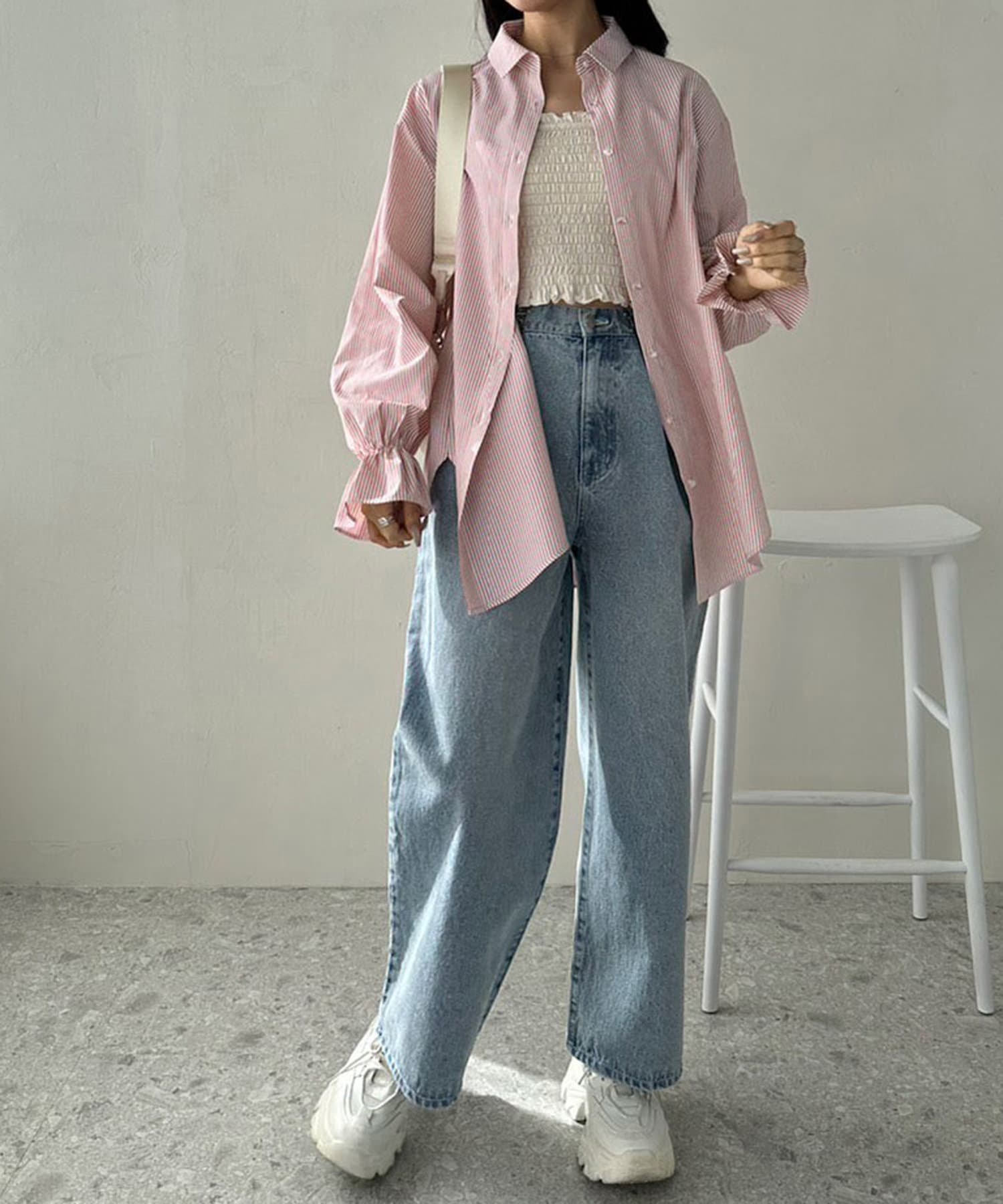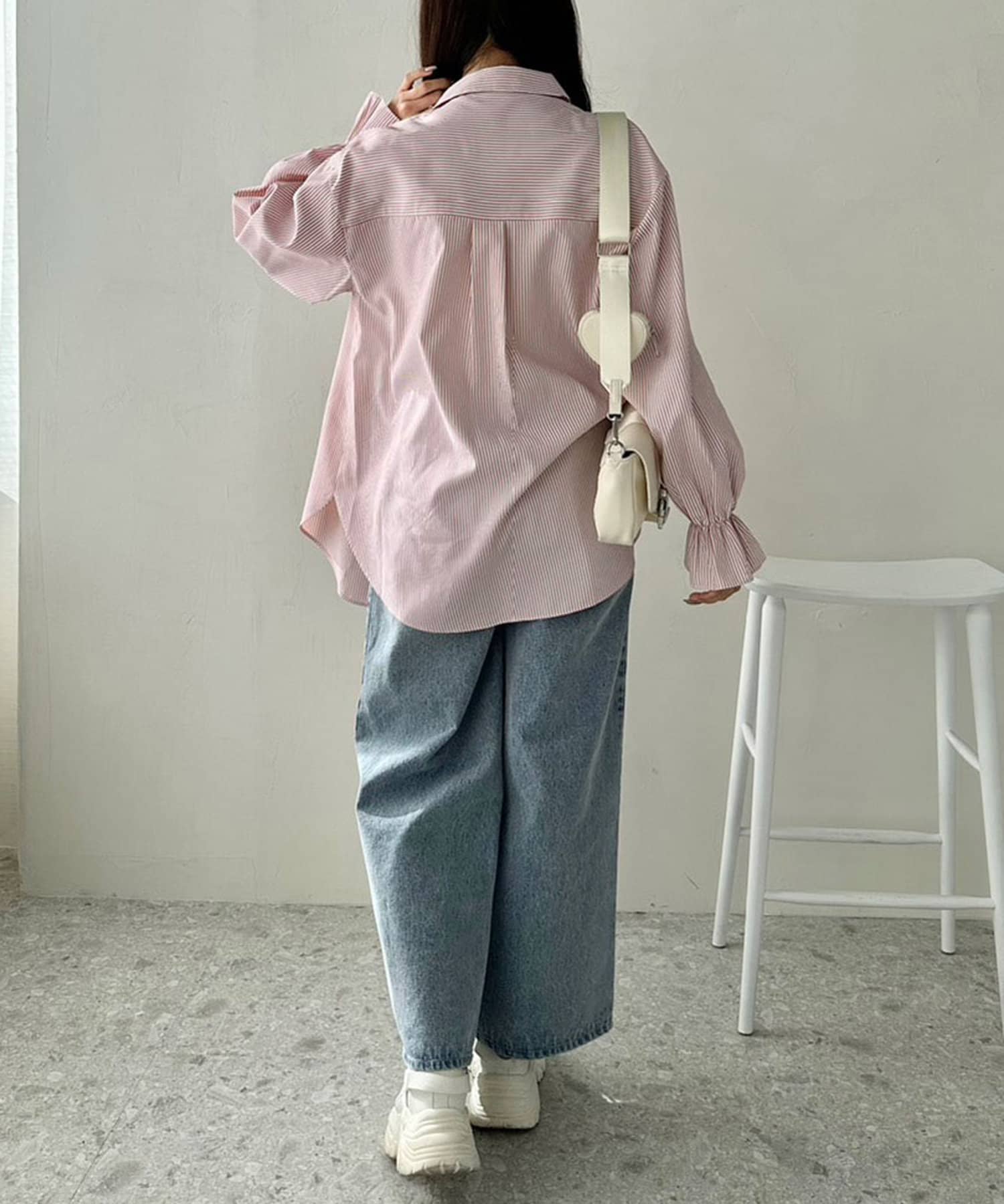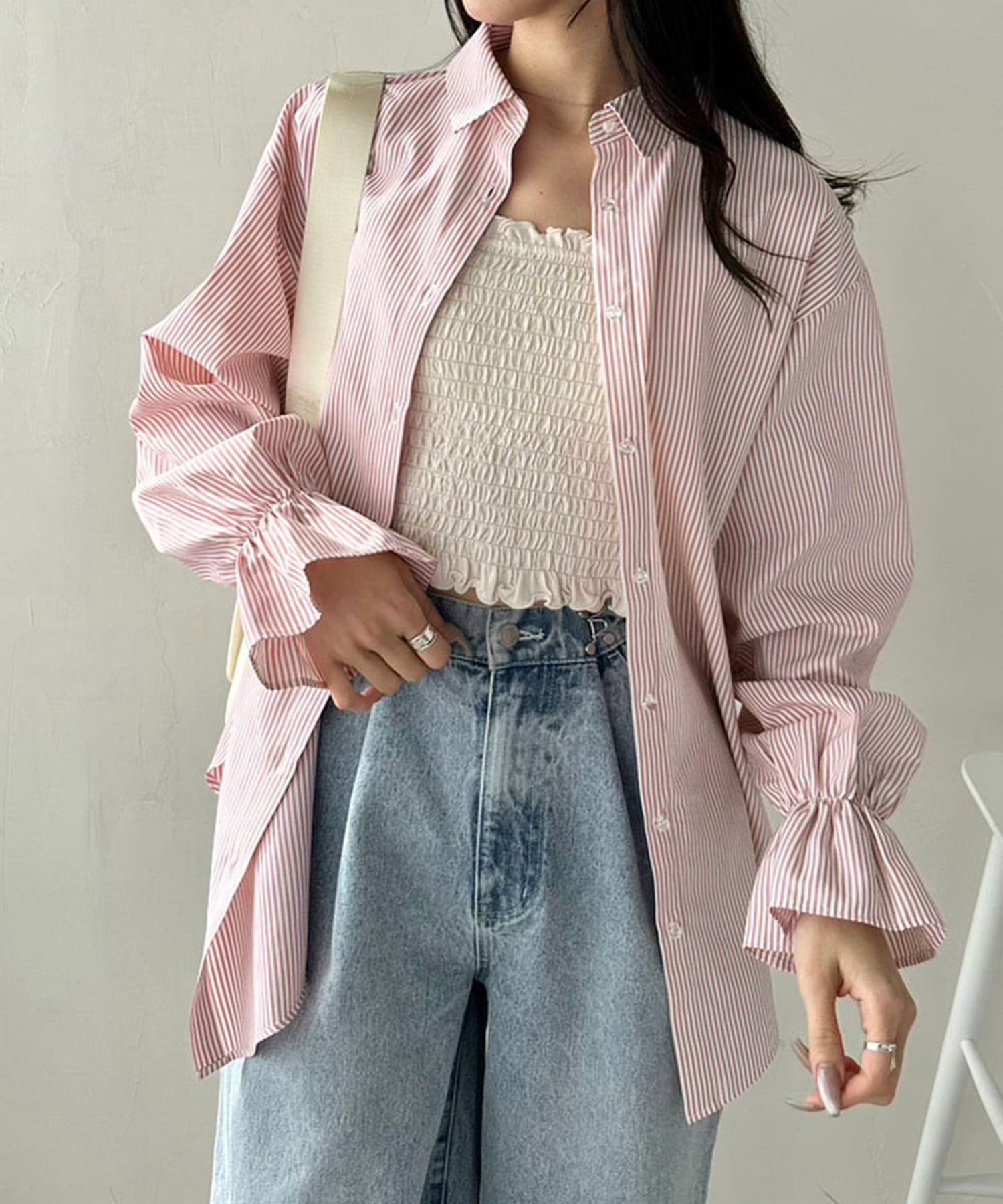 ・袖ボリュームでトレンド感たっぷりに仕上げた長袖シャツです。