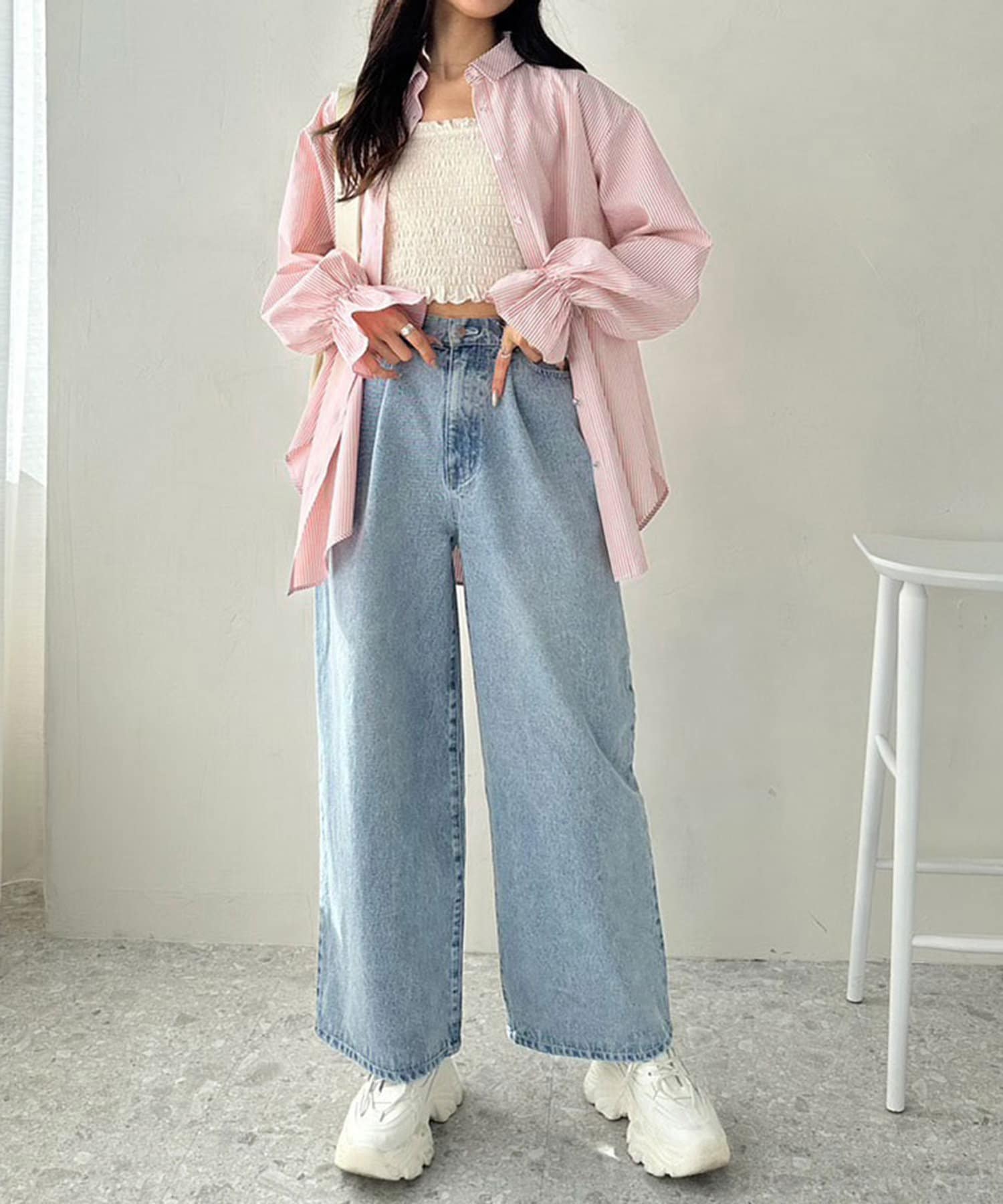 ・定番のデニムやカーゴパンツはもちろん、ミニプリーツスカートとも相性◎です。