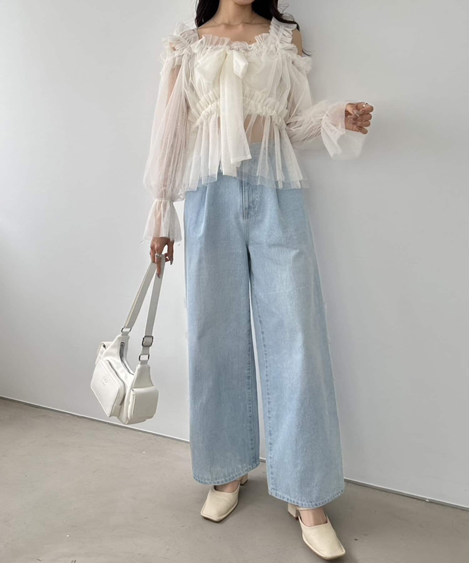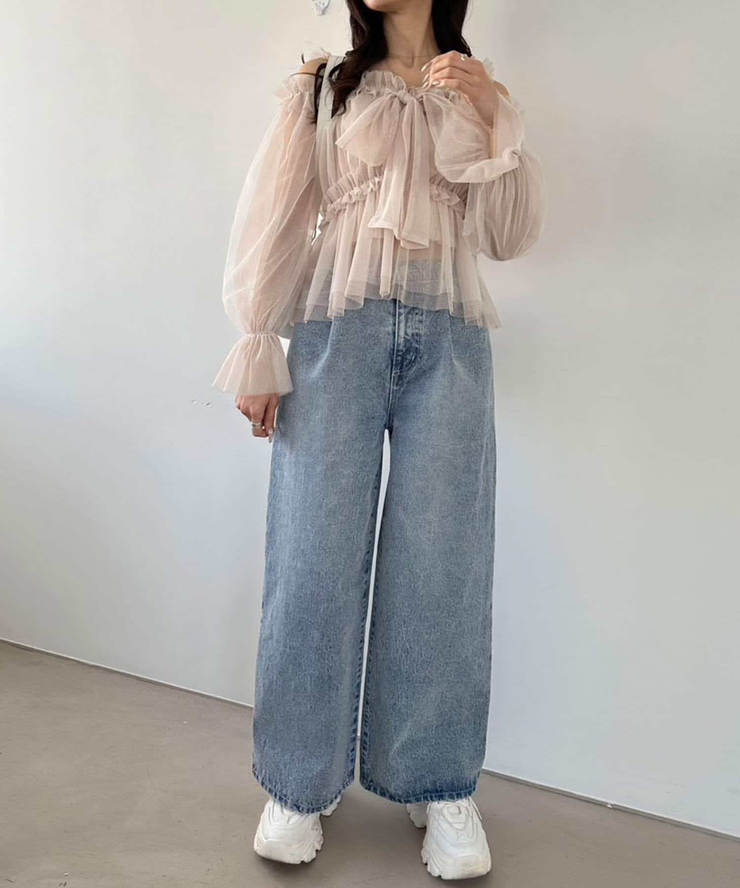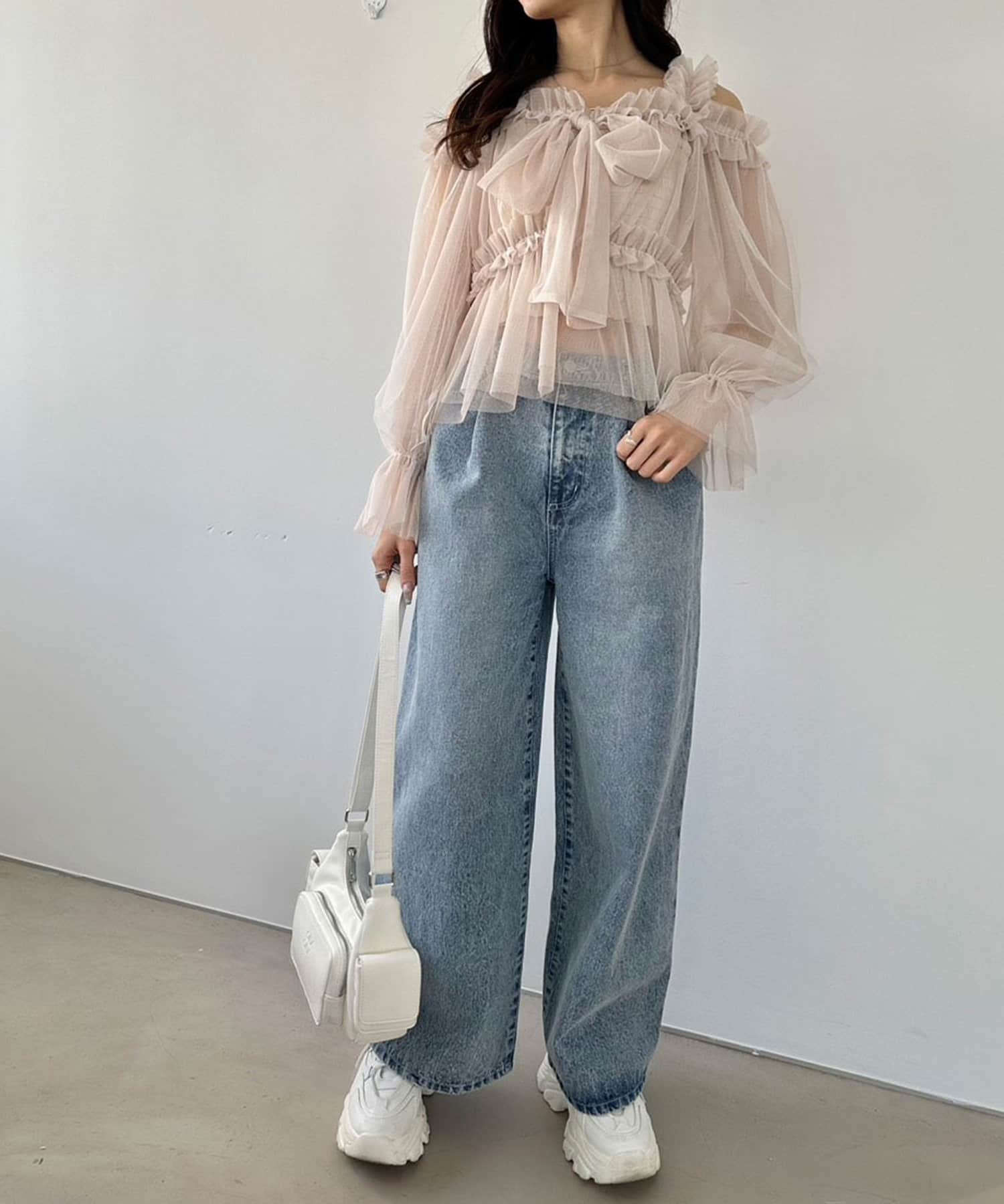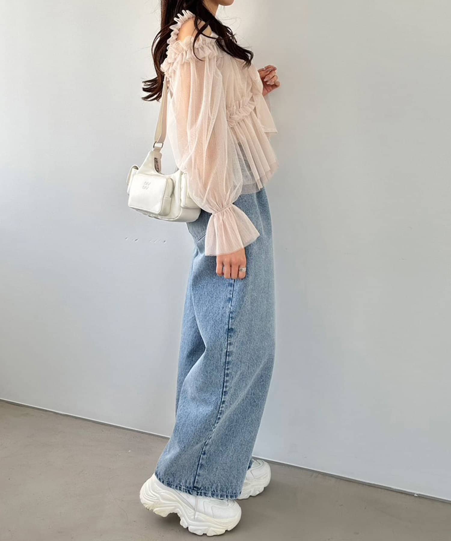 ・細身なものからワイドシルエットのデニムを、合わせるのも今年らしいです。