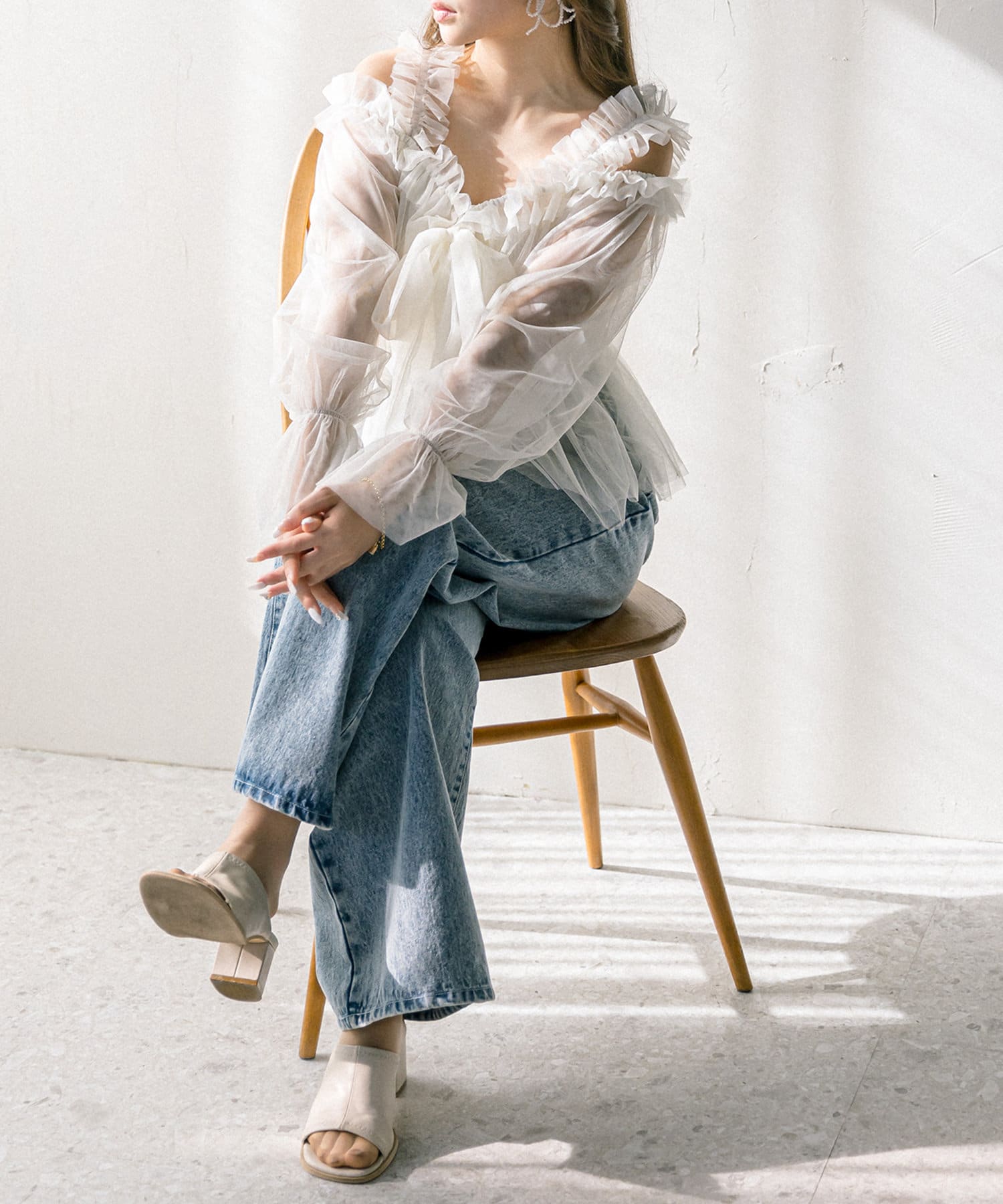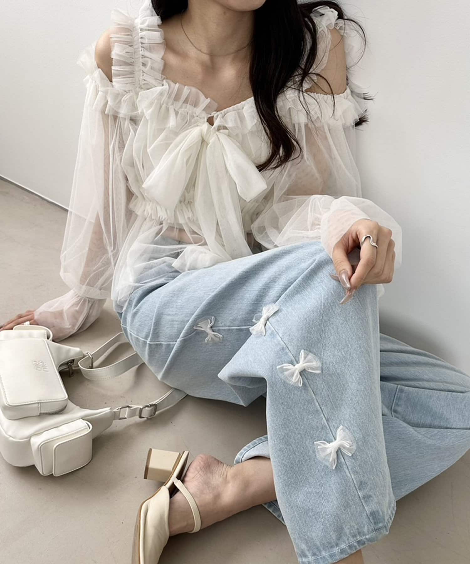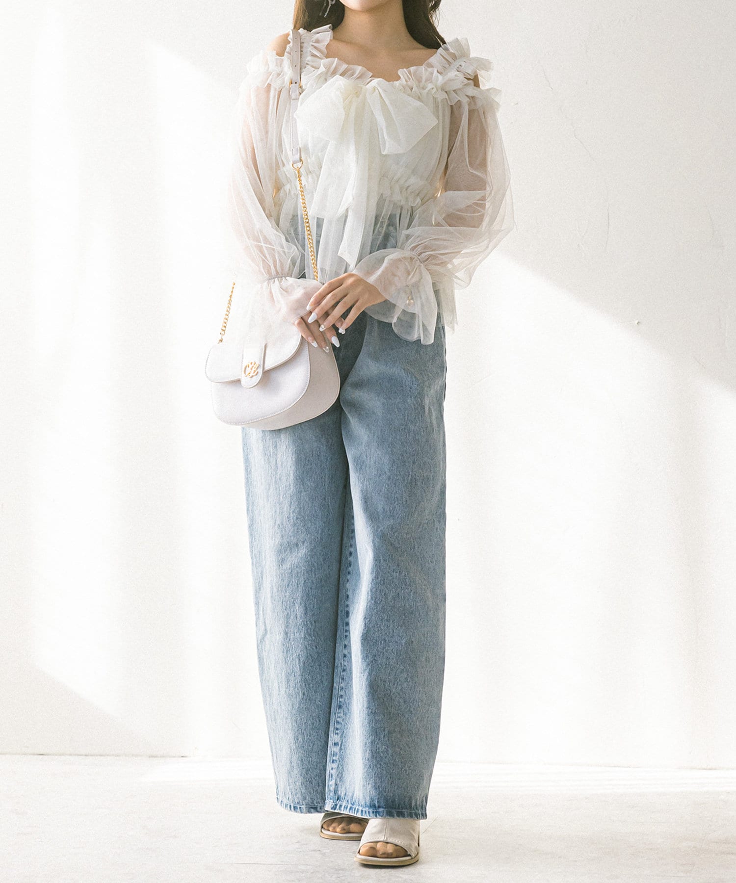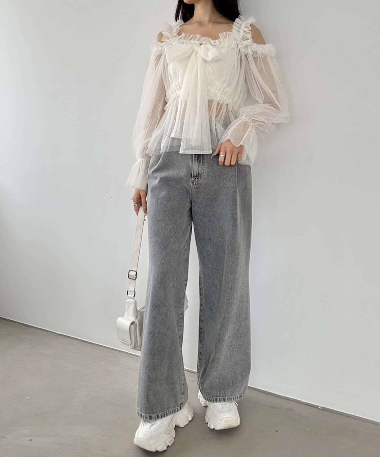 ・細身なものからワイドシルエットのデニムを、合わせるのも今年らしいです。