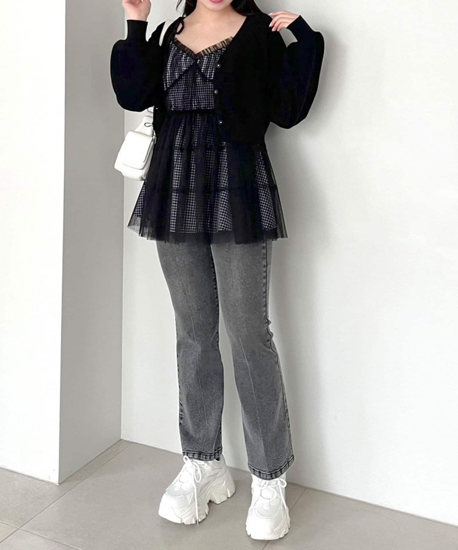 ・デニムパンツと合わせて大人可愛くスタイル盛れを狙うこともできるアイテムです。