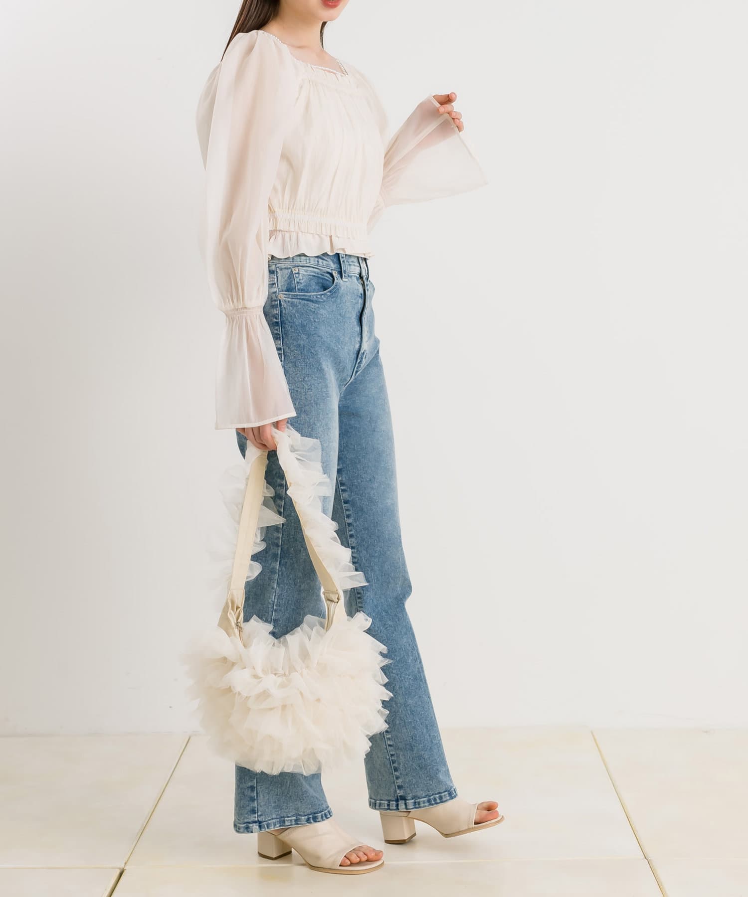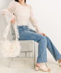 ・ガーリー好きな方は、ミニスカートや細めのデニムパンツで合わせて。