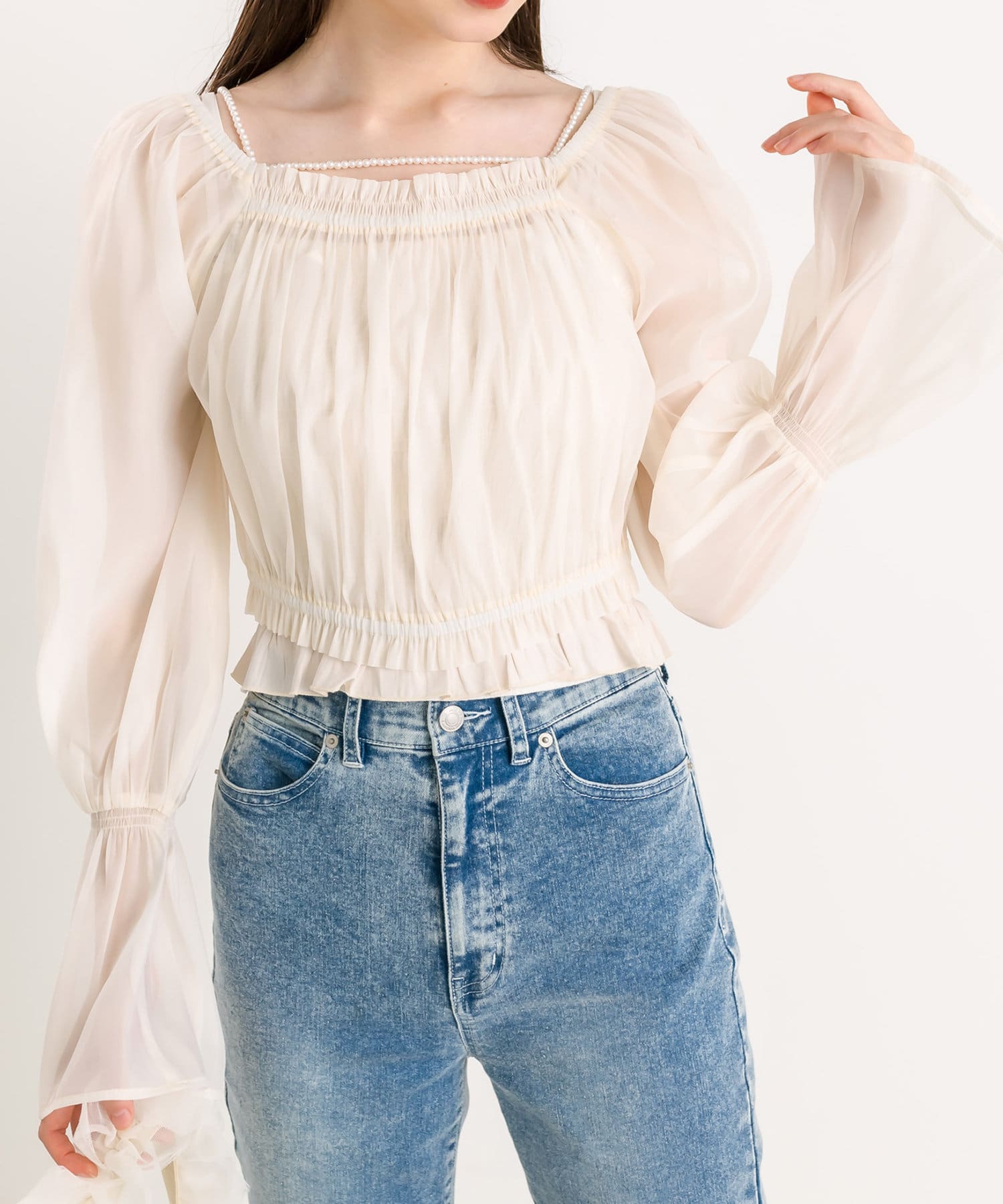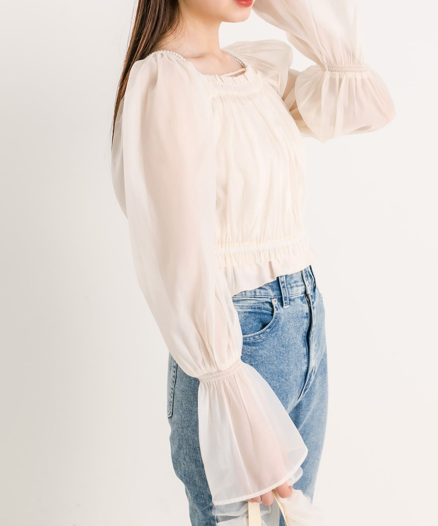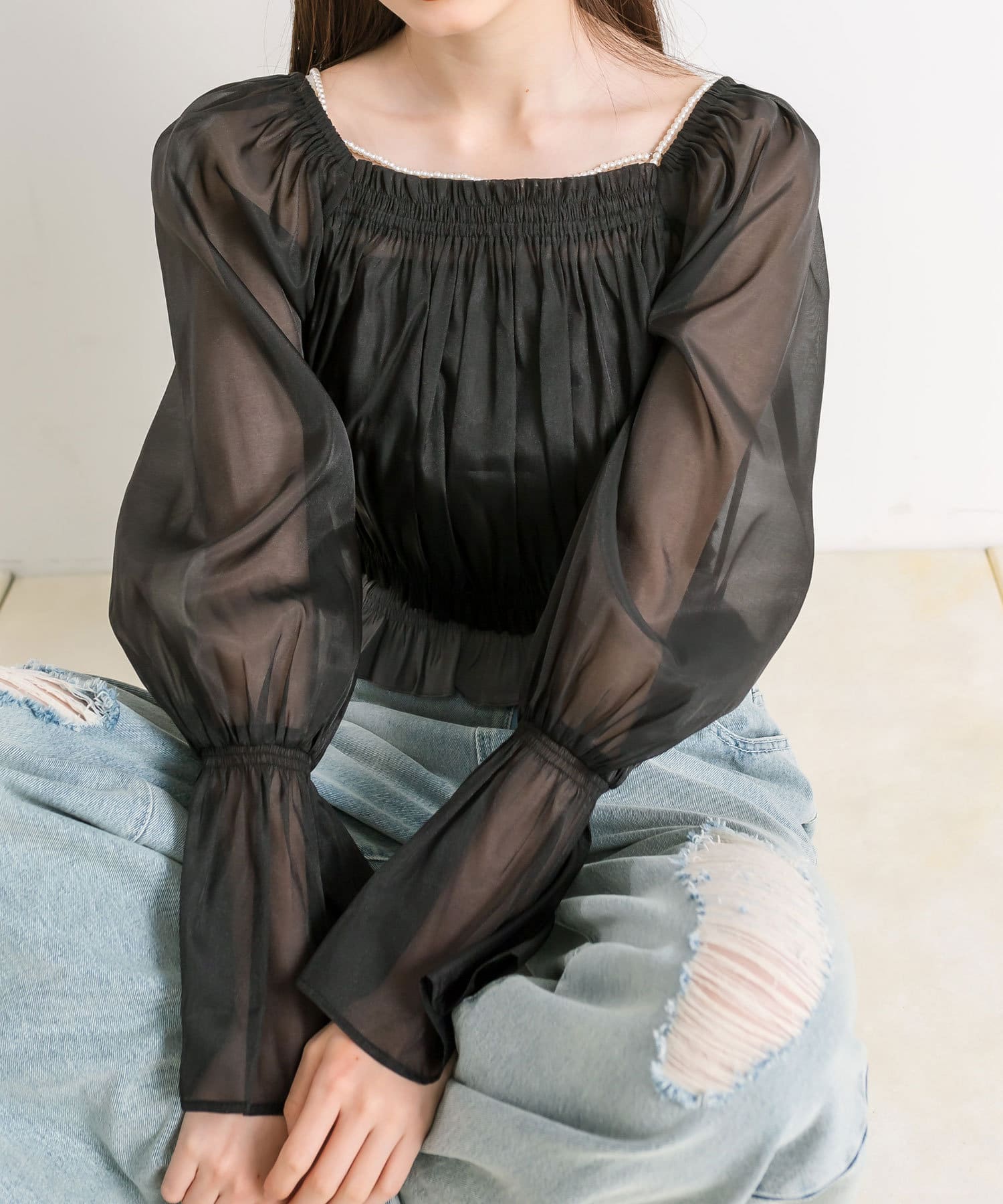 ・シアー素材と肌見せデザインで女性らしく着こなせます。