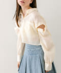 ・肩の上部のボタンを外せば、トレンドの肌見せスタイルに。