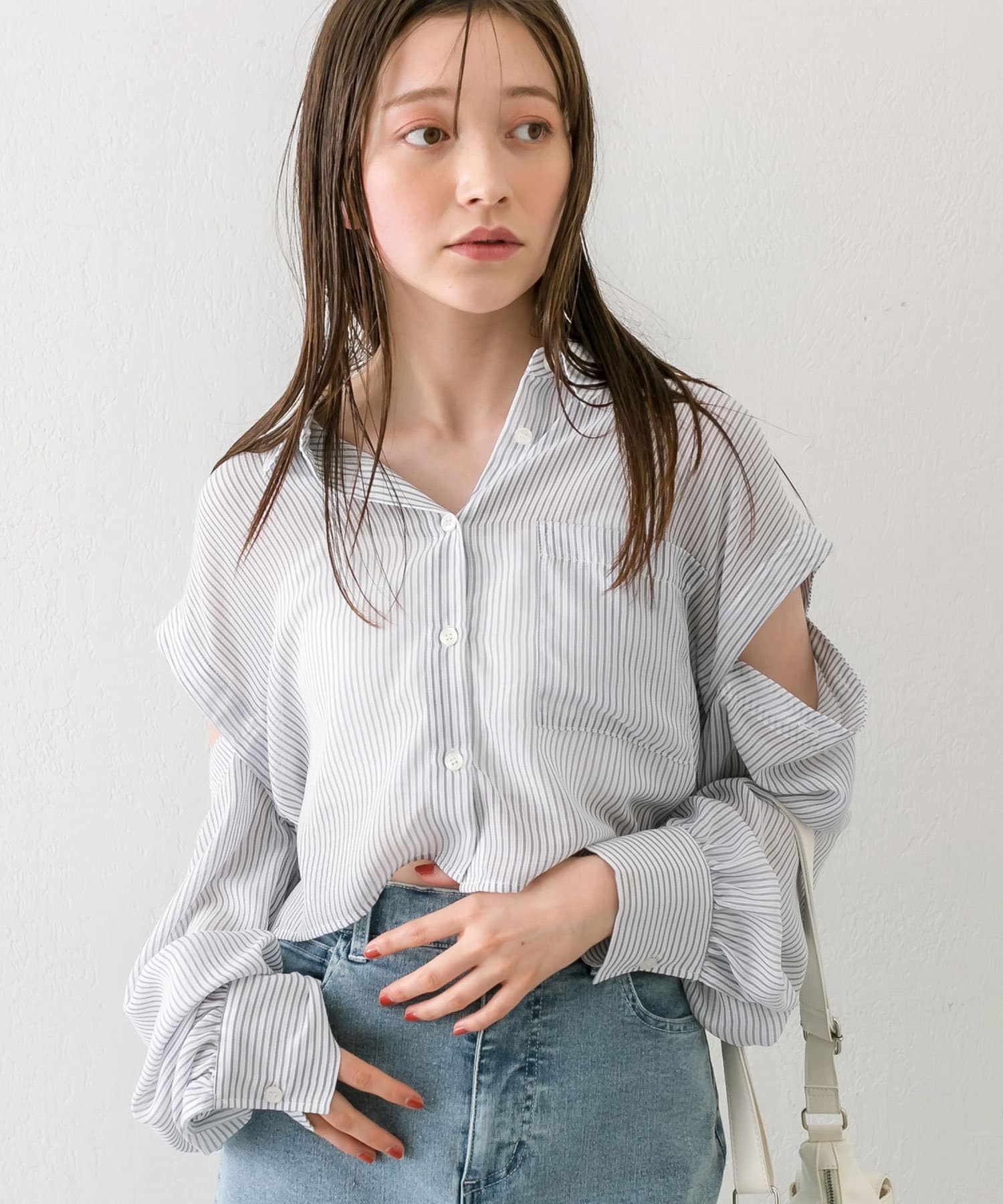 肩あきドロストシャツ