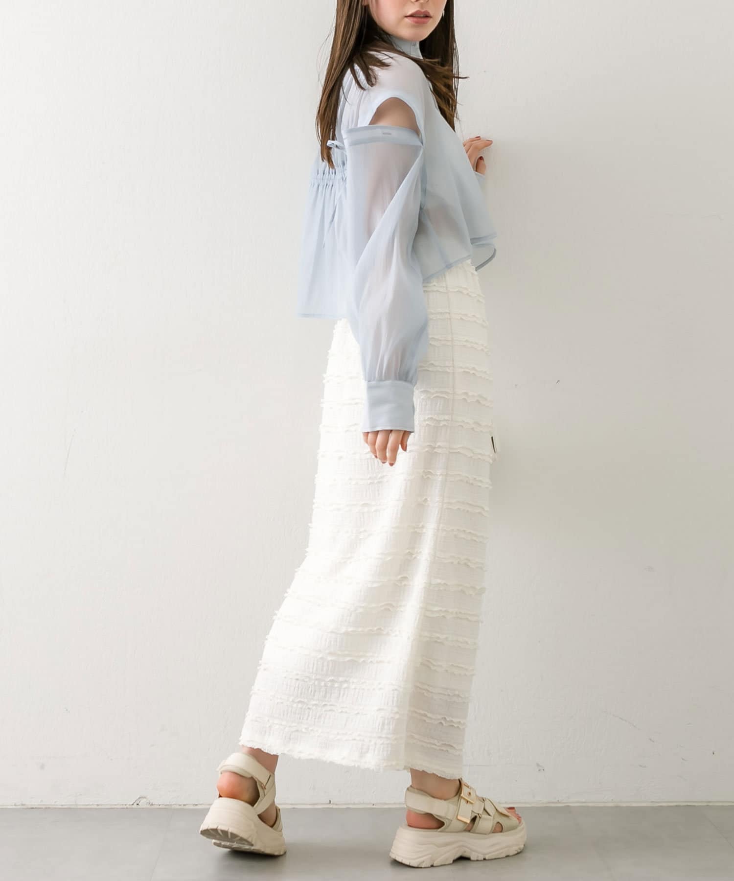 ・ロングスカートと大人っぽい印象で着用していただけます。