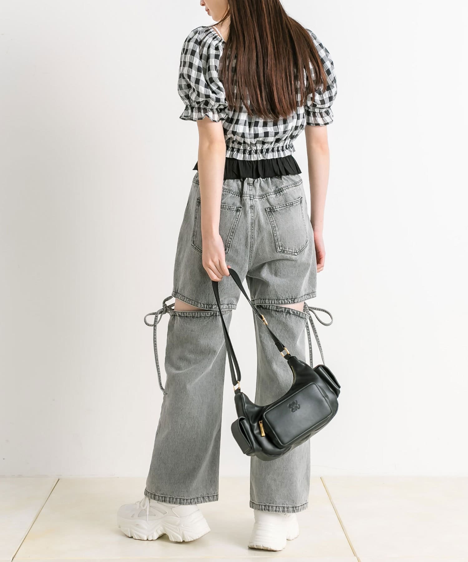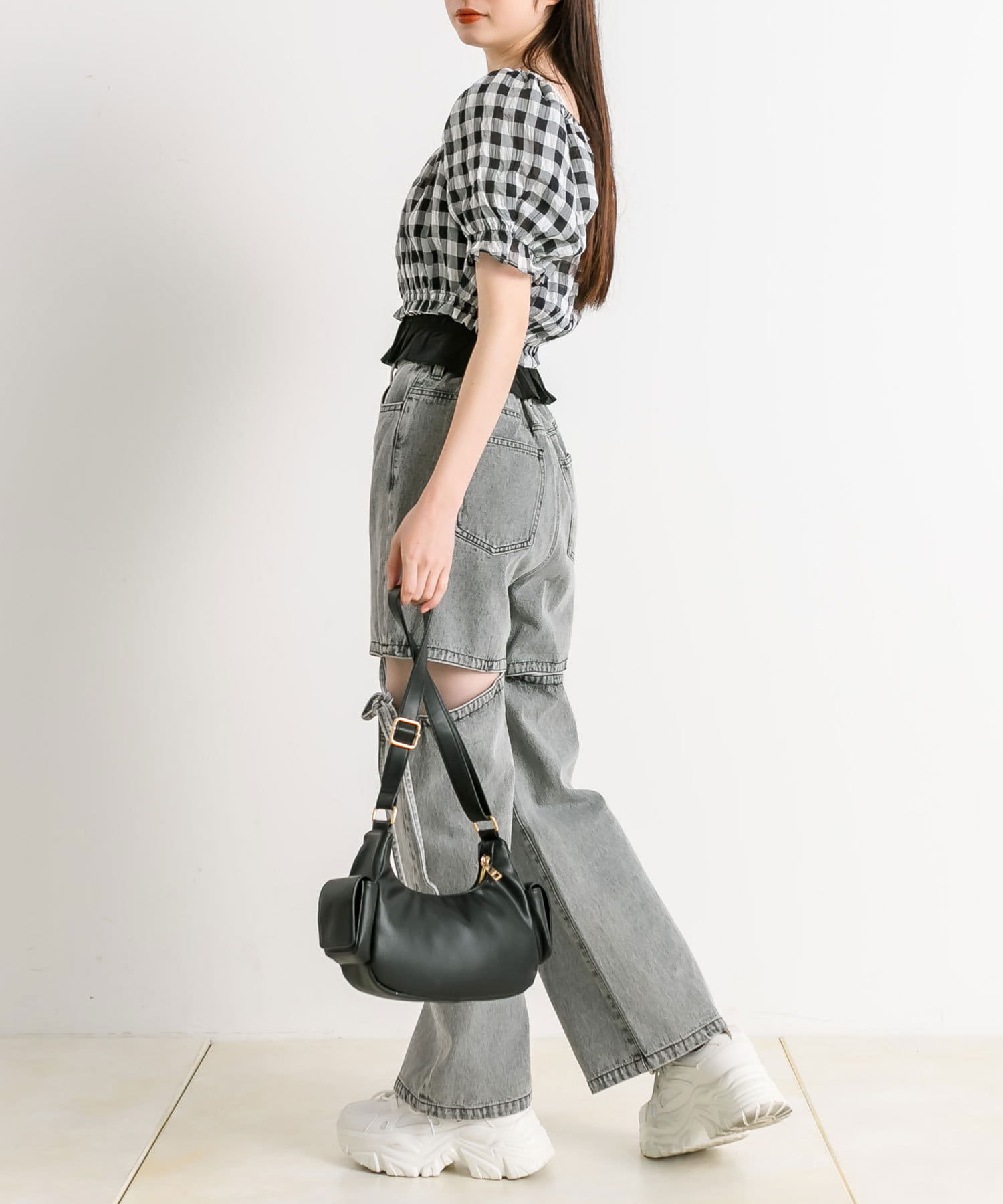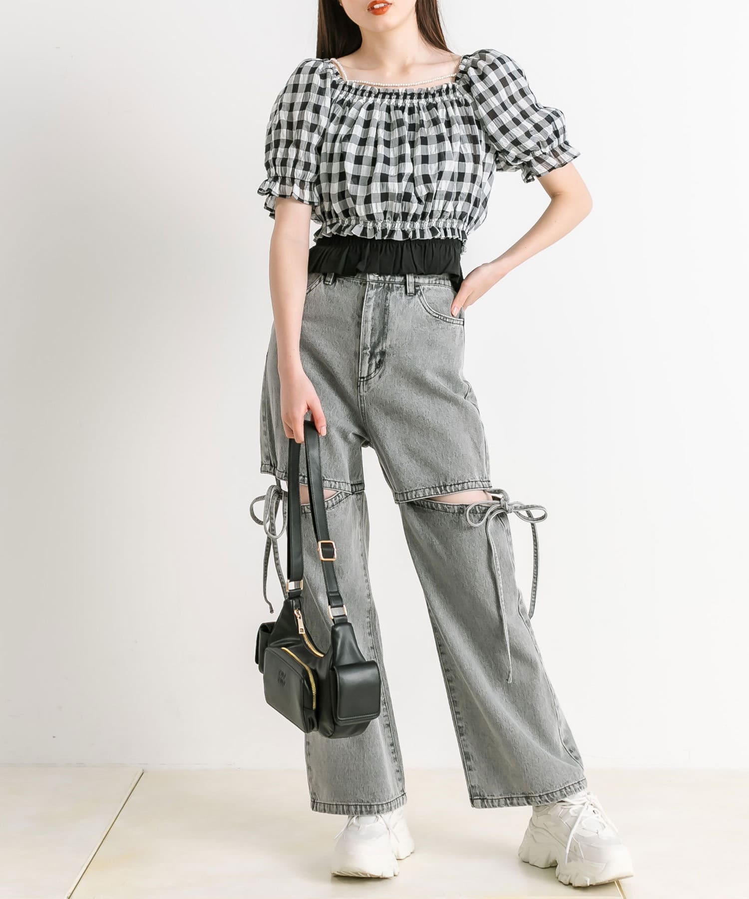 ・ガーリー好きな方は、ミニスカートや細めのデニムパンツで合わせて。