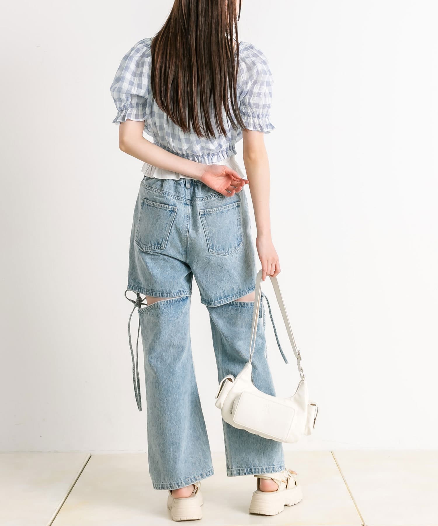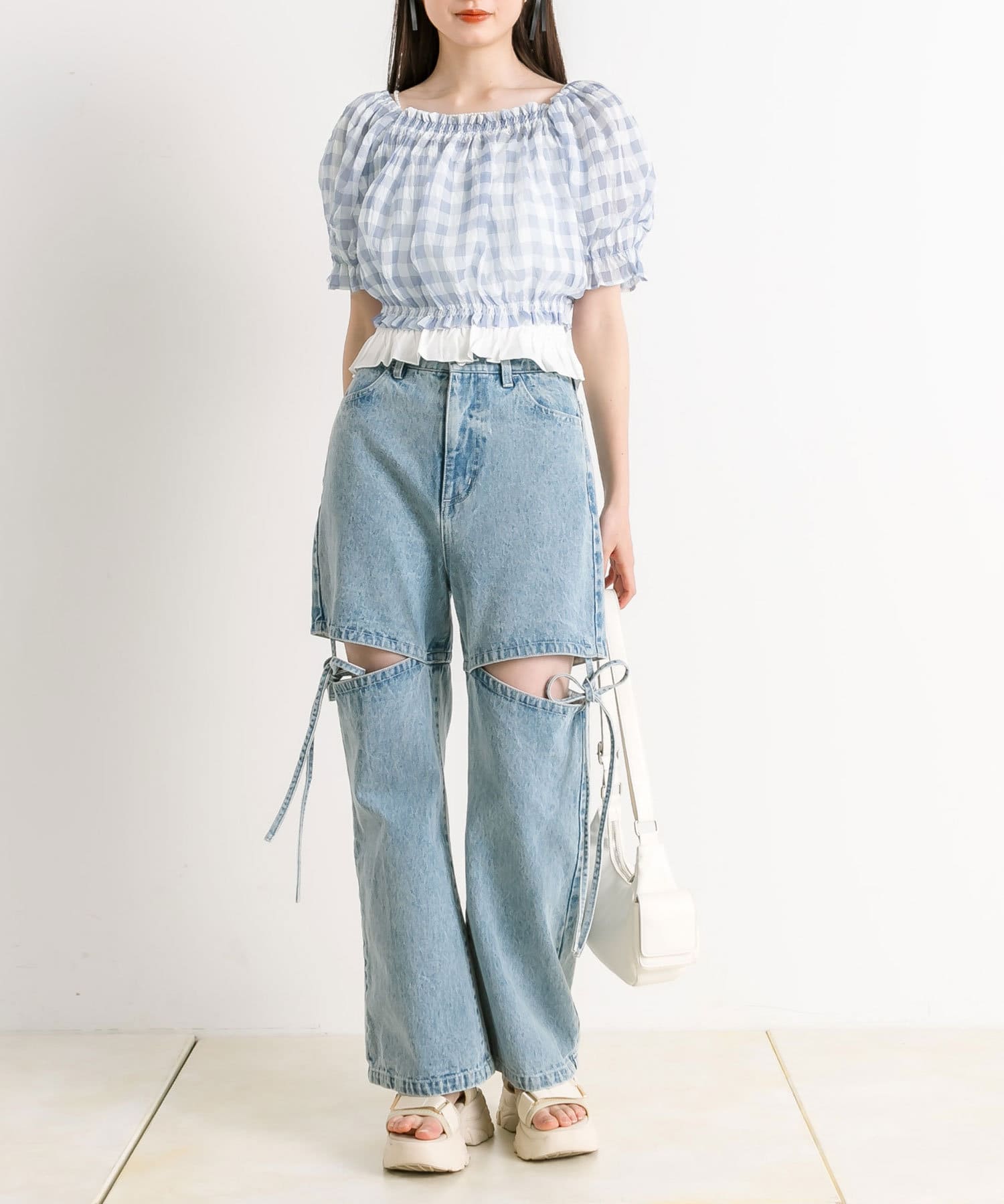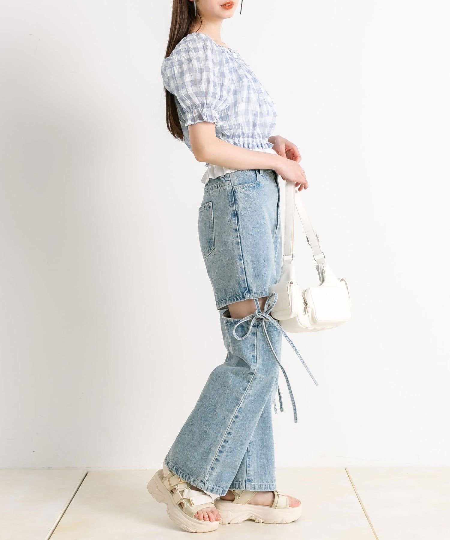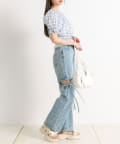 ・ガーリー好きな方は、ミニスカートや細めのデニムパンツで合わせて。