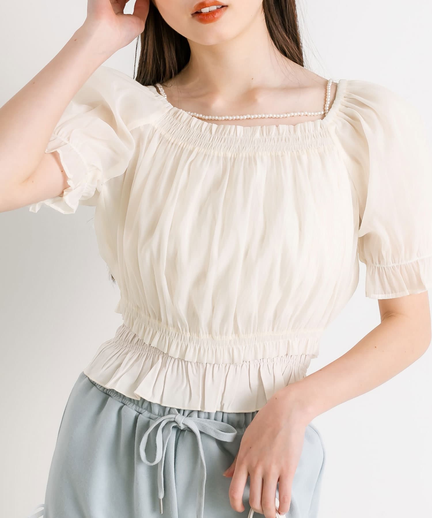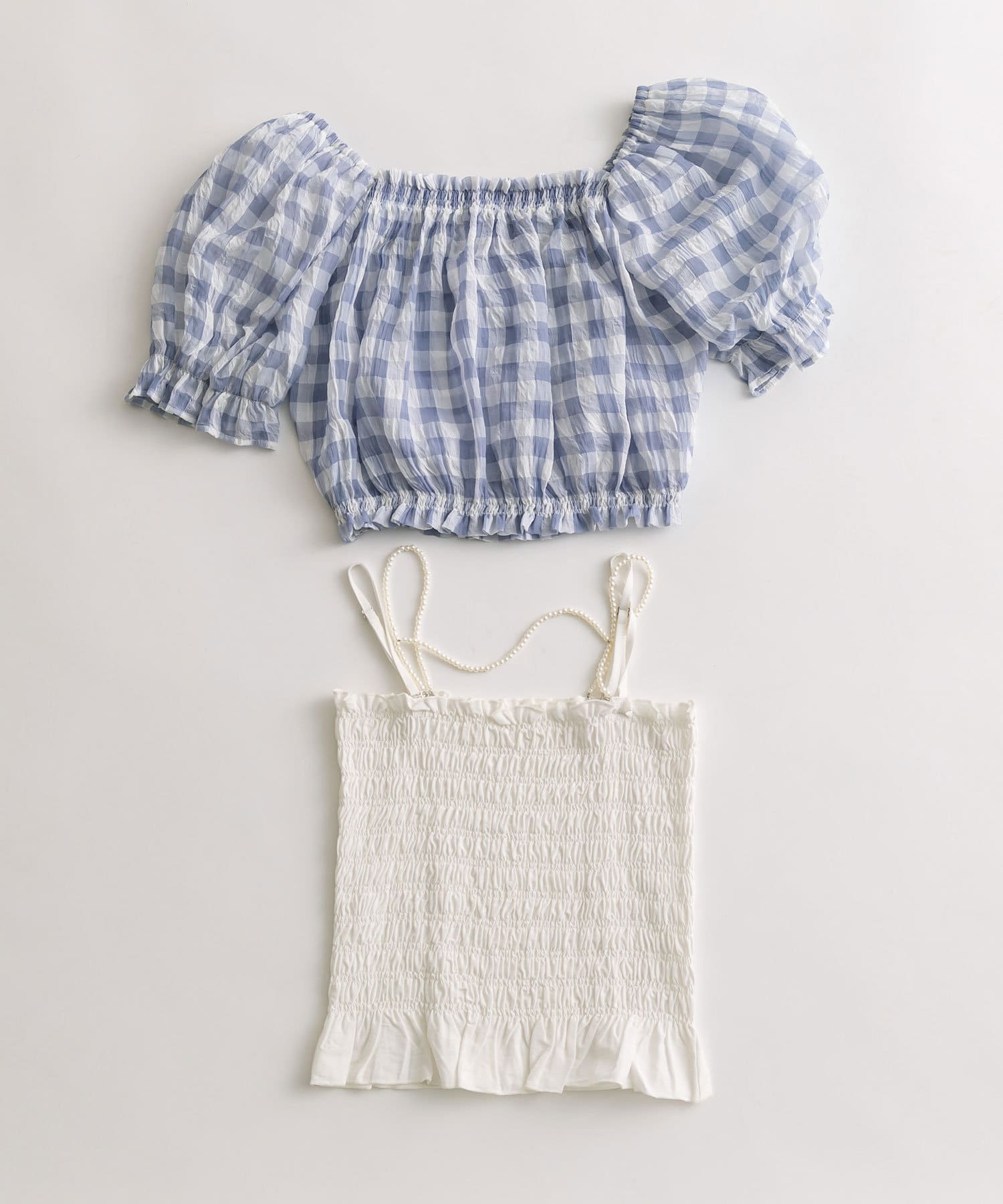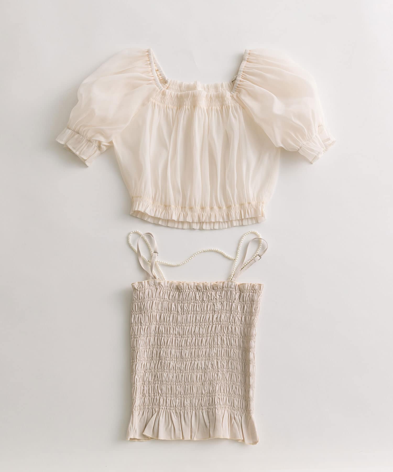 【WEB限定】肩ひもパール半袖ブラウスSET