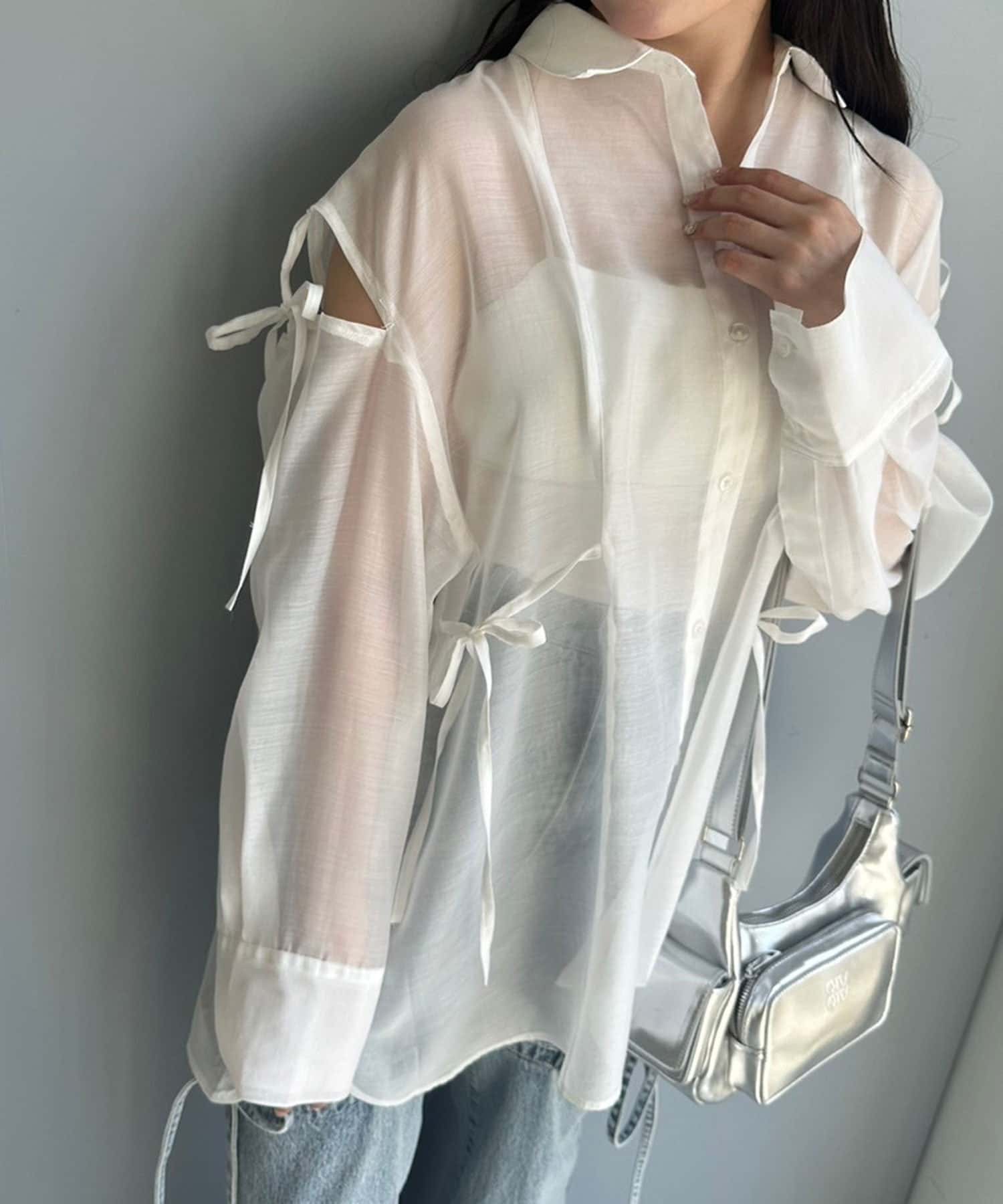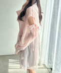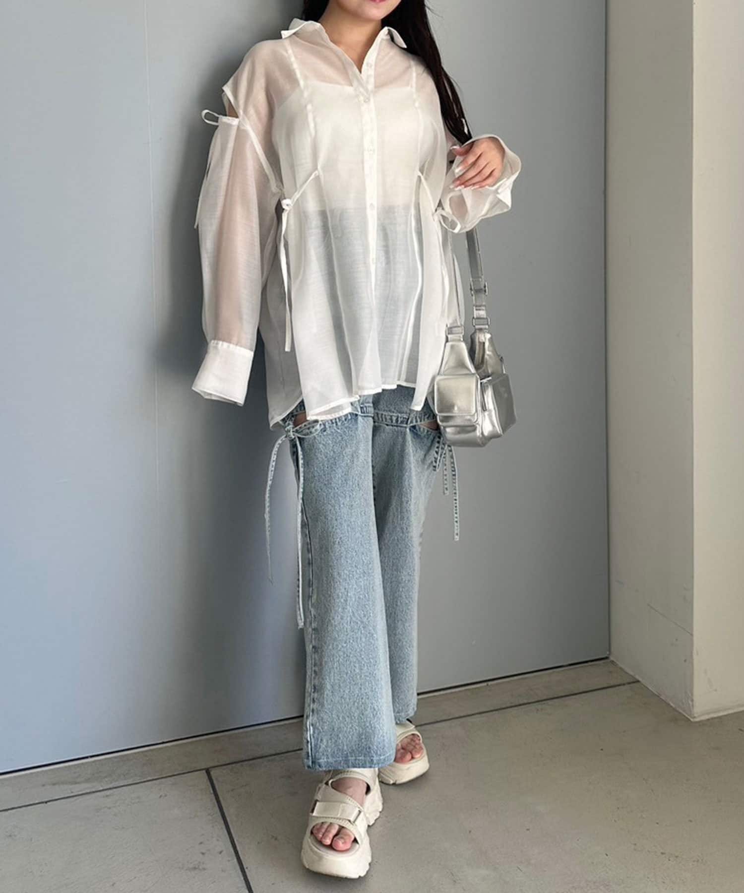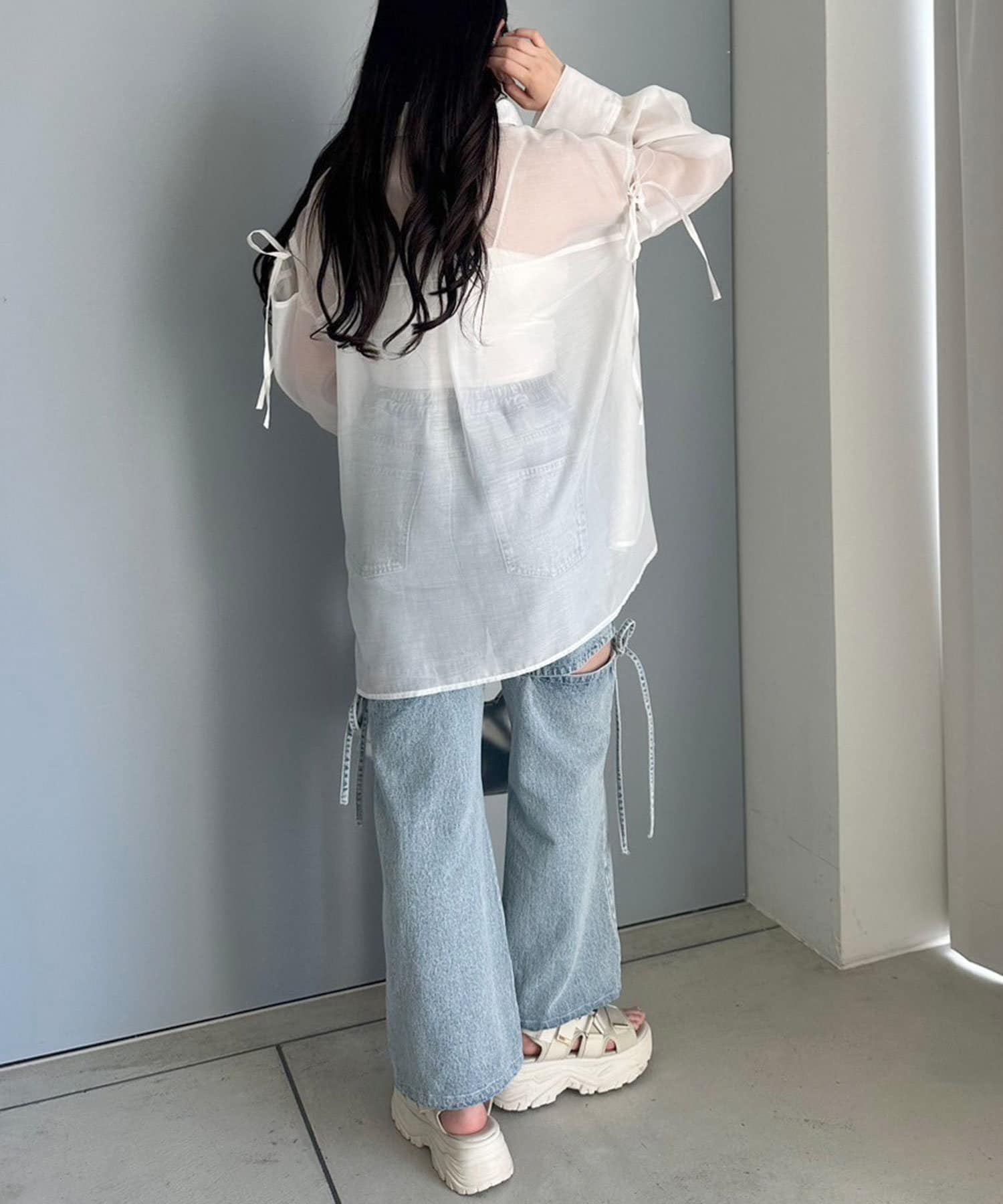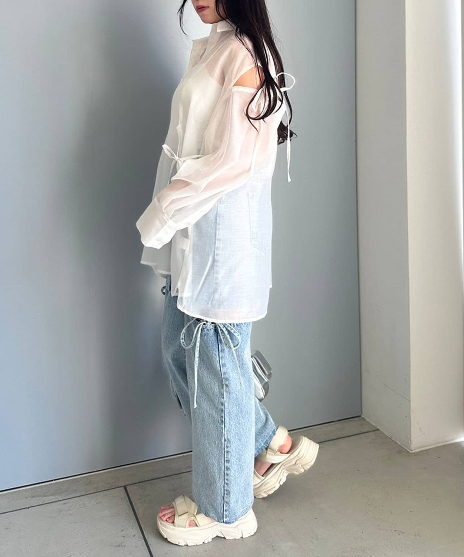 ・ウエスト部分はリボンで絞り具合を調節できて、きゅっと結ぶことで細見え間違いなしです。