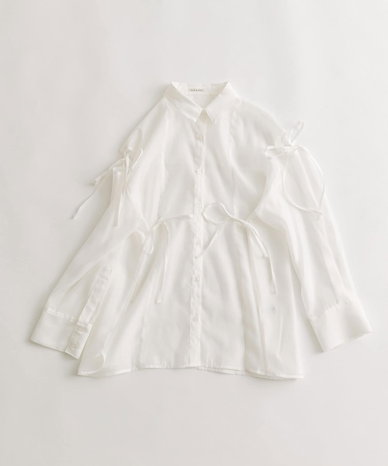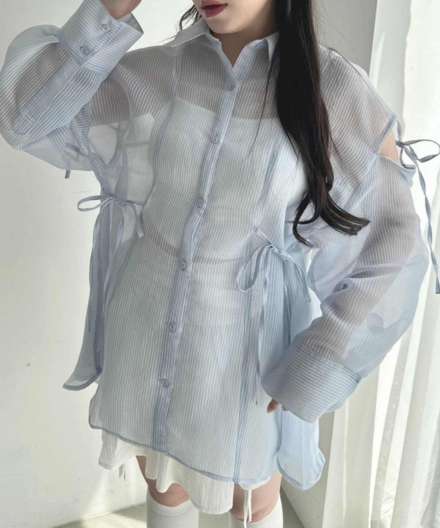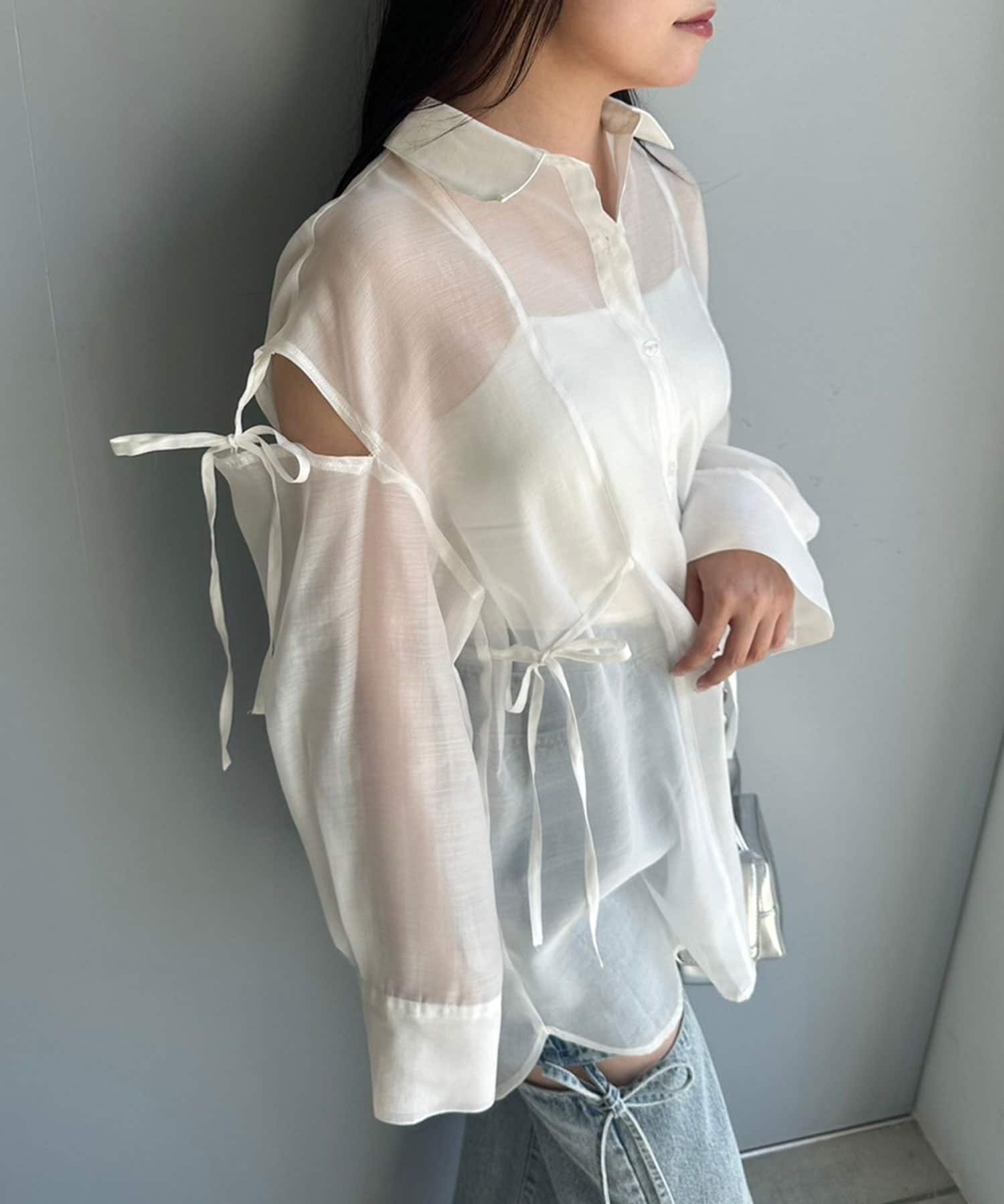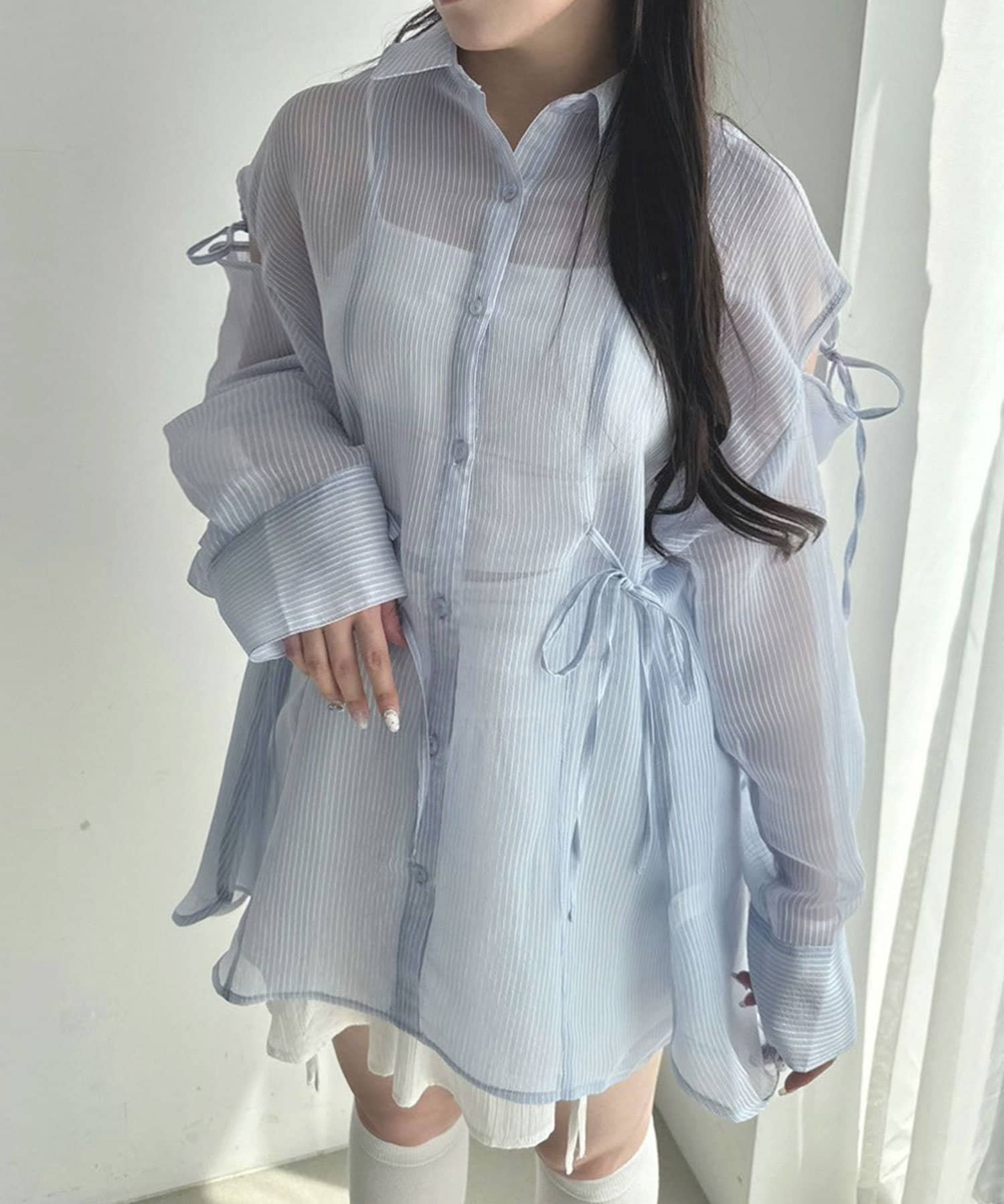 ・ウエスト部分はリボンで絞り具合を調節できて、きゅっと結ぶことで細見え間違いなしです。