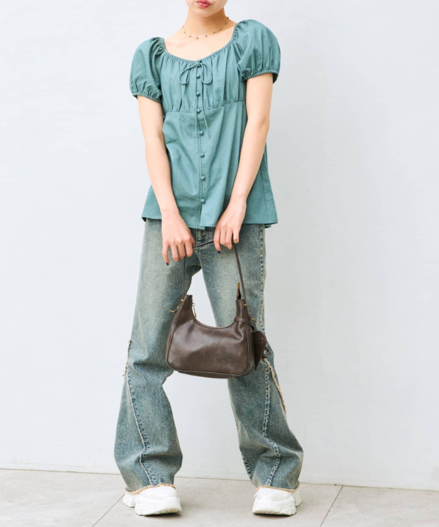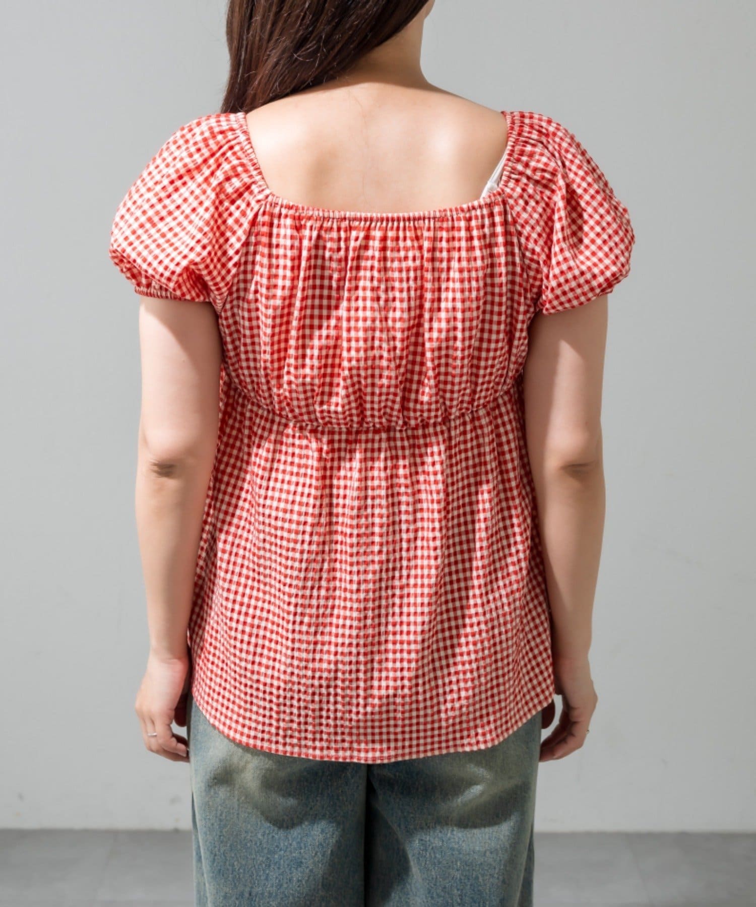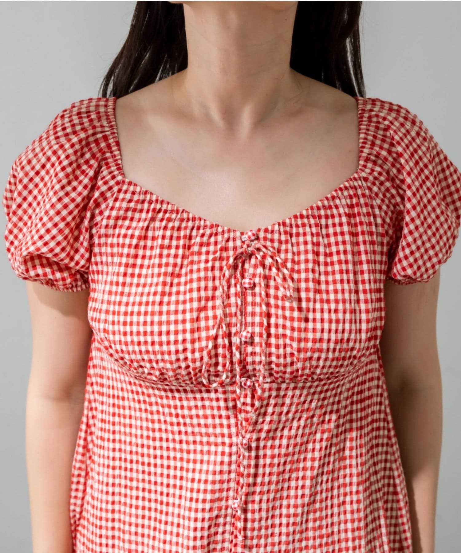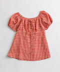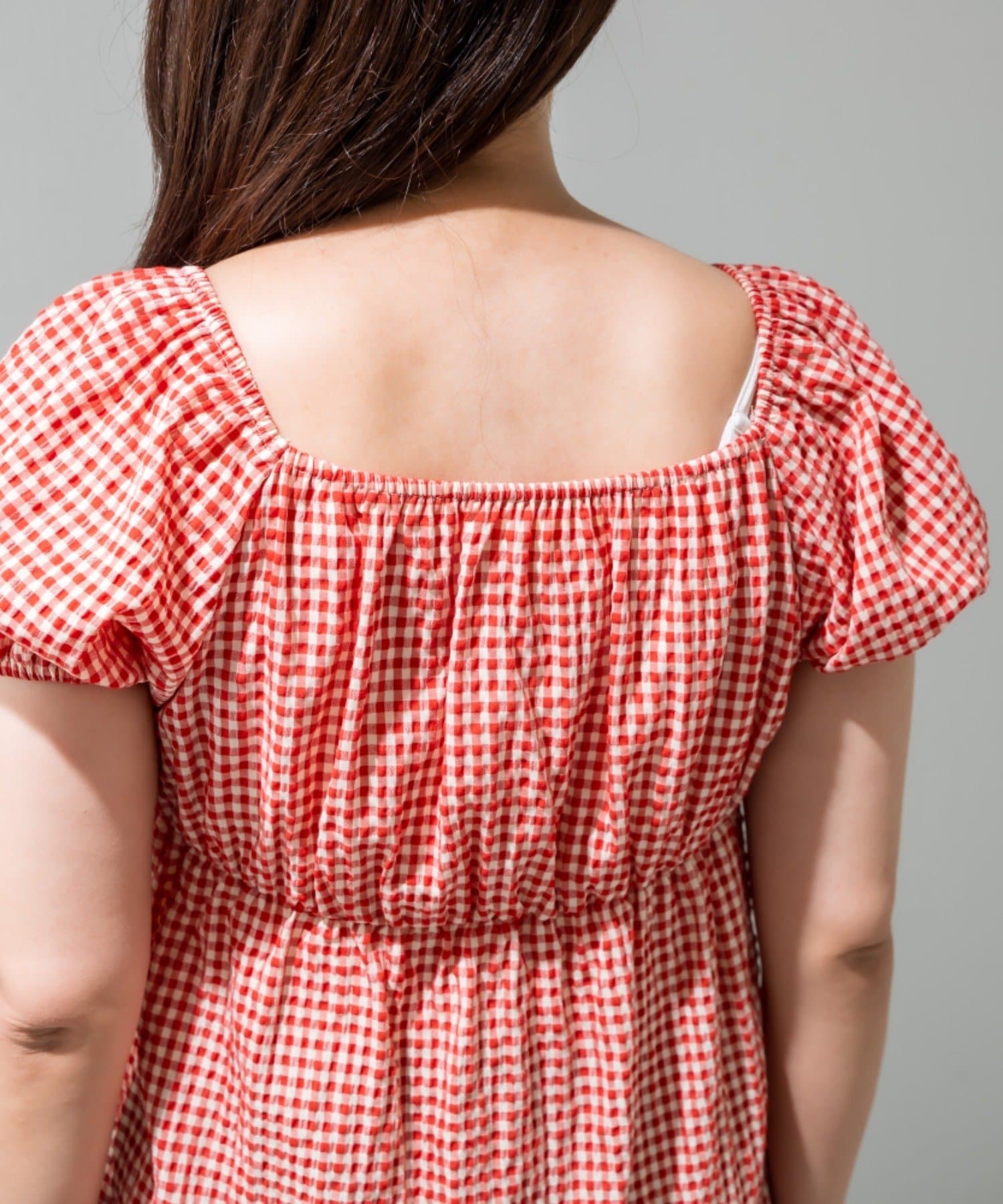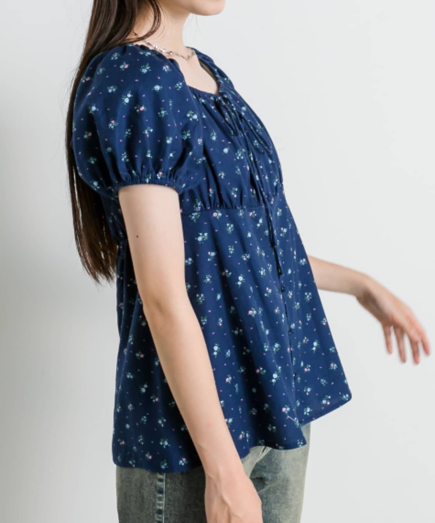 ・程よいボリューム袖が女の子らしさを演出し、気になる二の腕も可愛くカバーできます。