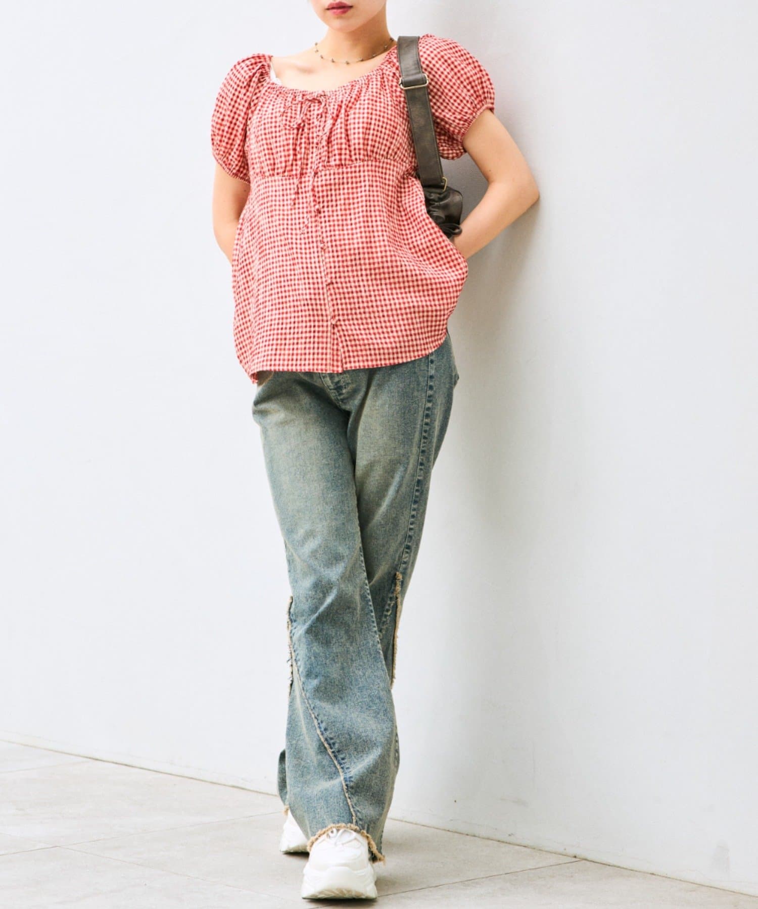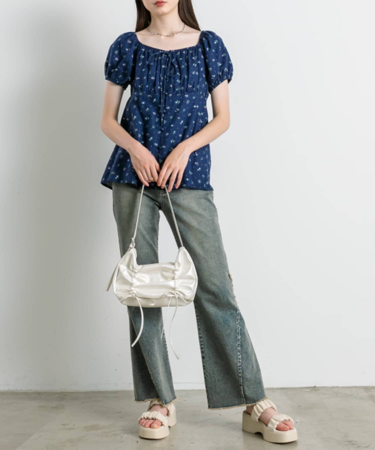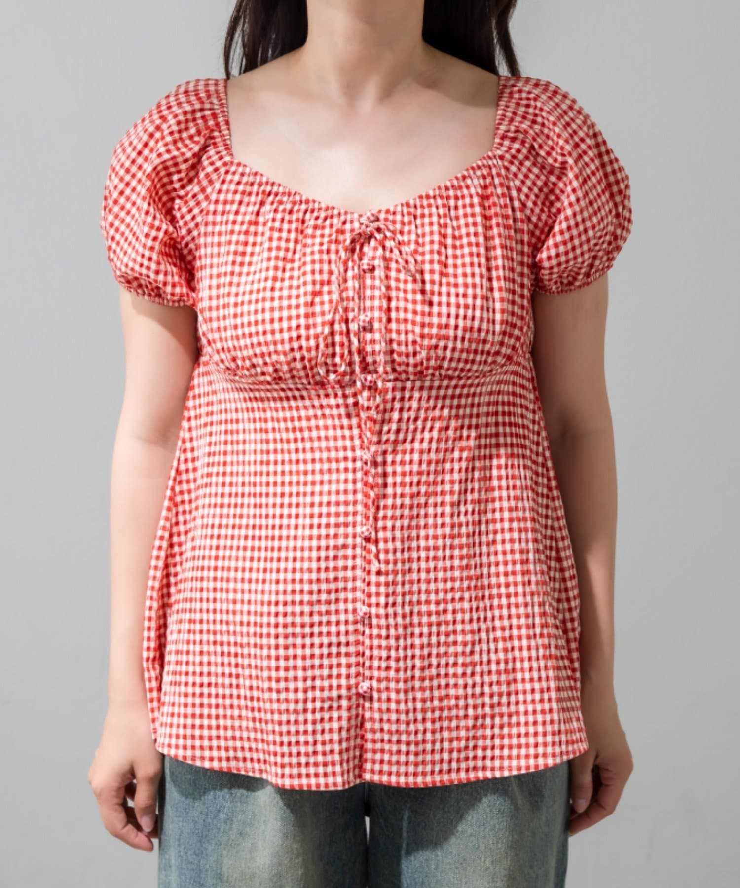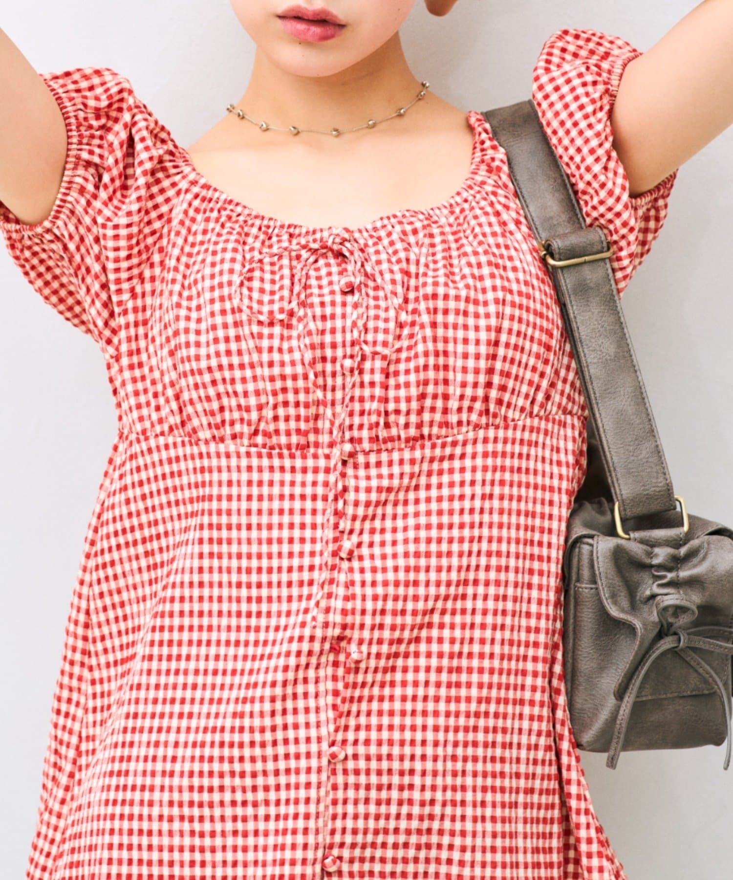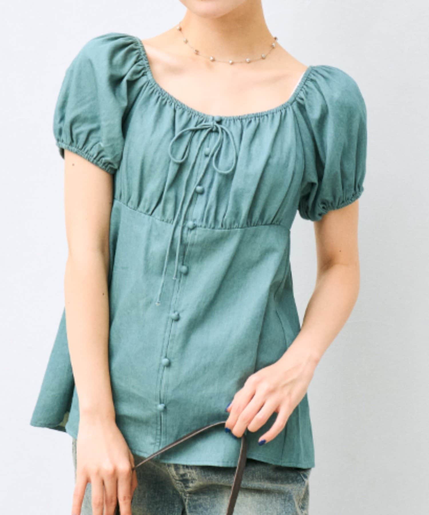胸ギャザーリボンブラウス
