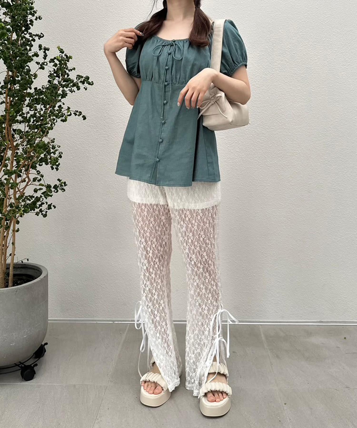 華奢なリボンが女の子らしいデザインのブラウス