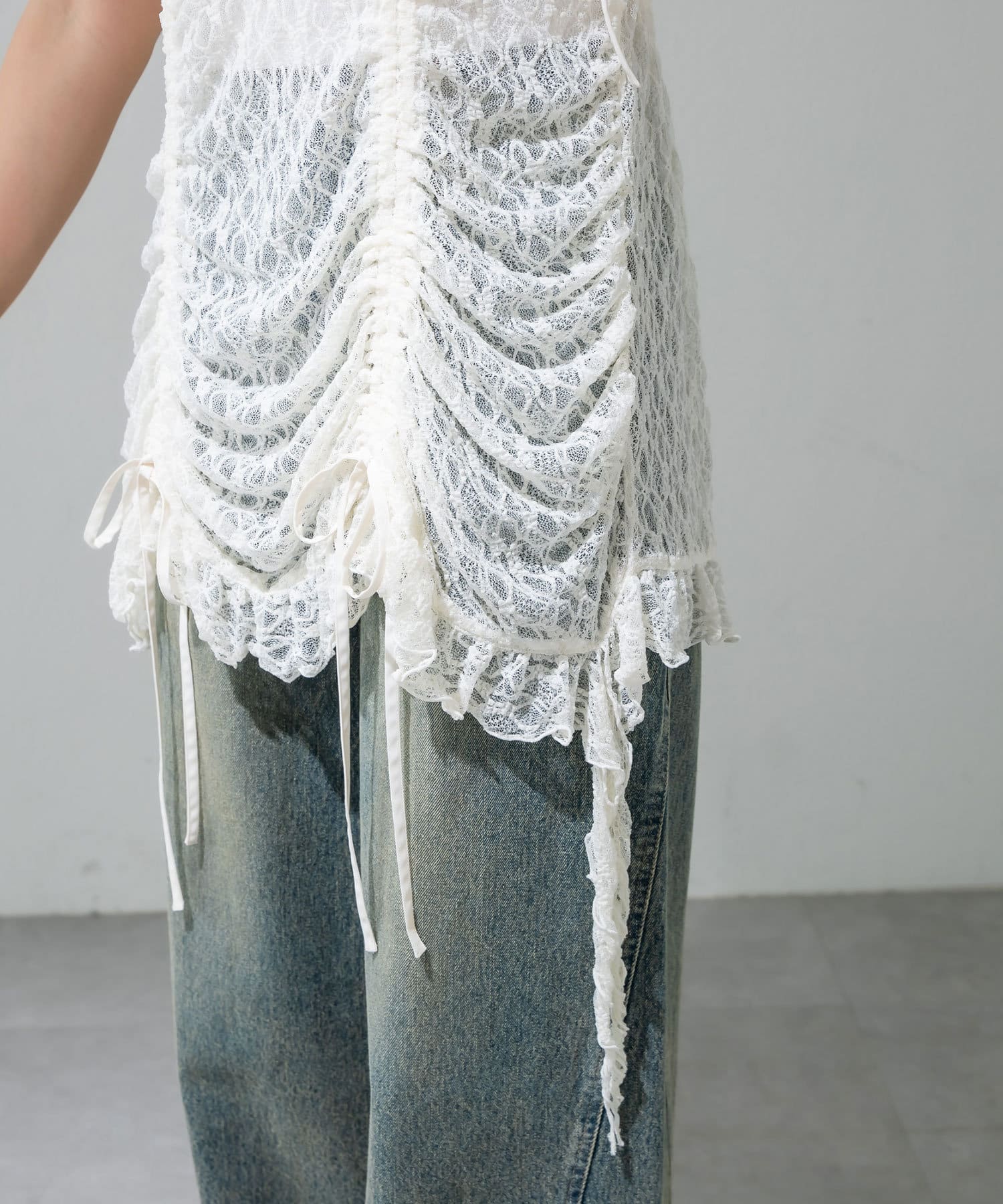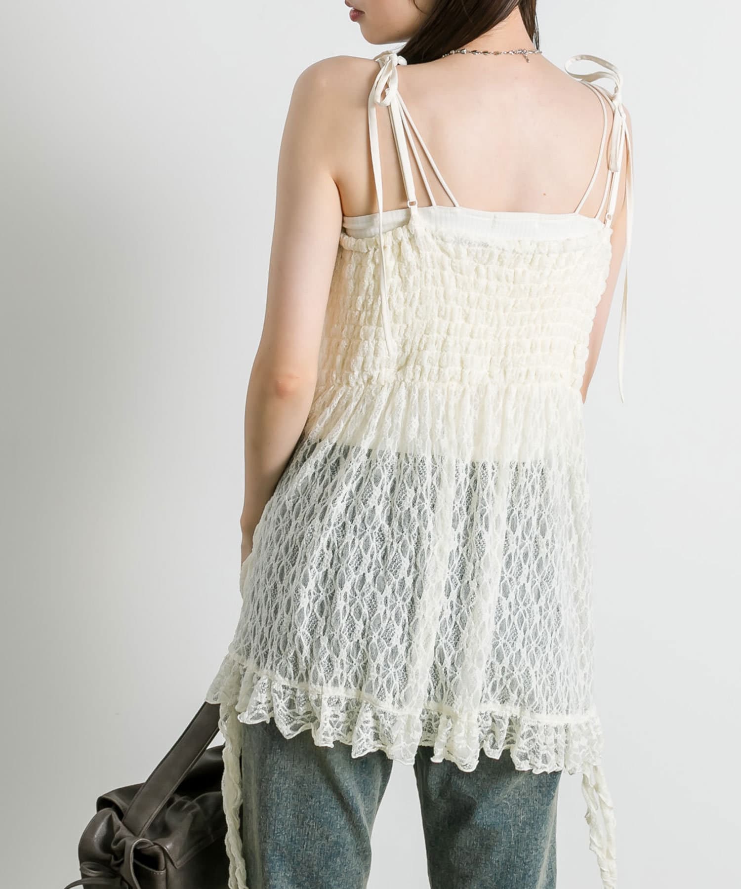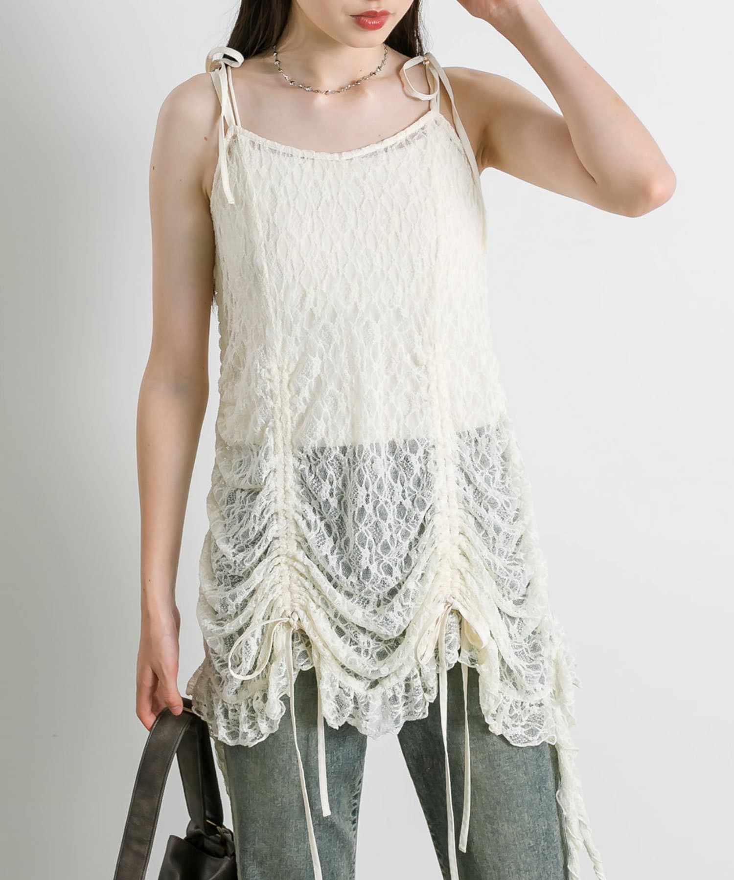 ・総レースにトレンドのドロストデザインが目を惹くチュニック。