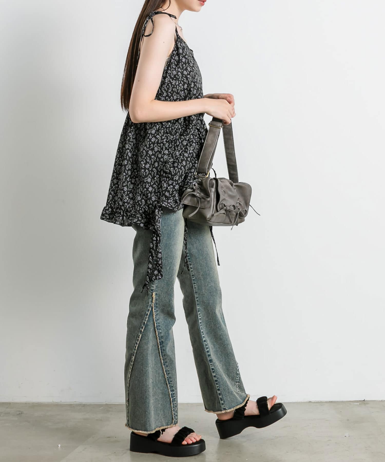 ・カップ付きインナーにデニムを合わせたコーデがおすすめ。