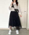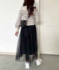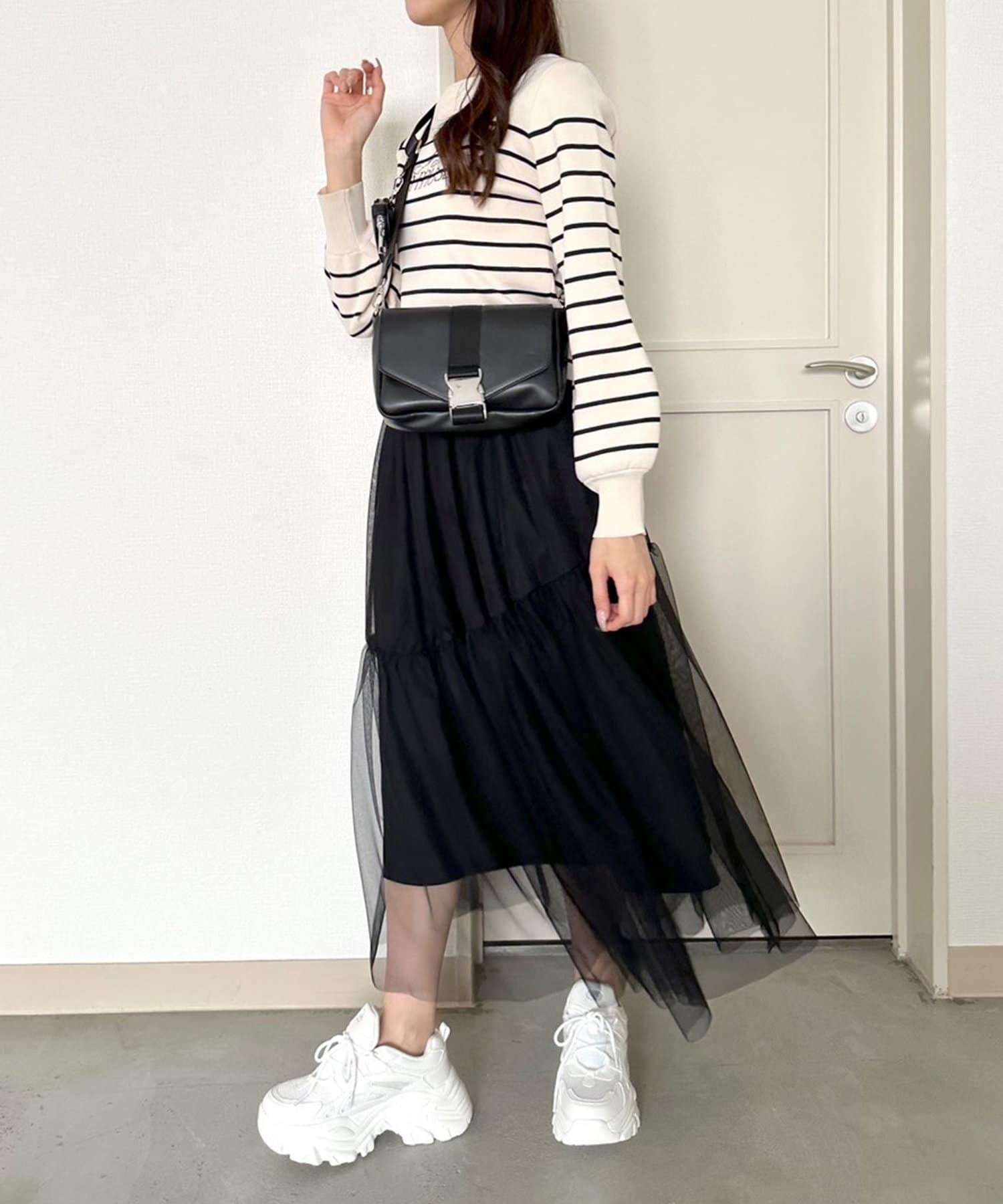 ・トレンドのチュールスカートでを合わせても可愛いです。