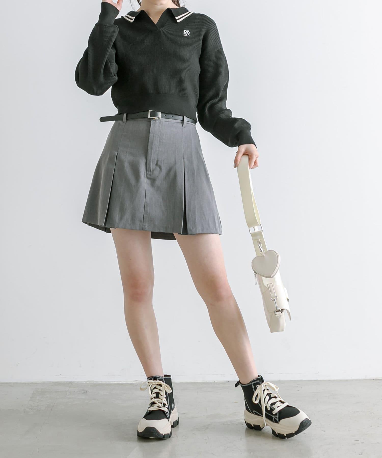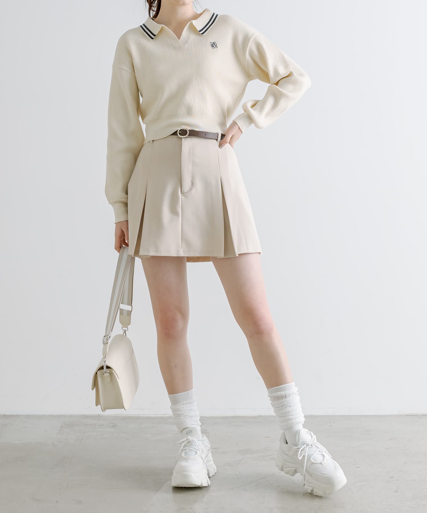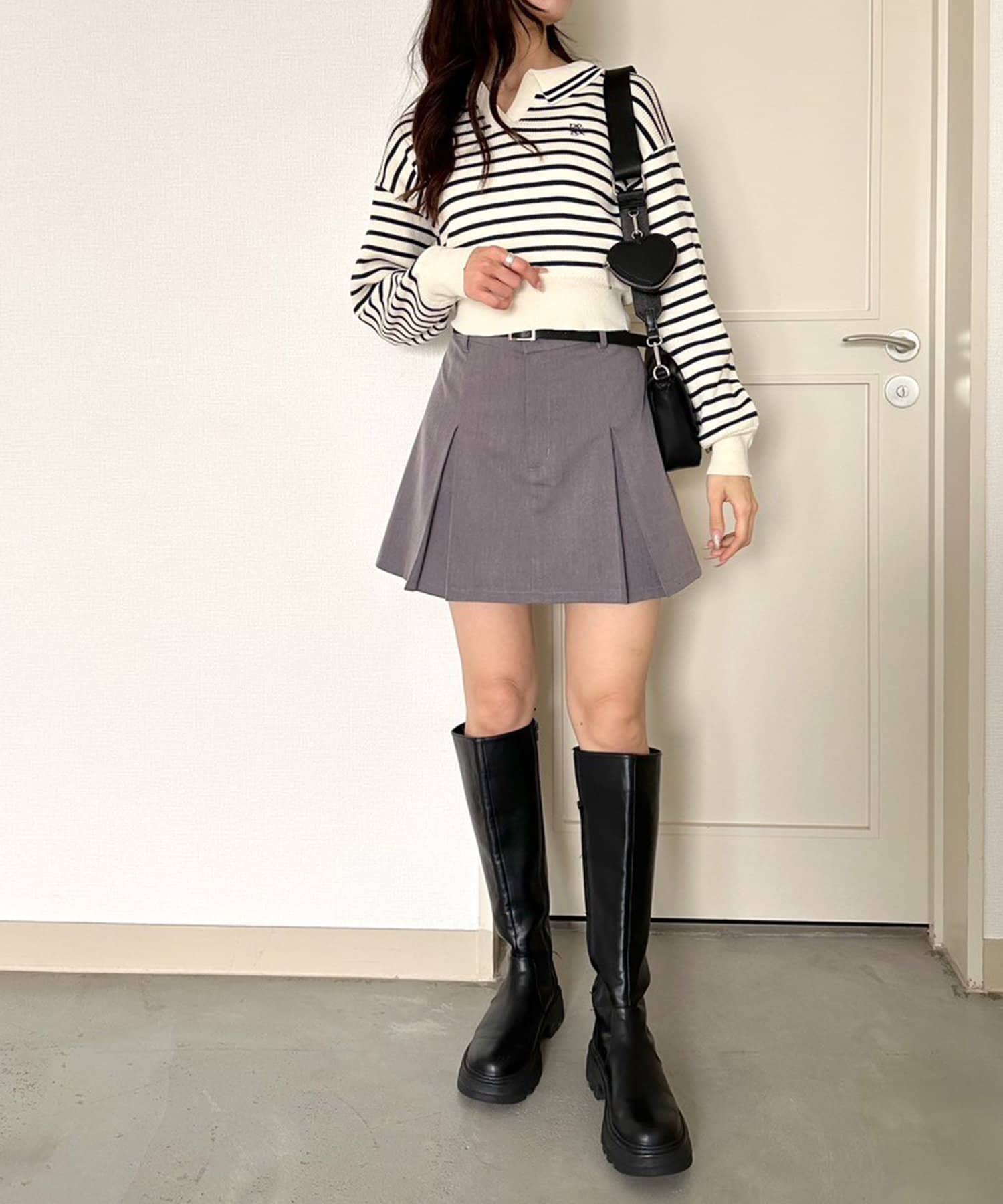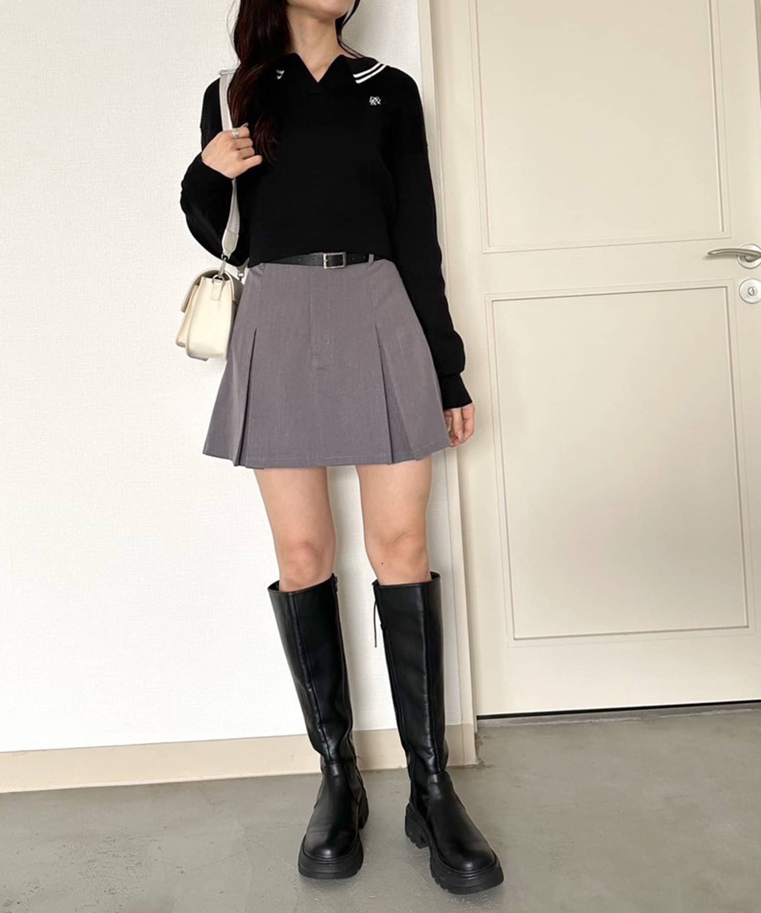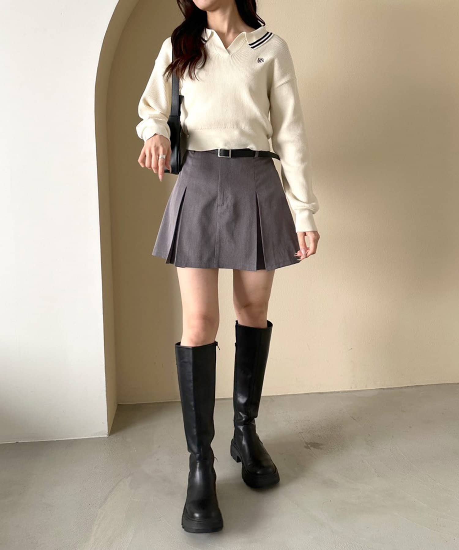 ・トレンドのプリーツスカートでプレッピーなスタイリングが一押し。