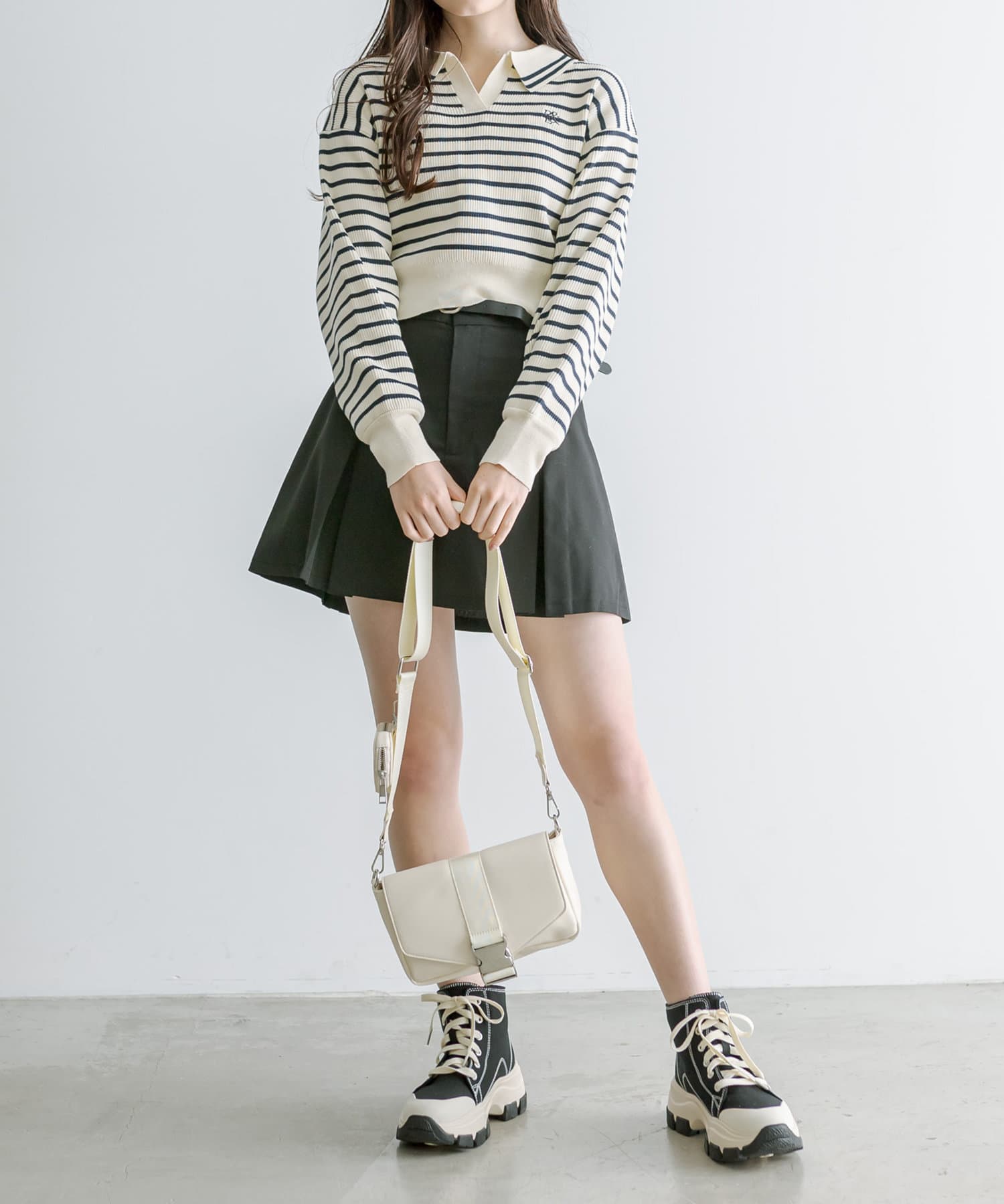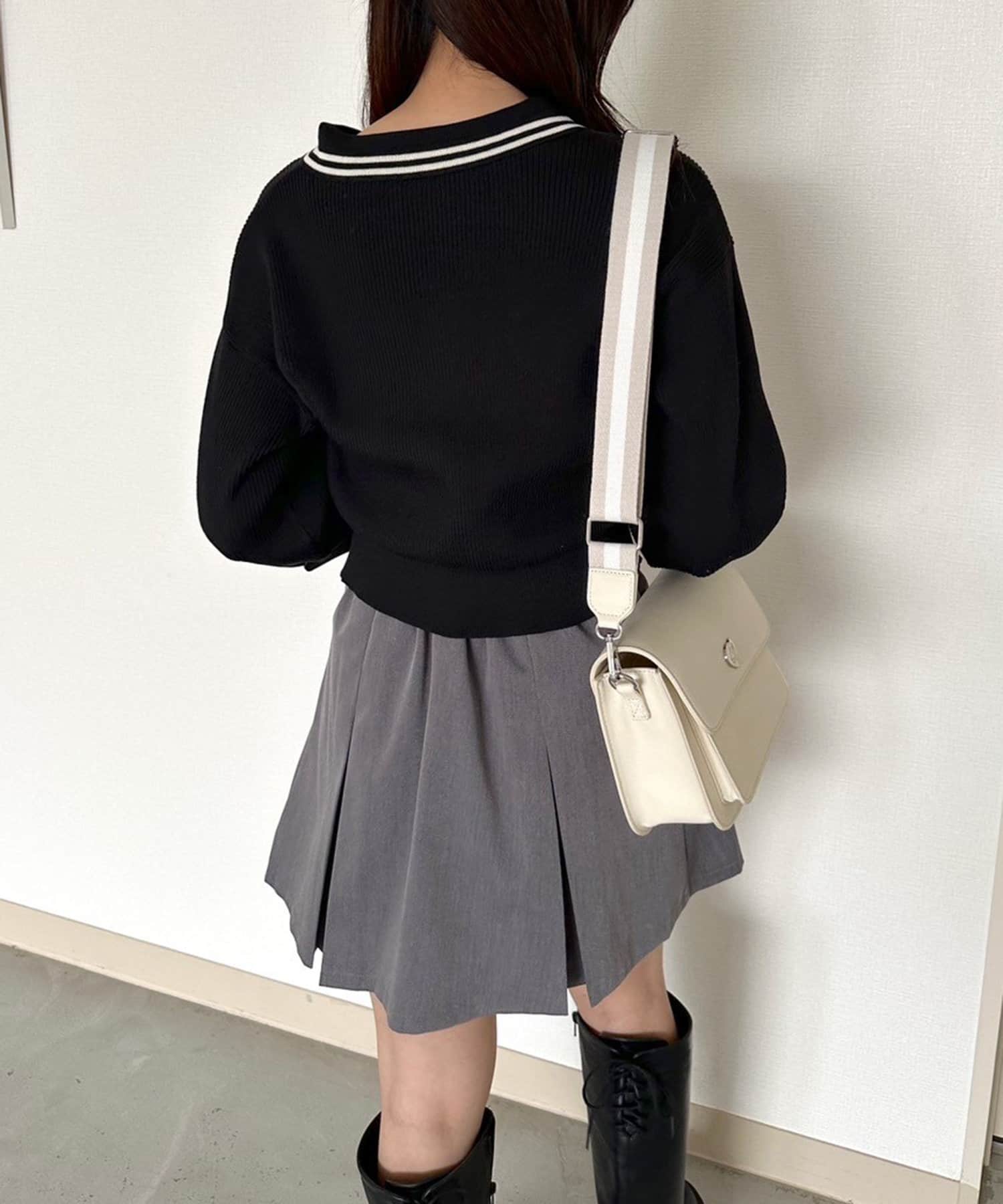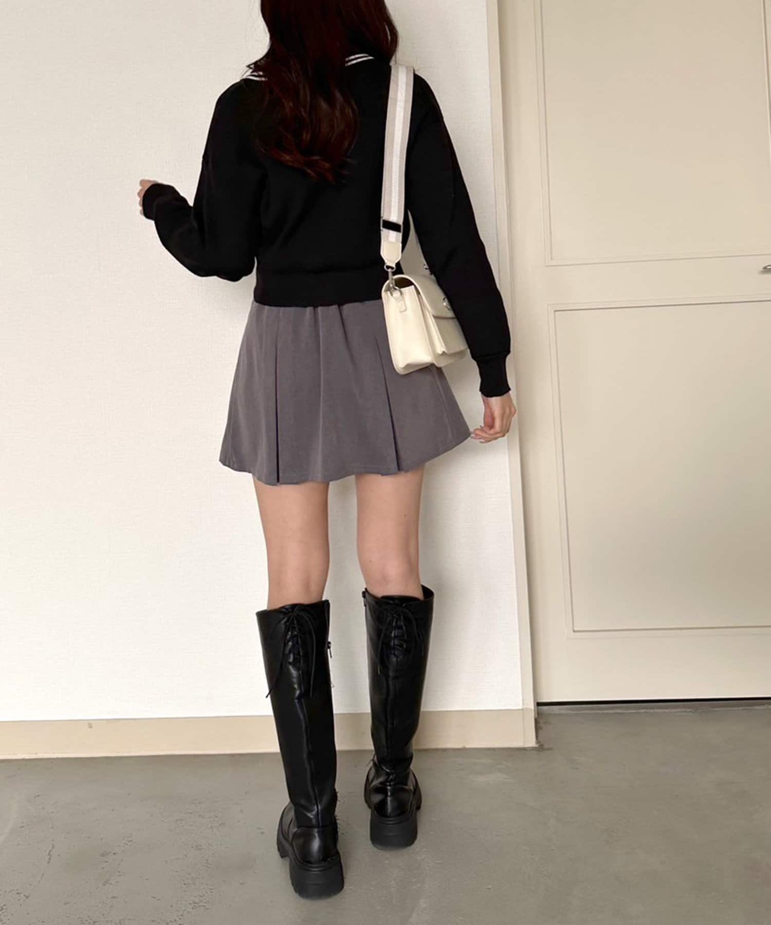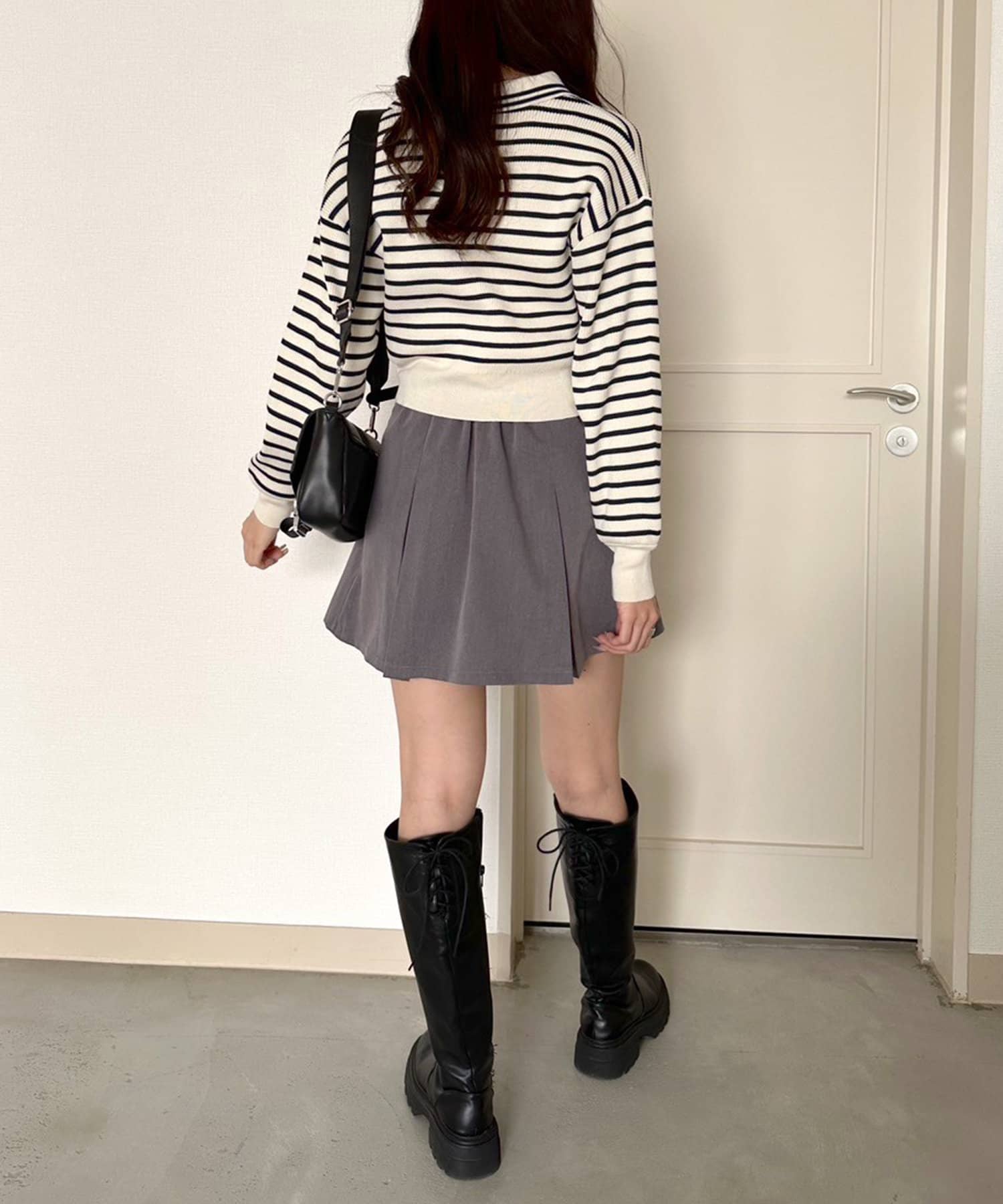 ・トレンドのプリーツスカートでプレッピーなスタイリングが一押し。