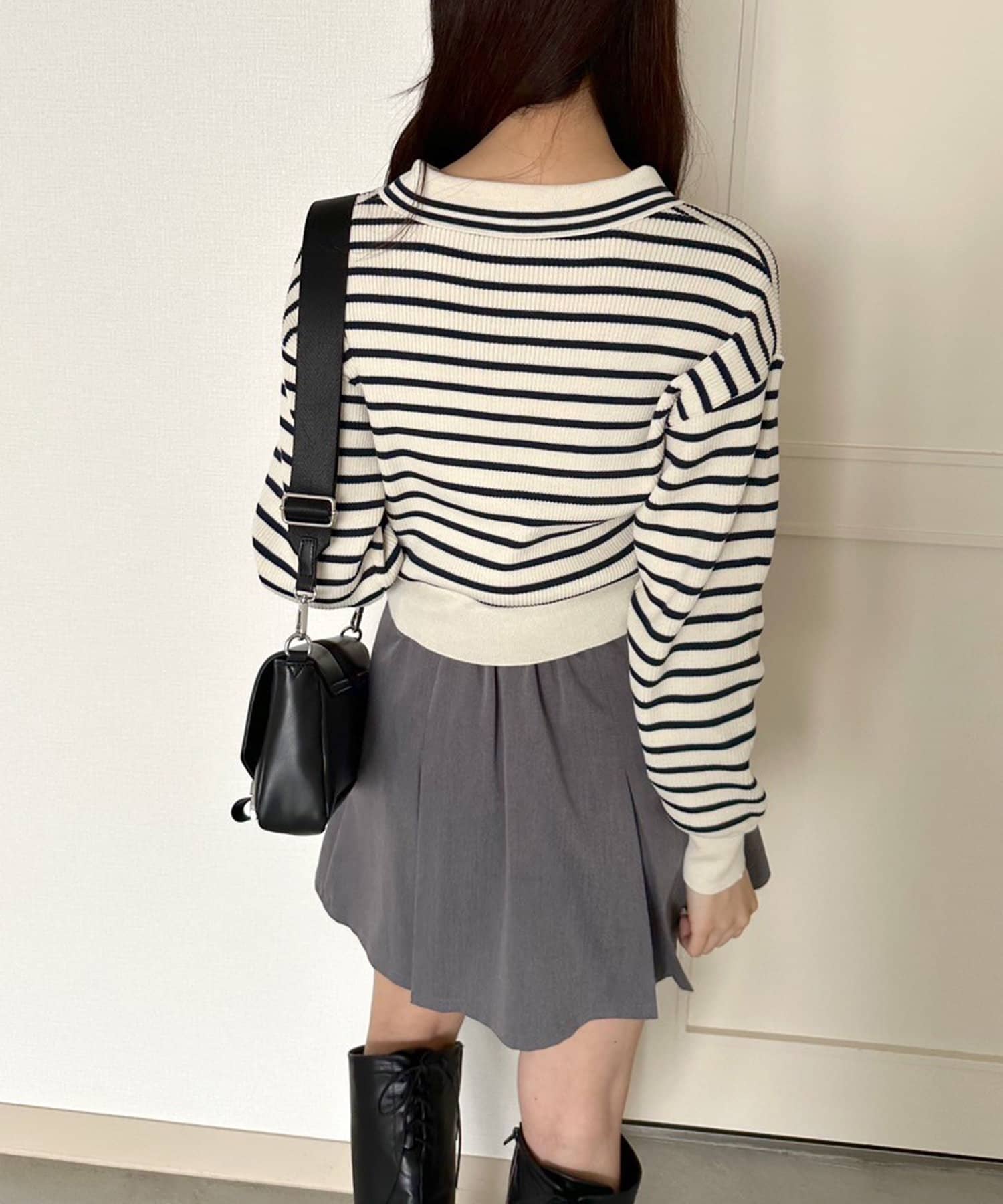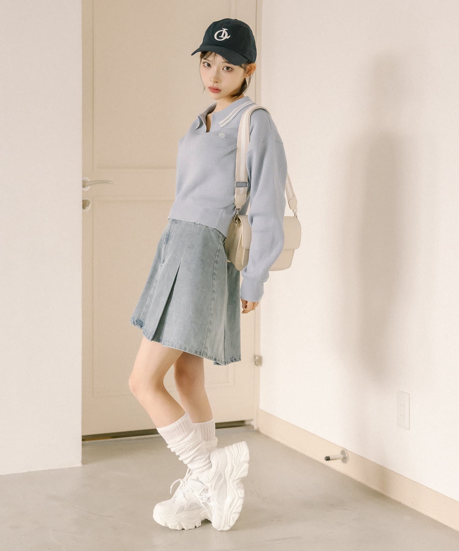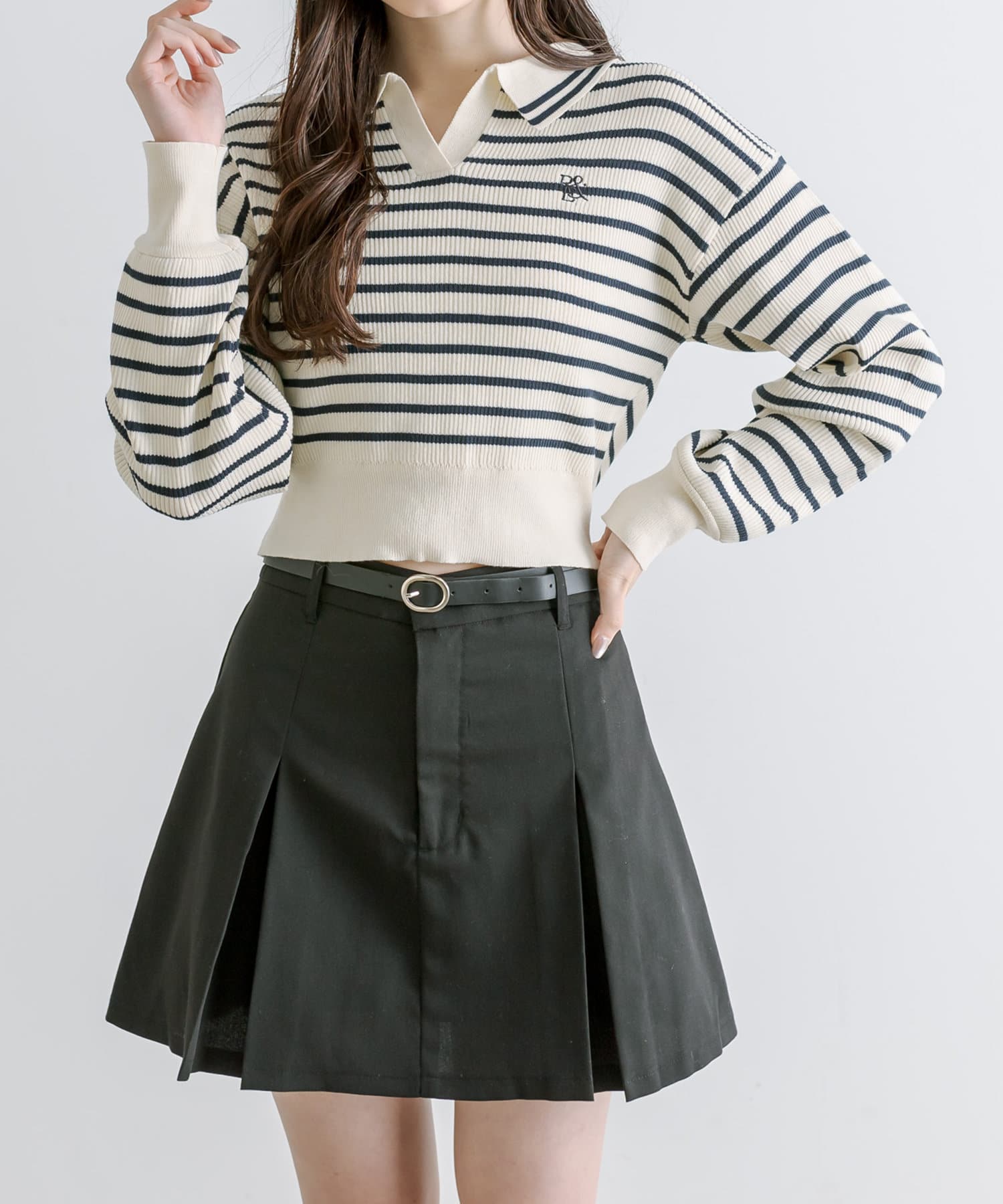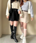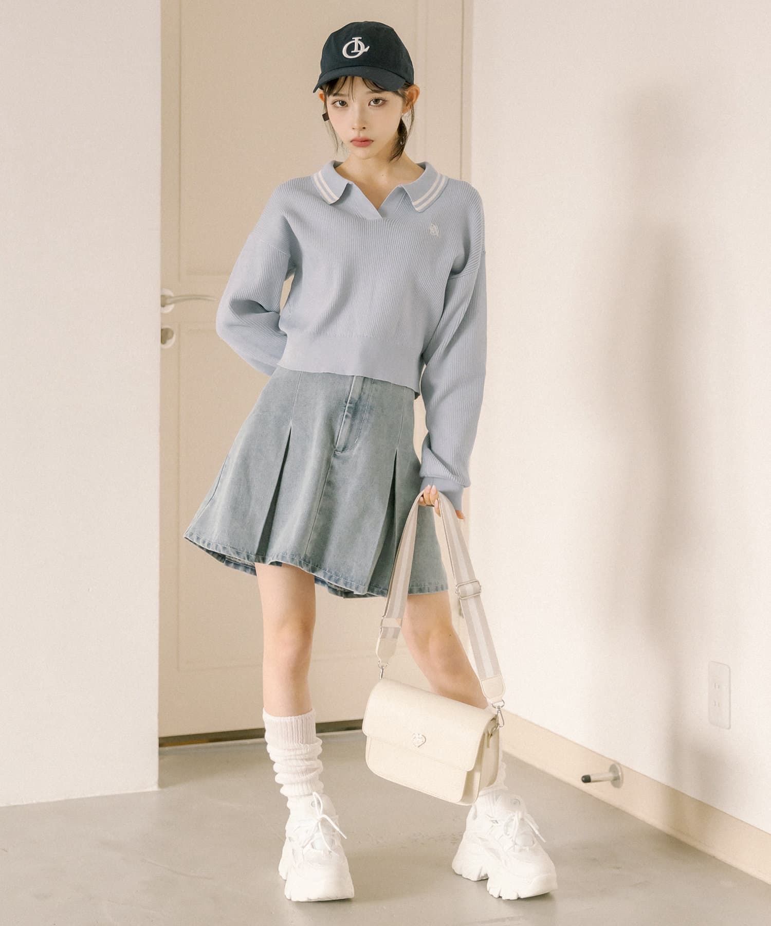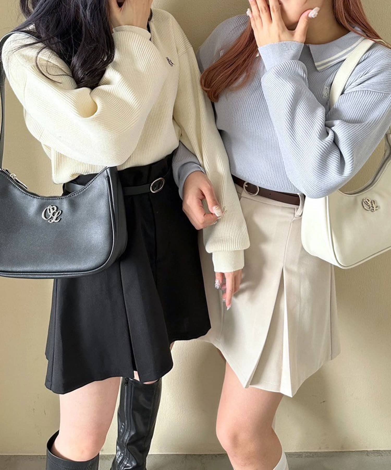 ・トレンドのプリーツスカートでプレッピーなスタイリングが一押し。