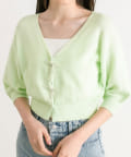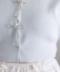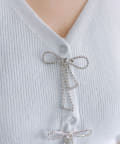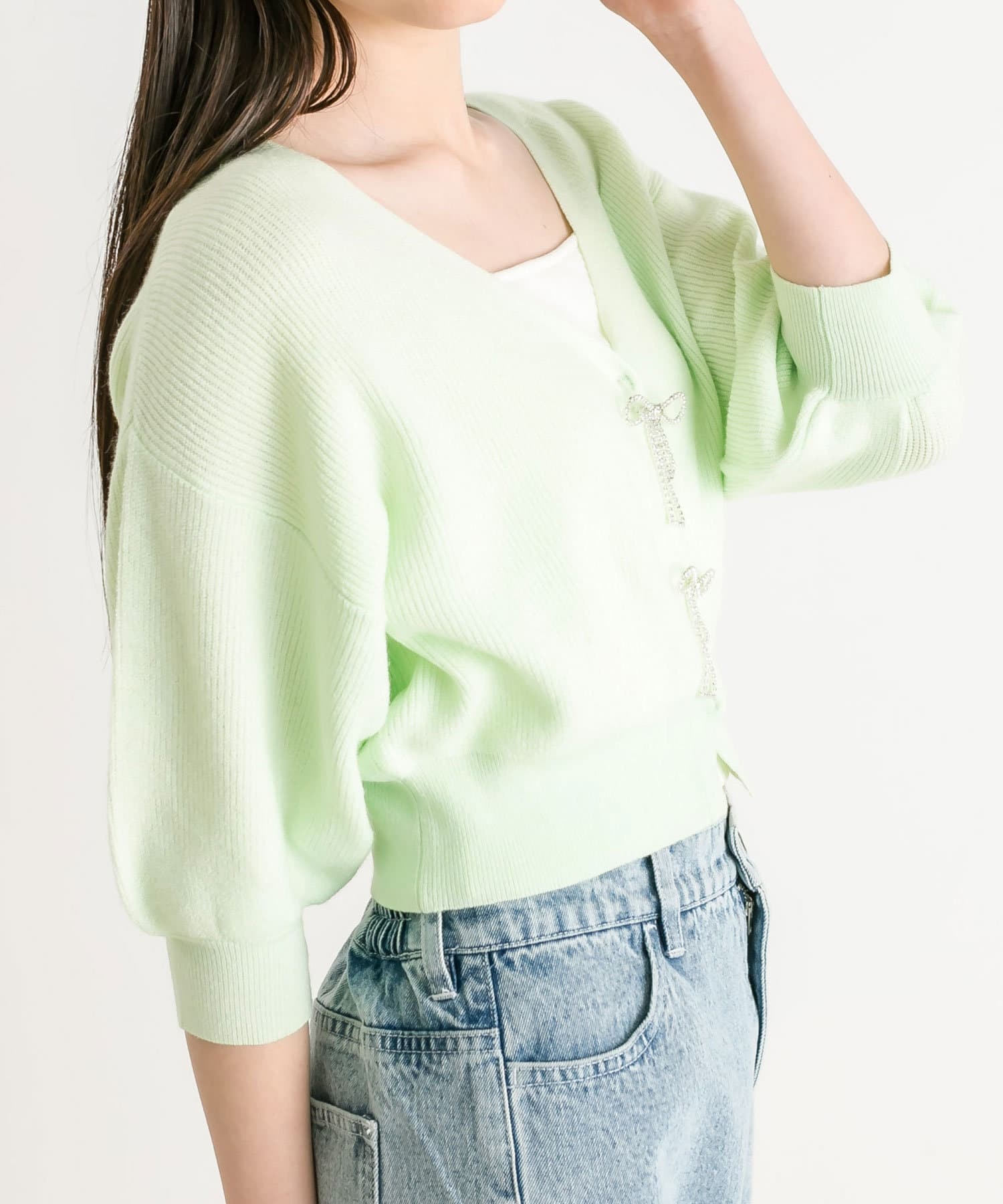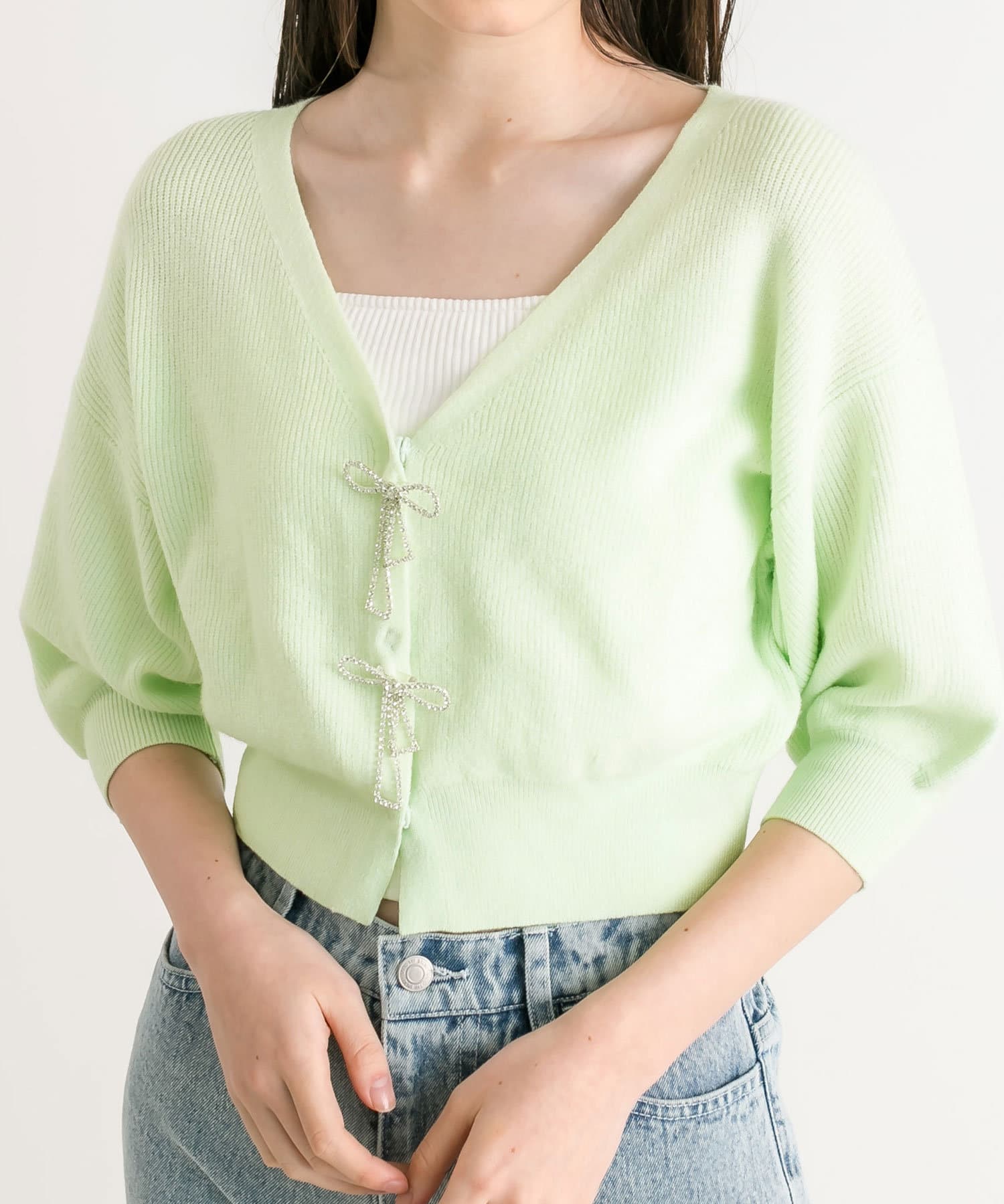 ・トレンドのリボンモチーフのビジューが可愛いカーディガン。