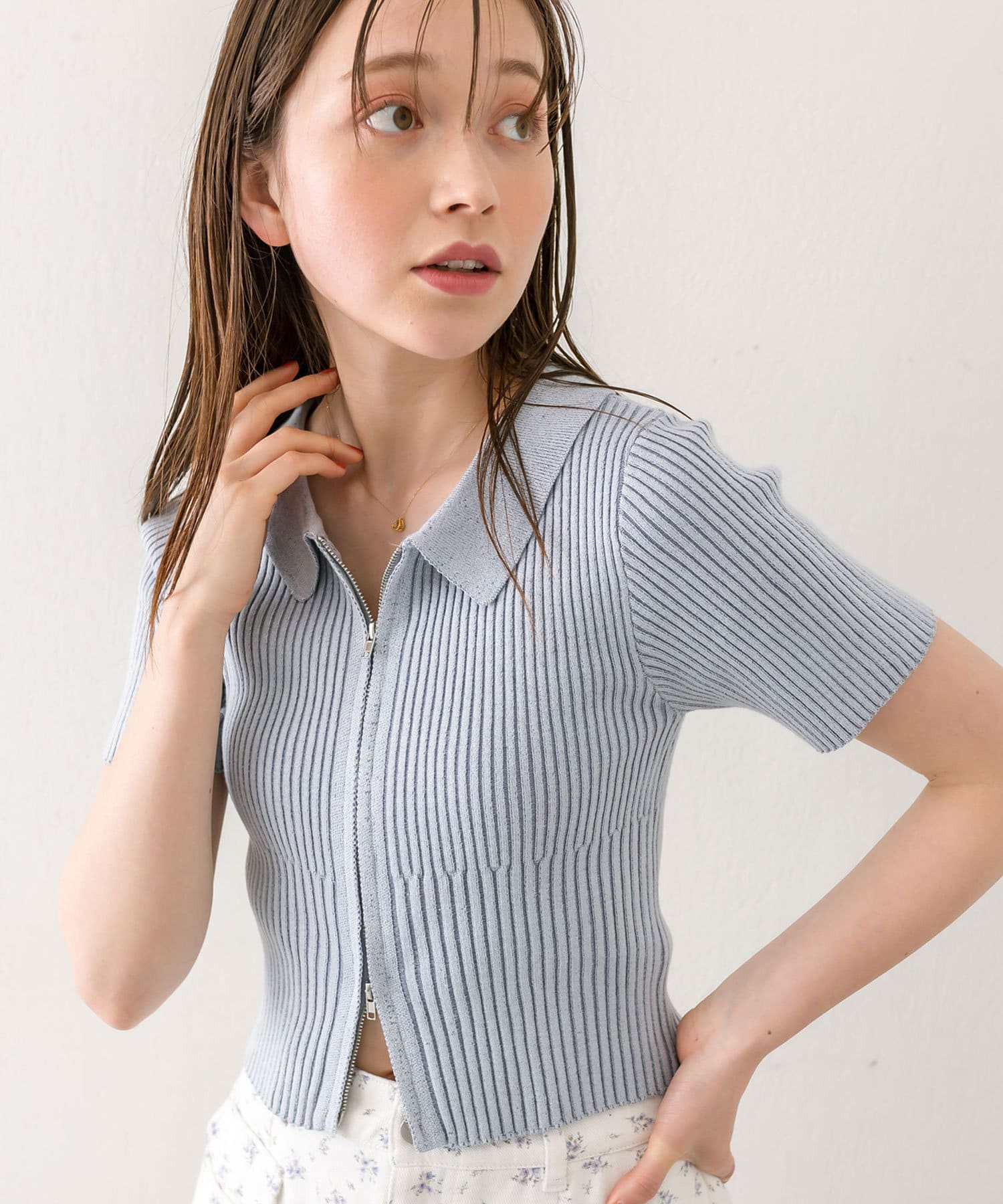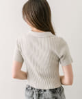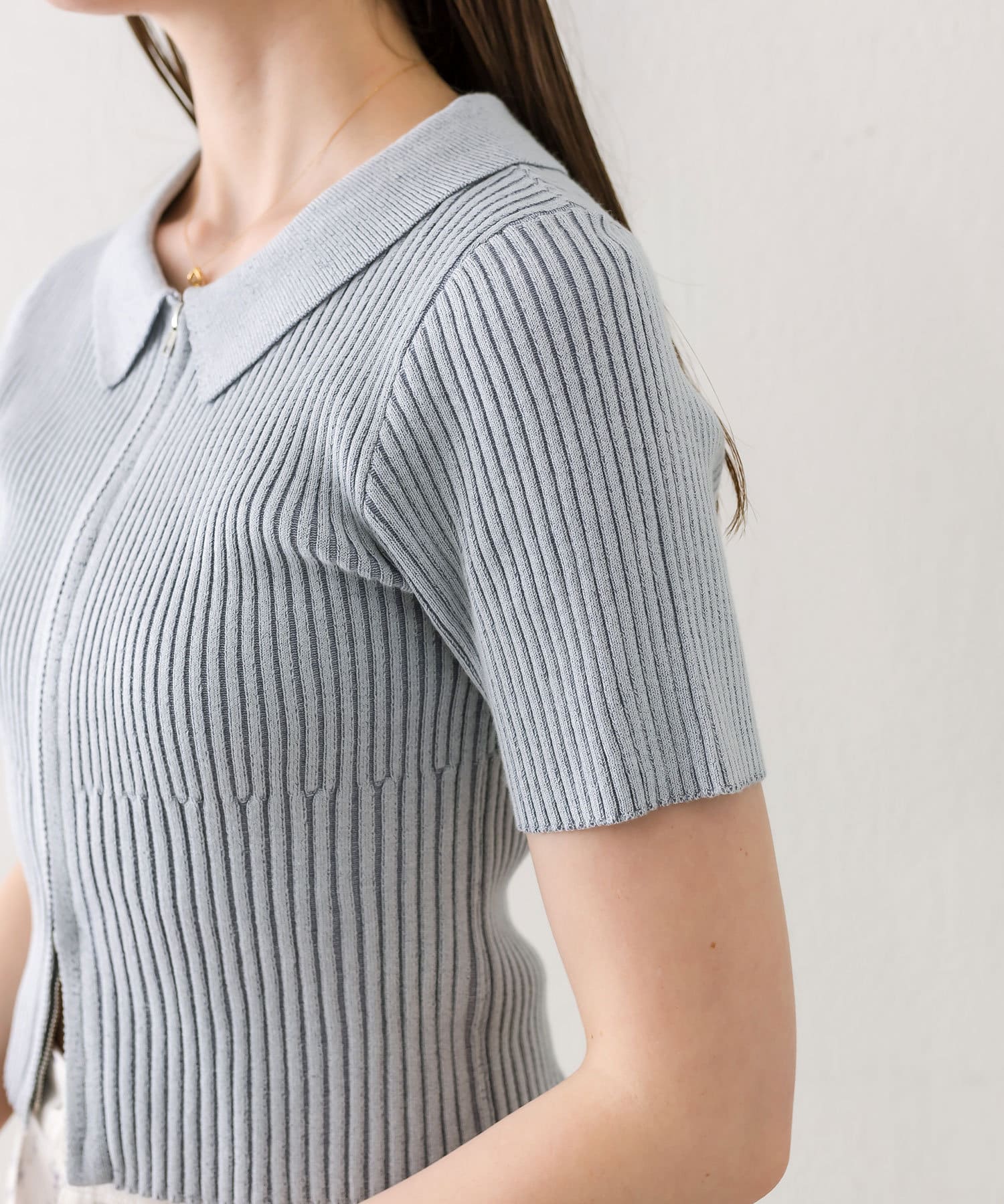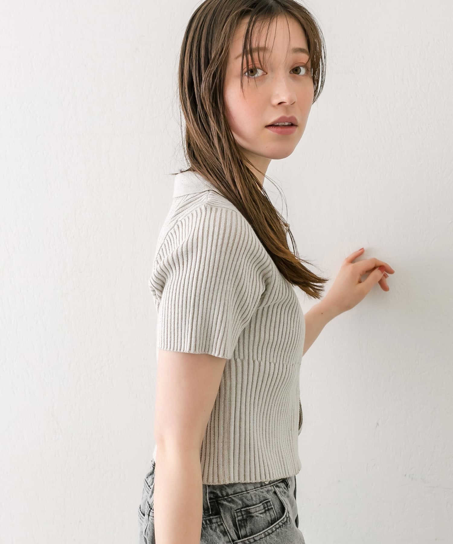 ・ボディラインに沿うニット生地で、リブの太さも場所によって違い、簡単にスタイルアップが叶います。