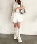 ・ミニスカートと合わせてバレエコアコーデがおすすめ。