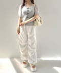・カーゴパンツやスウェットパンツなどカジュアルアイテムを合わせてブロケットコアコーデもかわいいです。