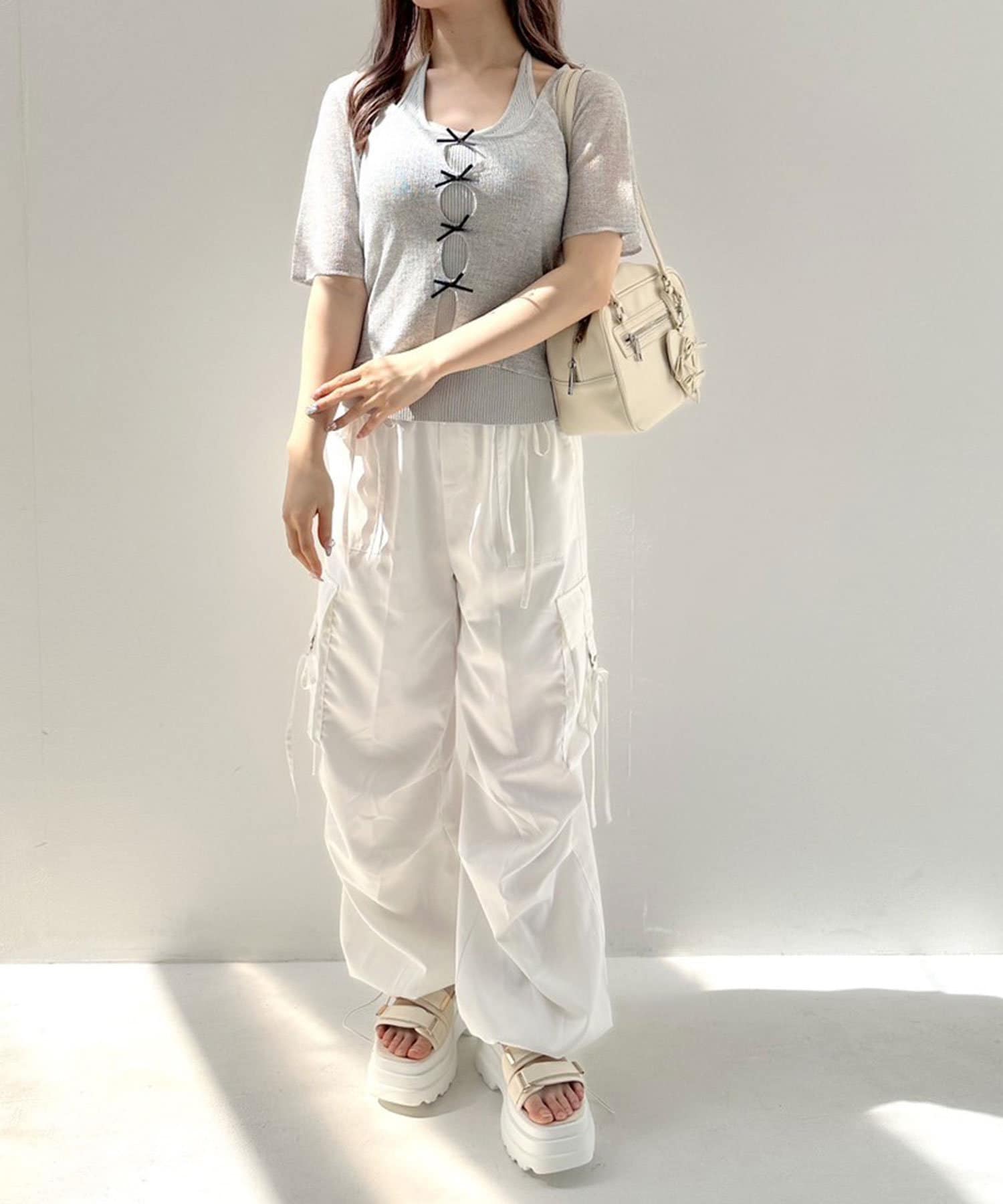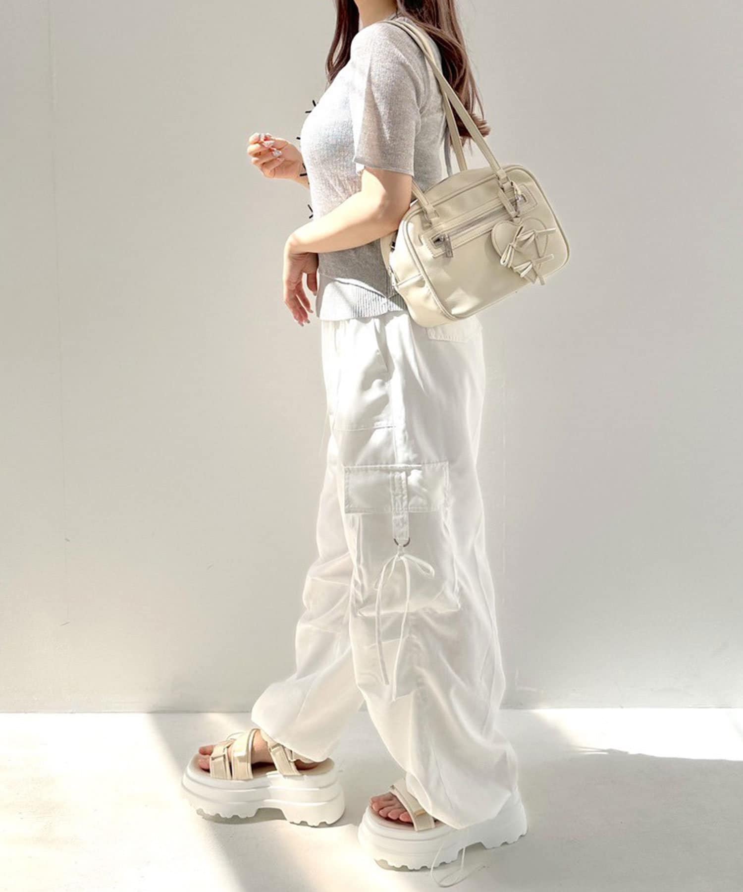 ・トレンドのリボンがたくさんついたデザインですが、甘すぎずは広いコーデに合わせやすいです。