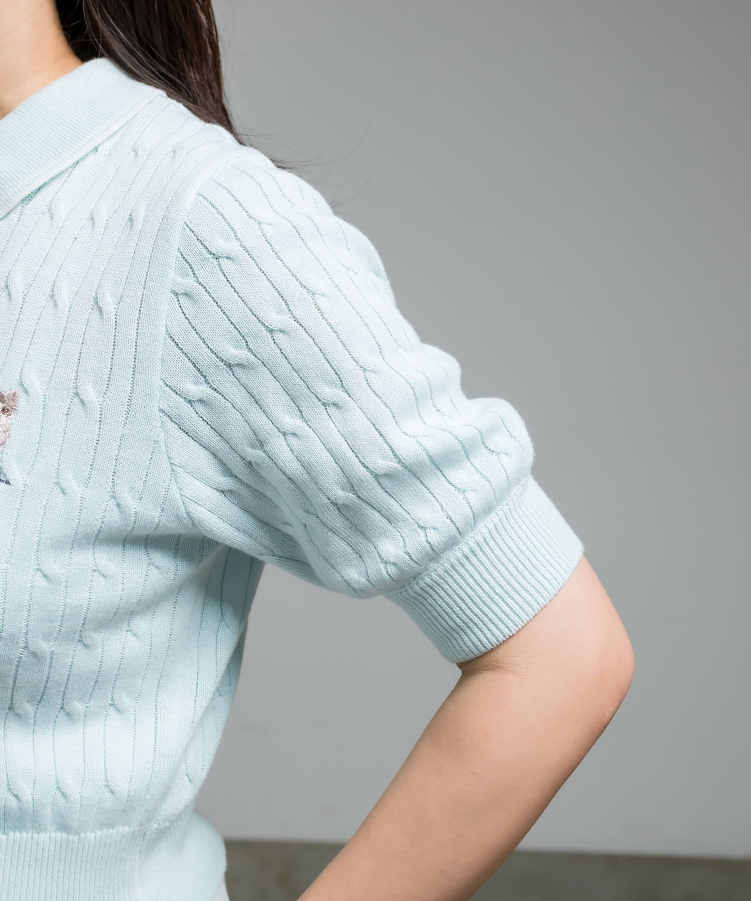 ・ネコ刺繍と衿の配色カラーが目を惹くポイント。