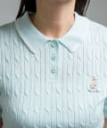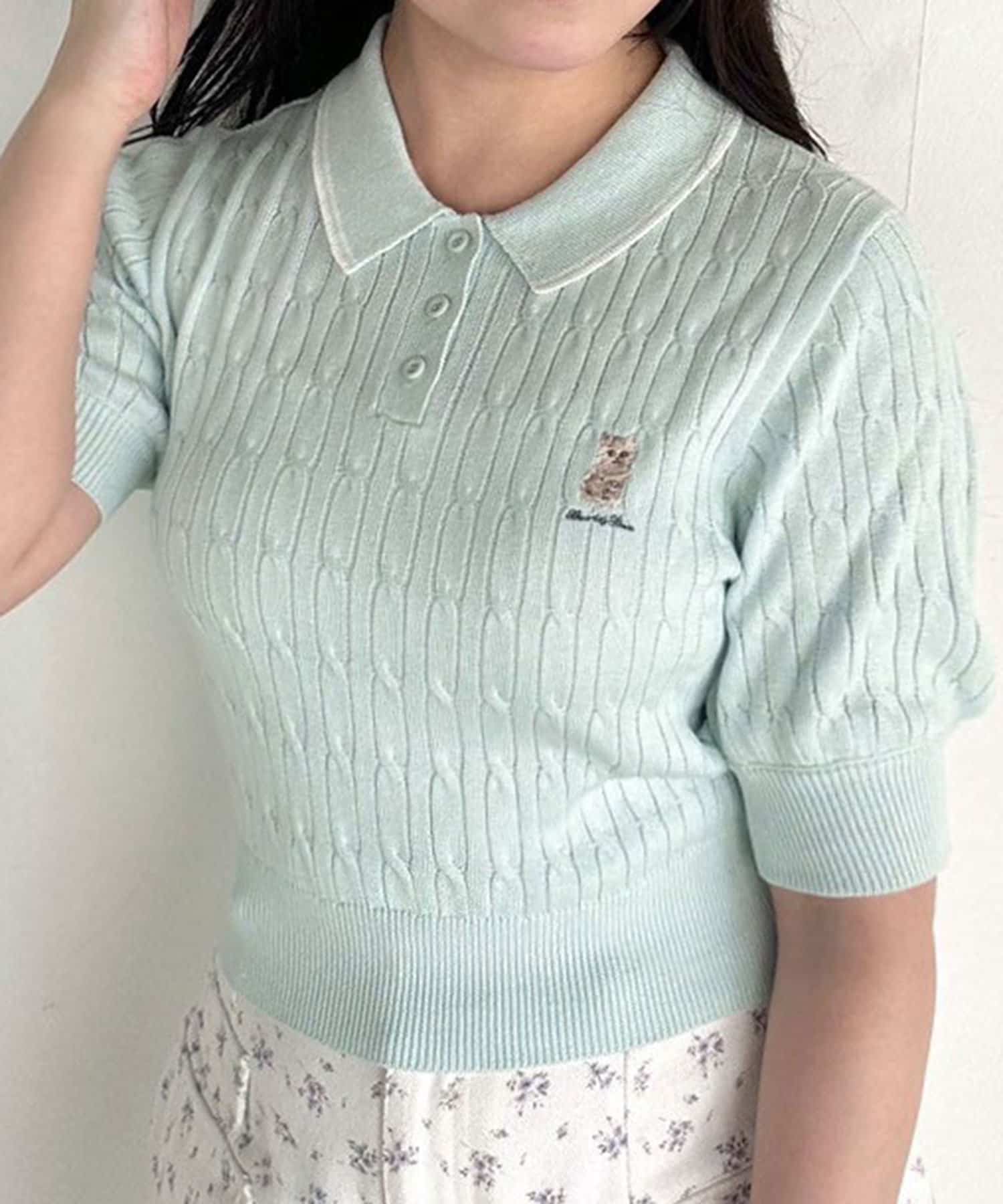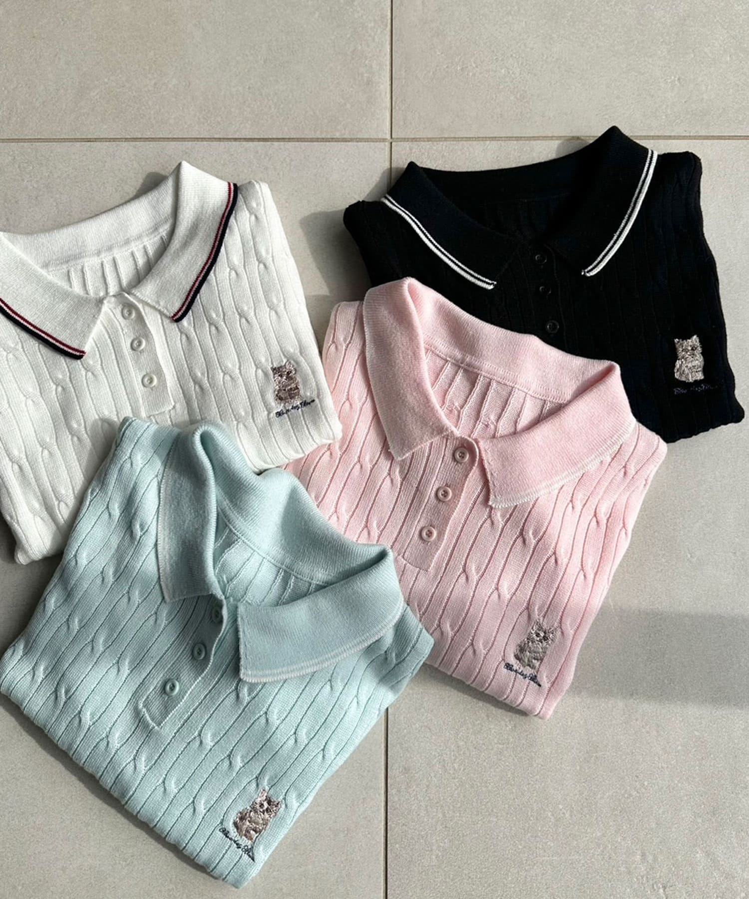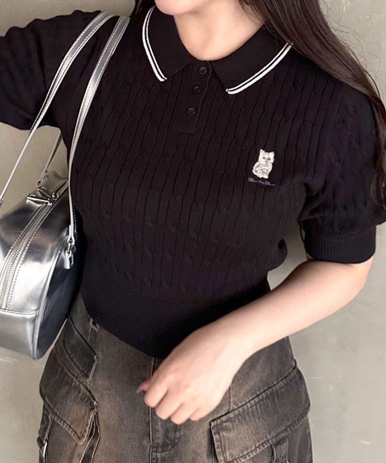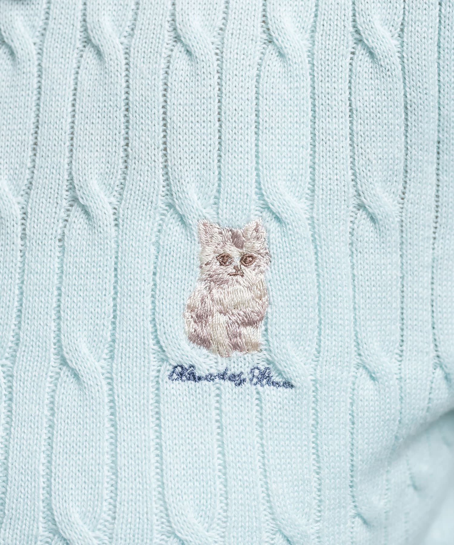 ・ネコ刺繍と衿の配色カラーが目を惹くポイント。
