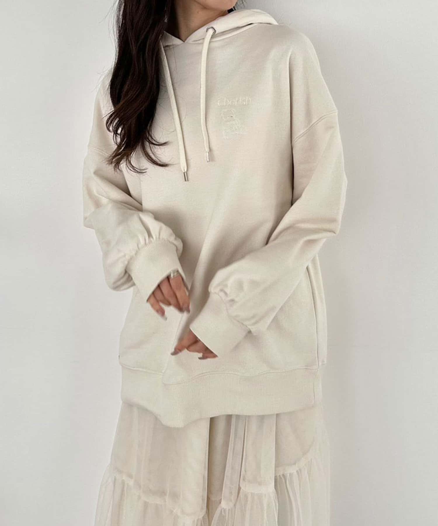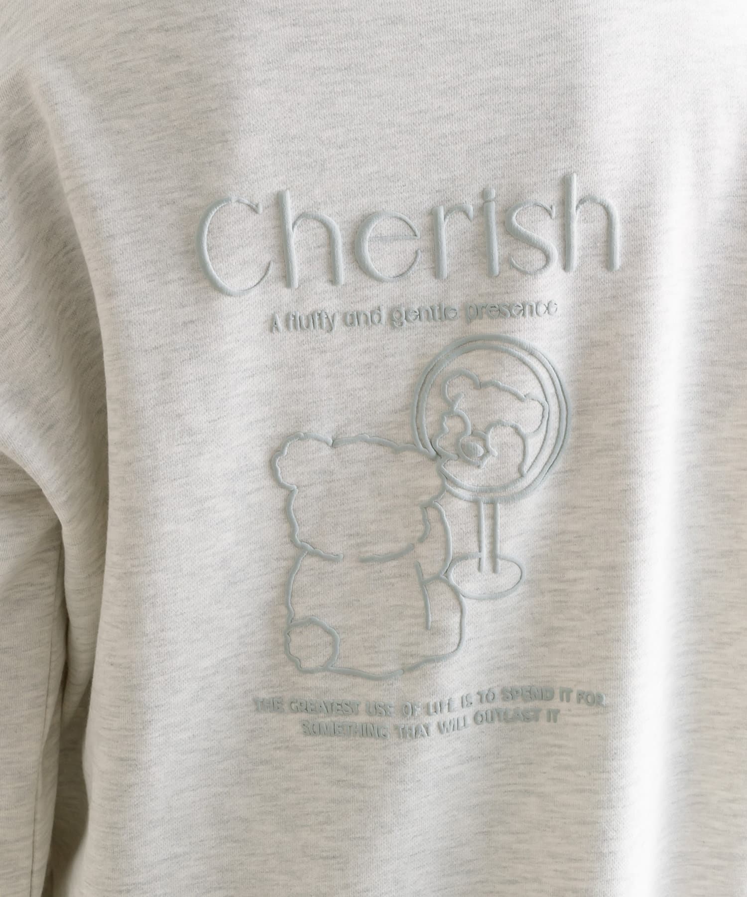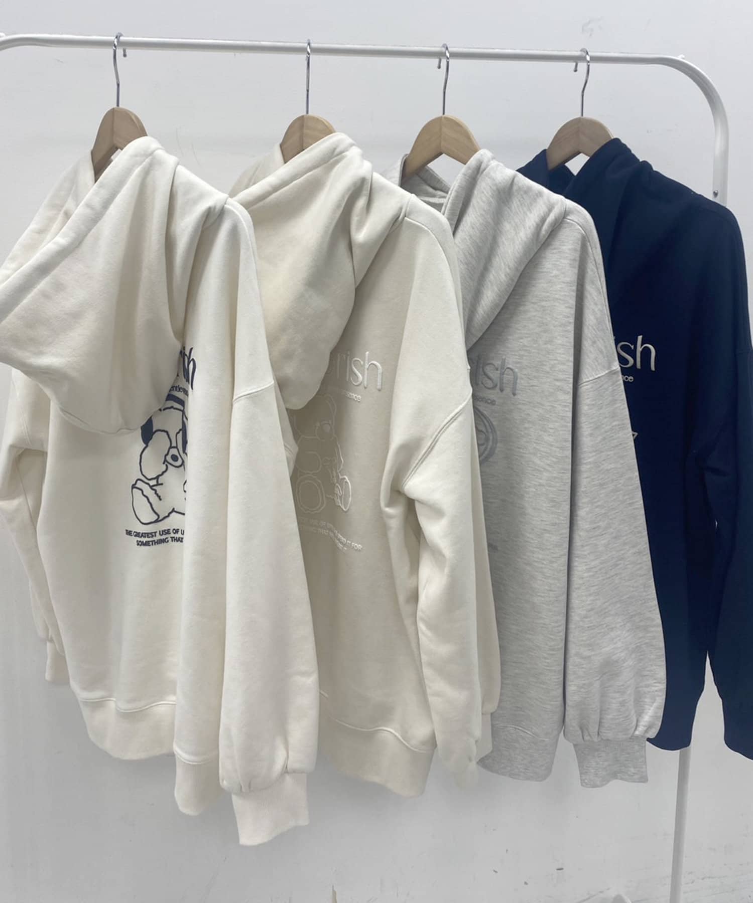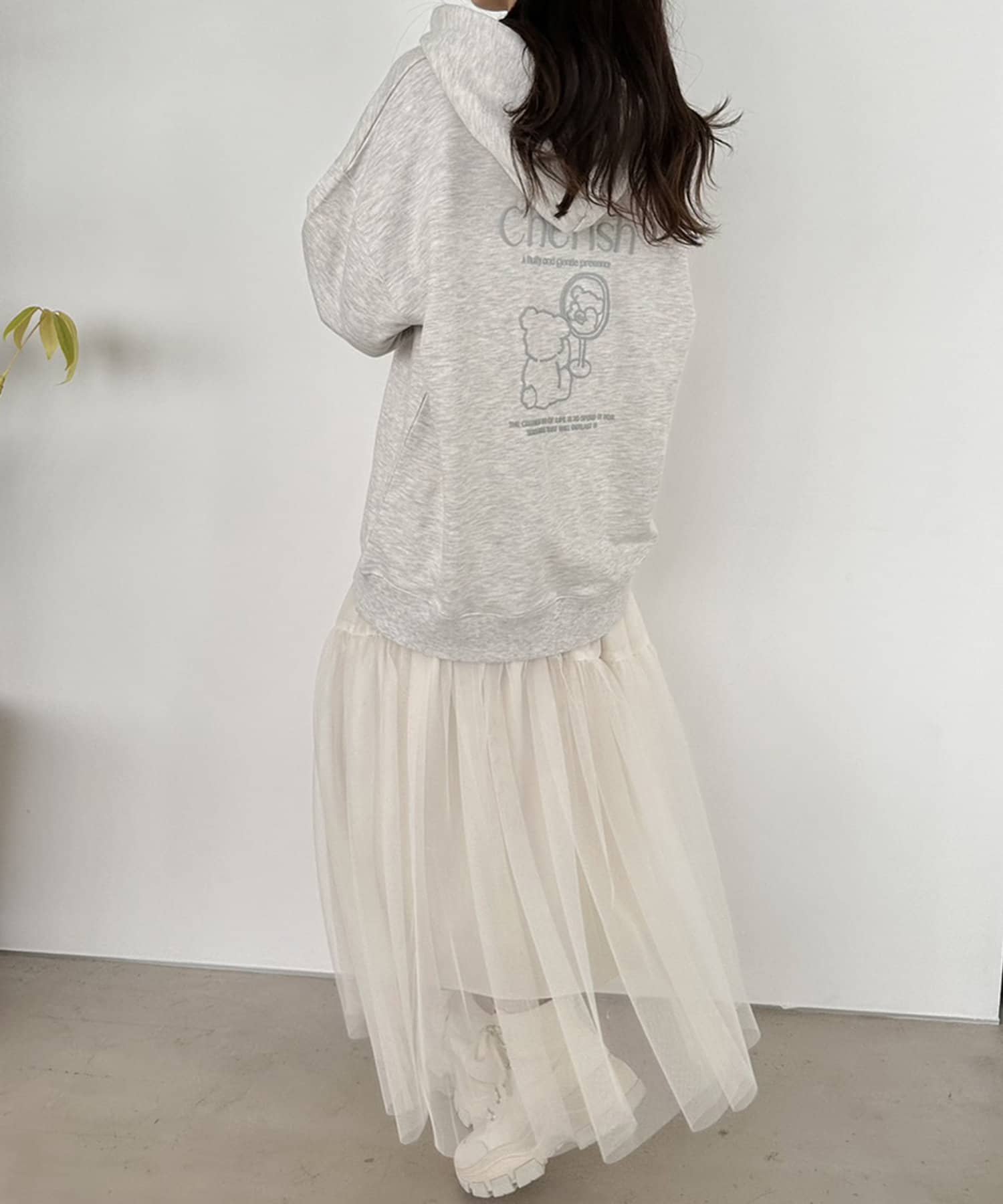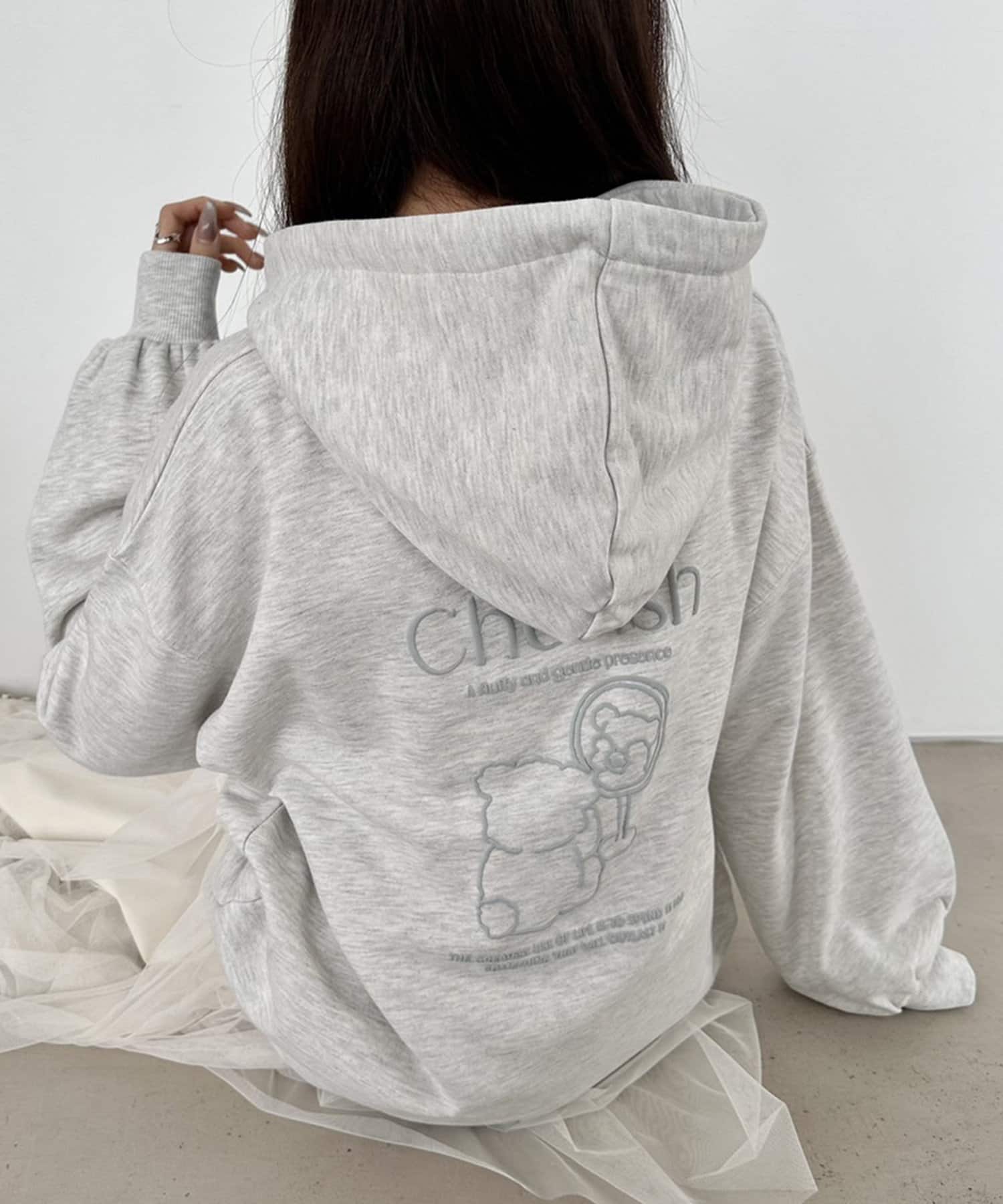 ・バックプリントに可愛らしいクマをプリントしたパーカー。
