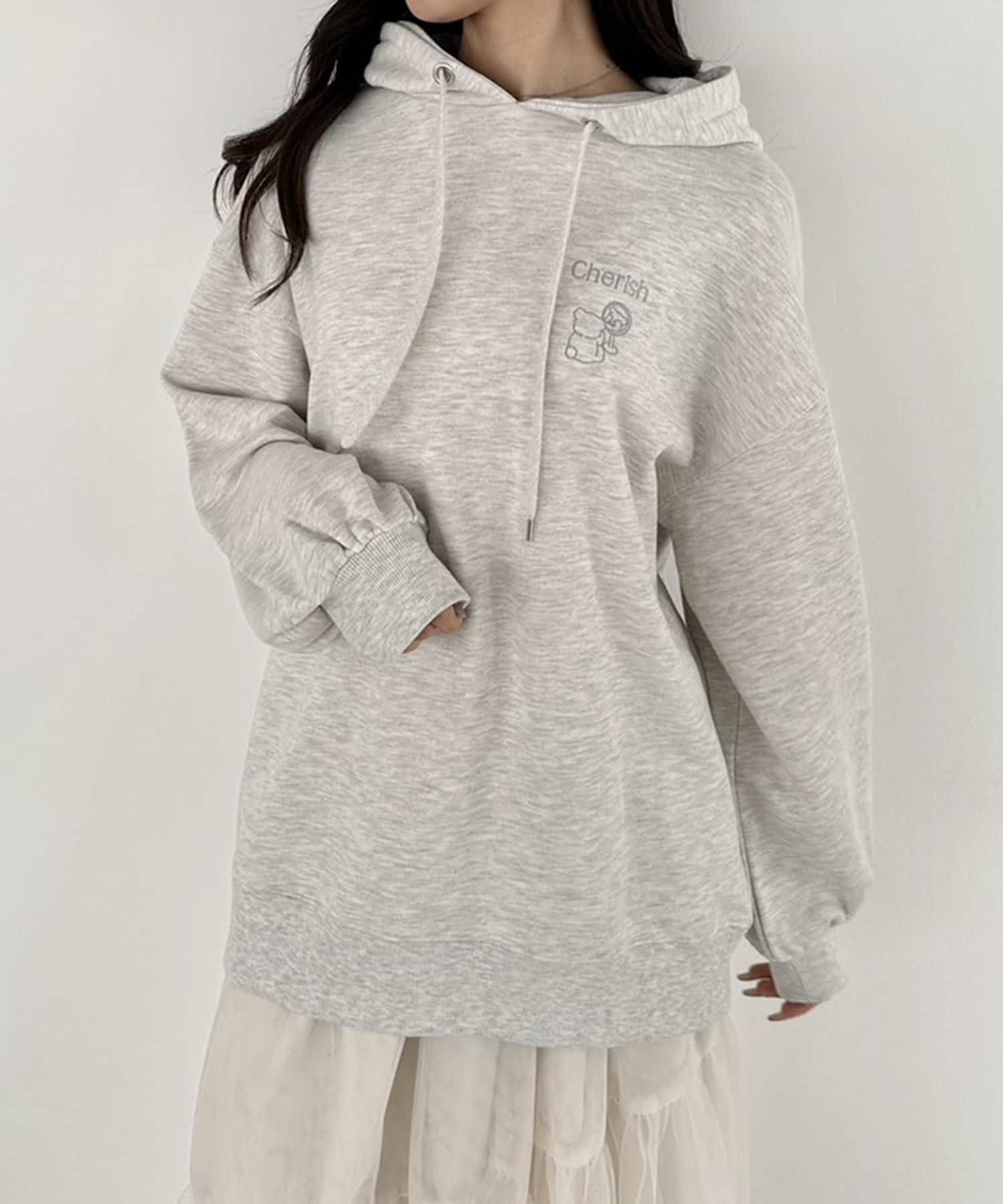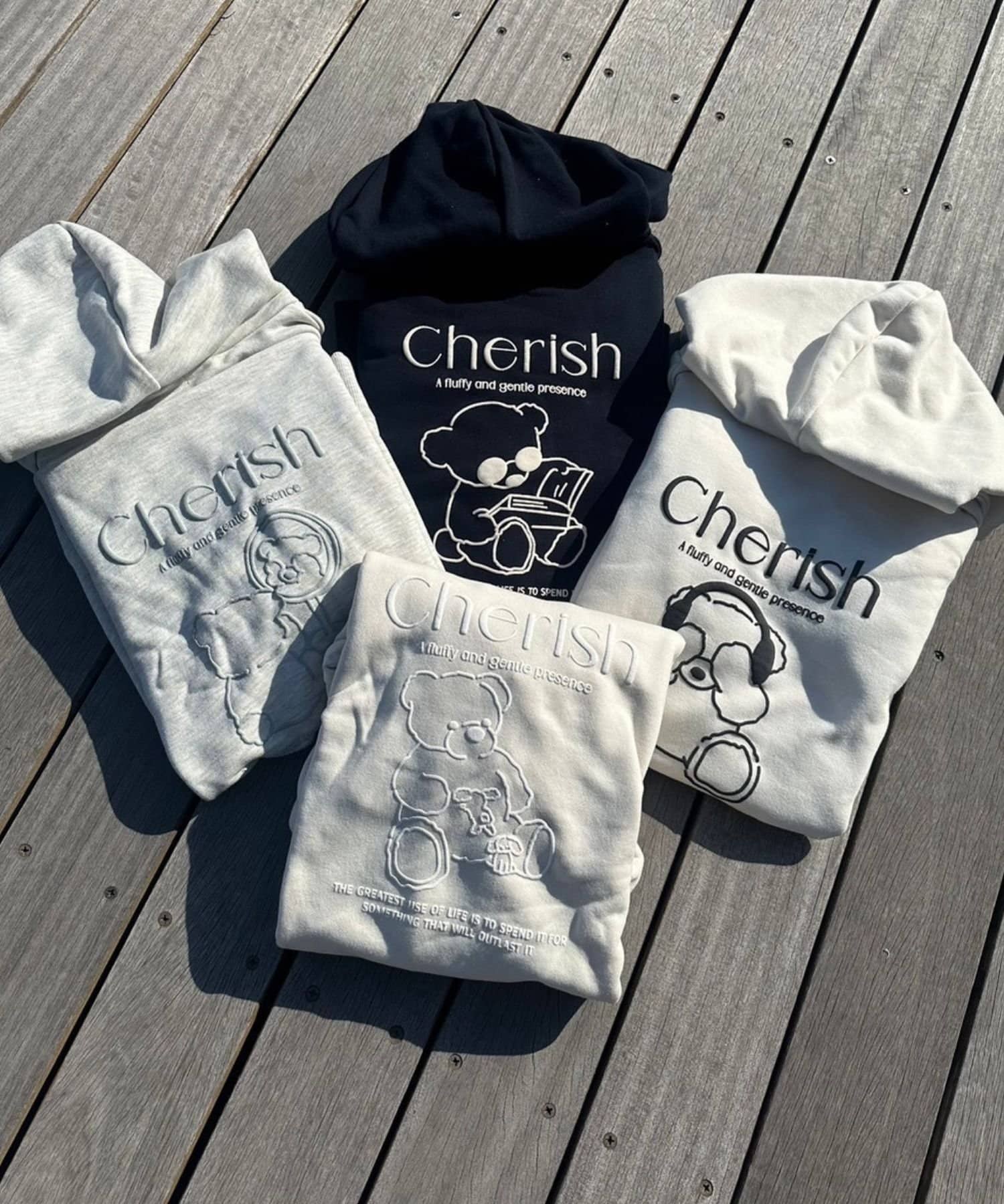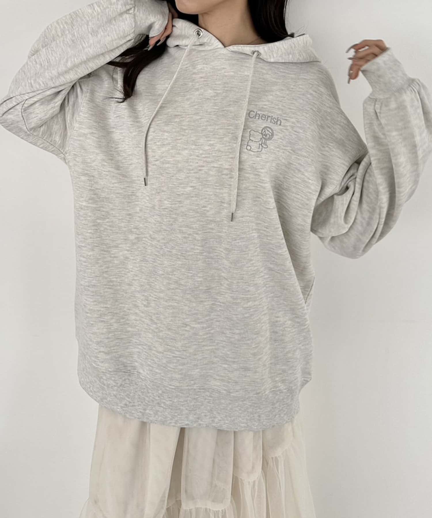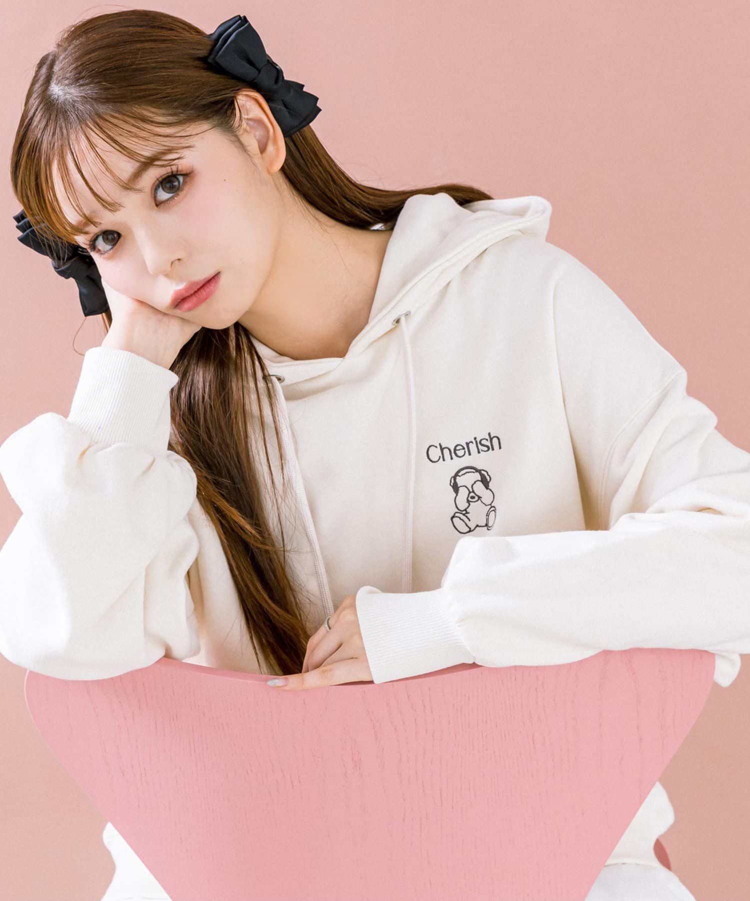 ・バックプリントに可愛らしいクマをプリントしたパーカー。