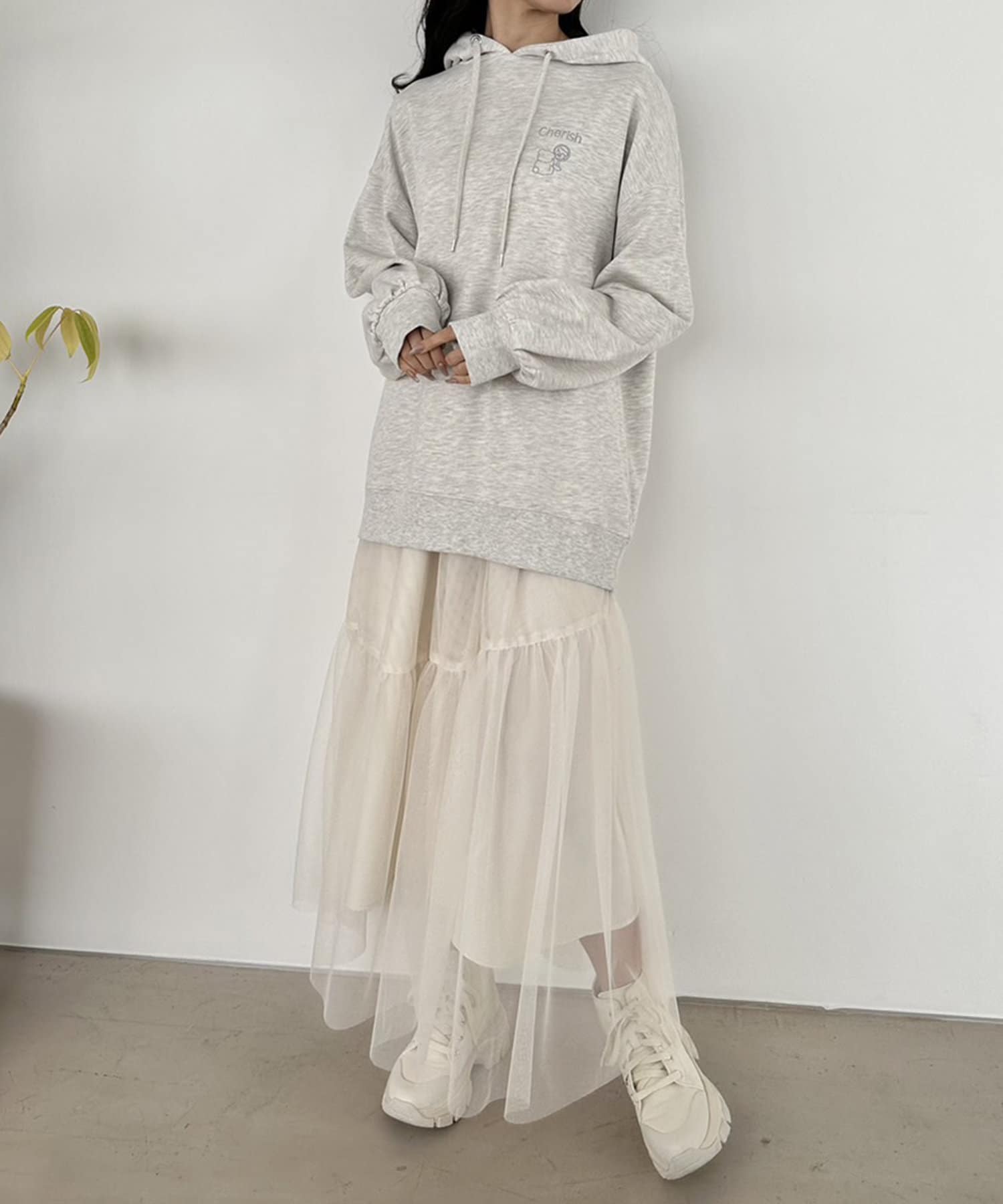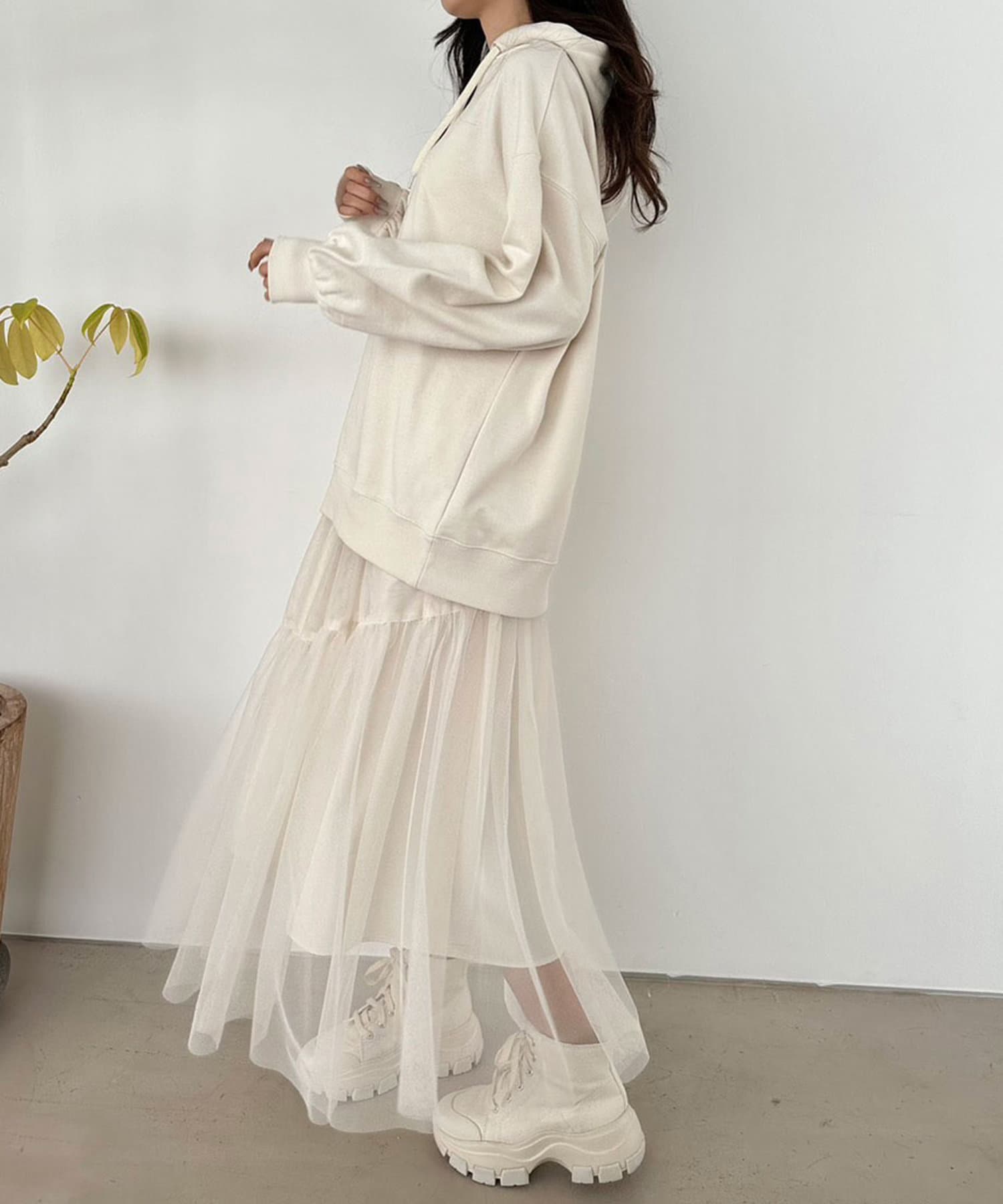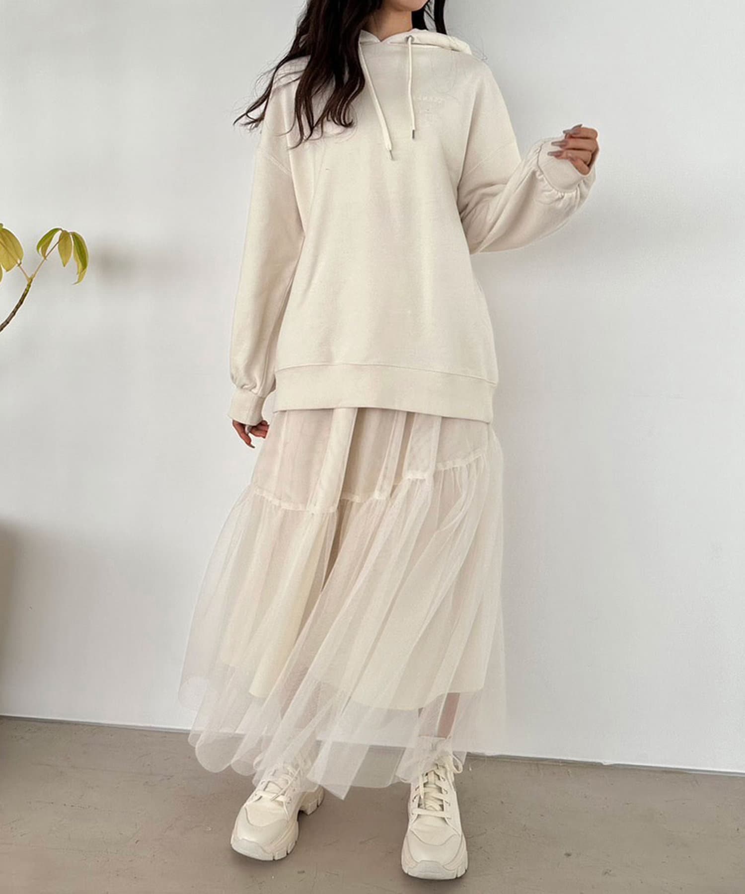 ・ゆるカジュアルに着たい方はチュールスカート合わせがおすすめ。