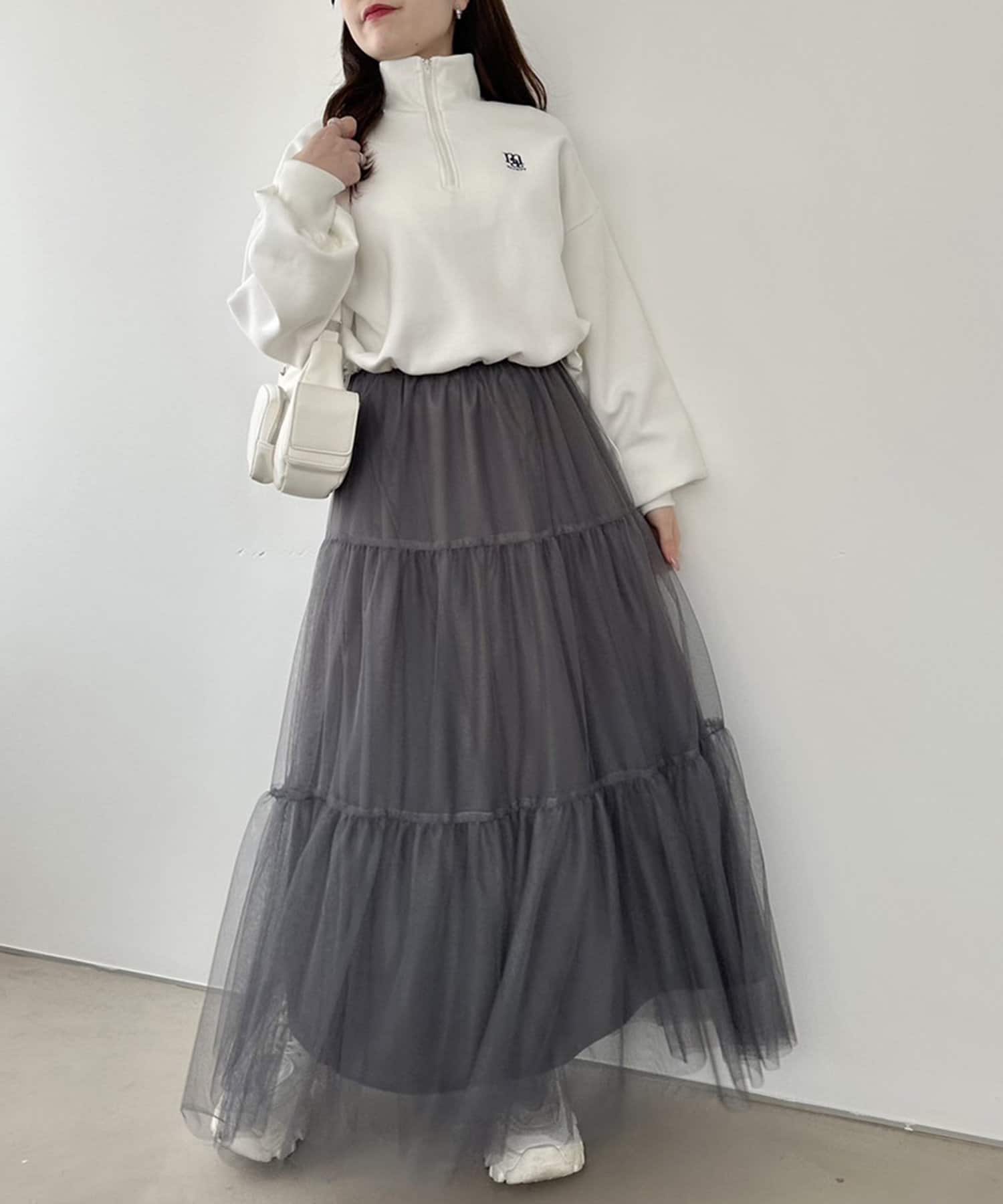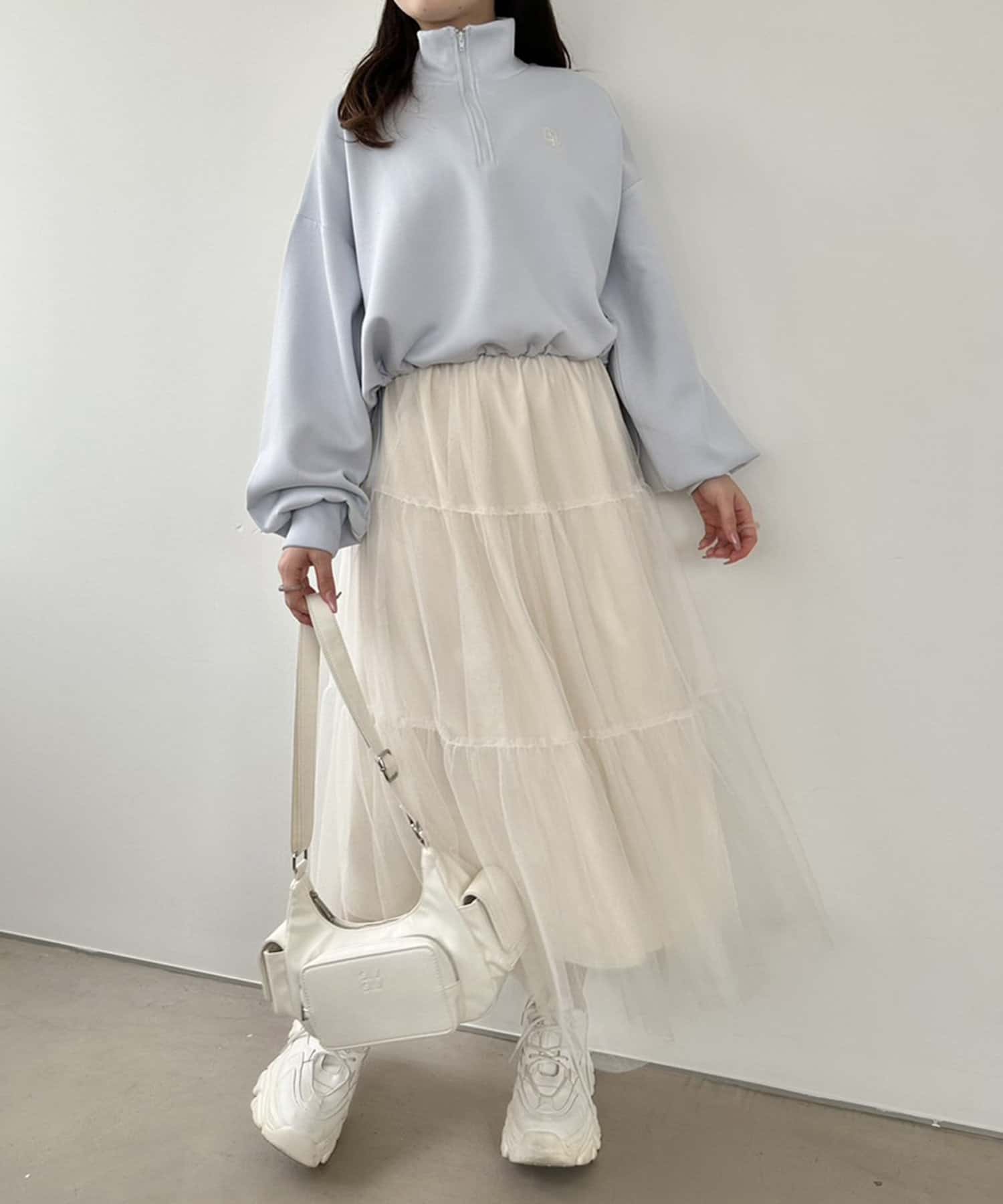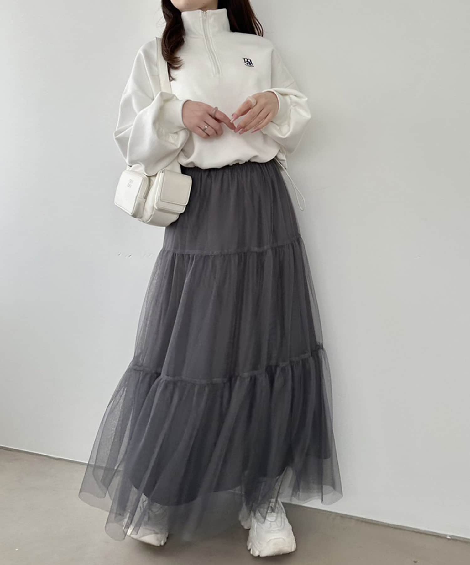 ・ゆるカジュアルに着たい方はチュールスカートで合わせても◎