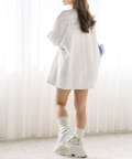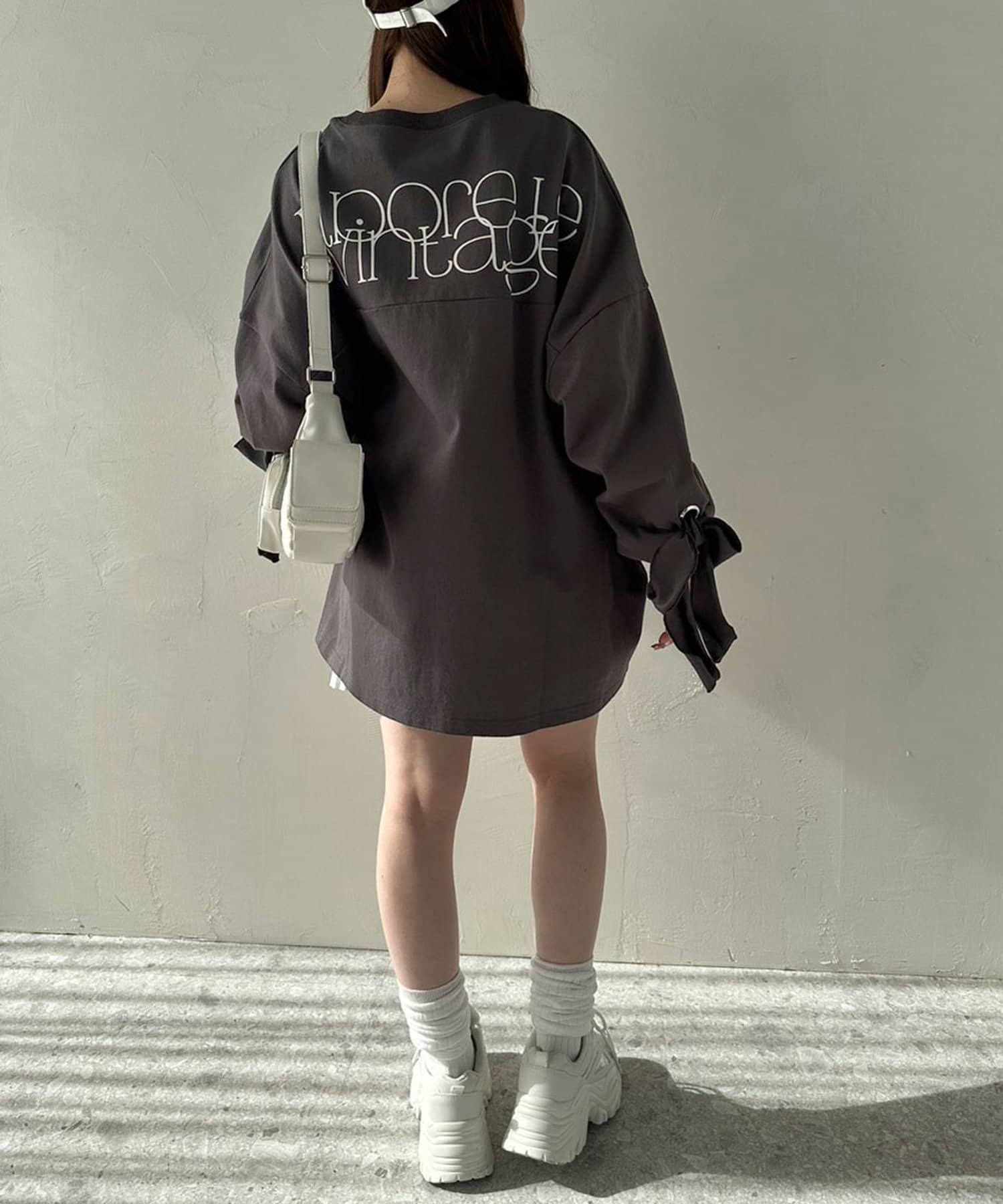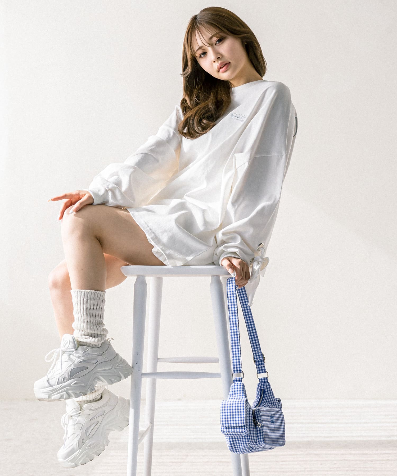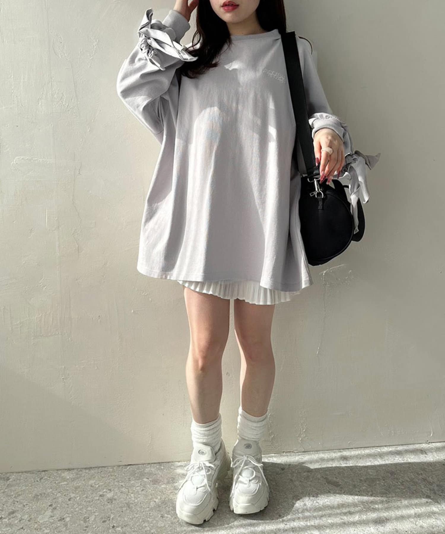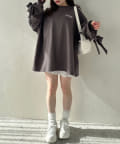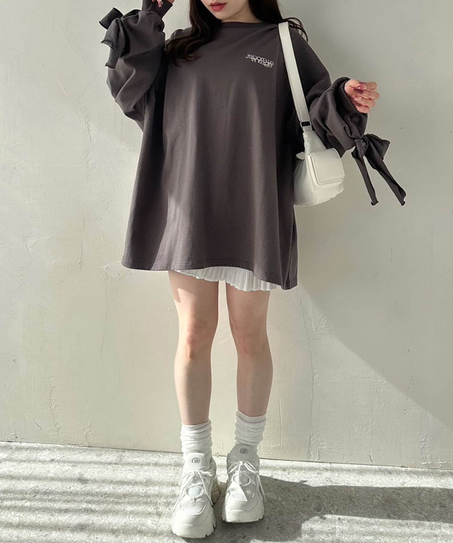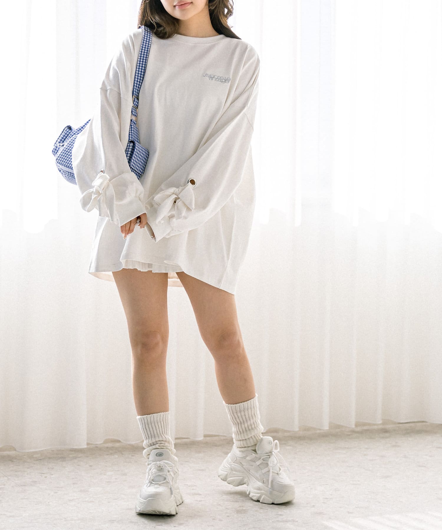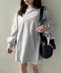 ・ミニボトムと合わせてミニワンピ風に着こなすと女の子らしいです。