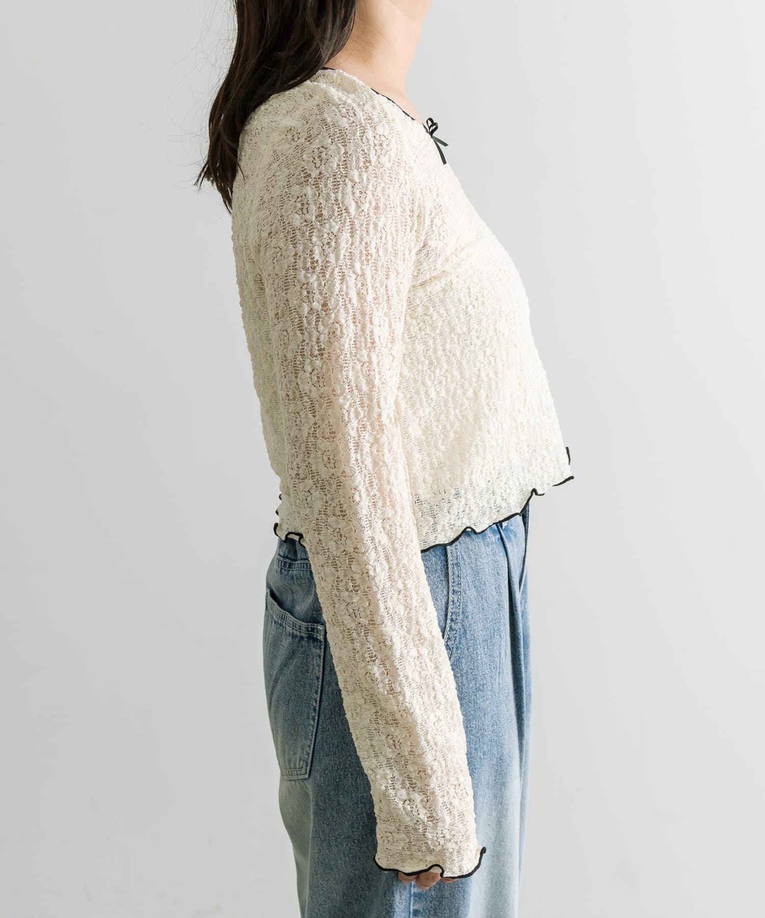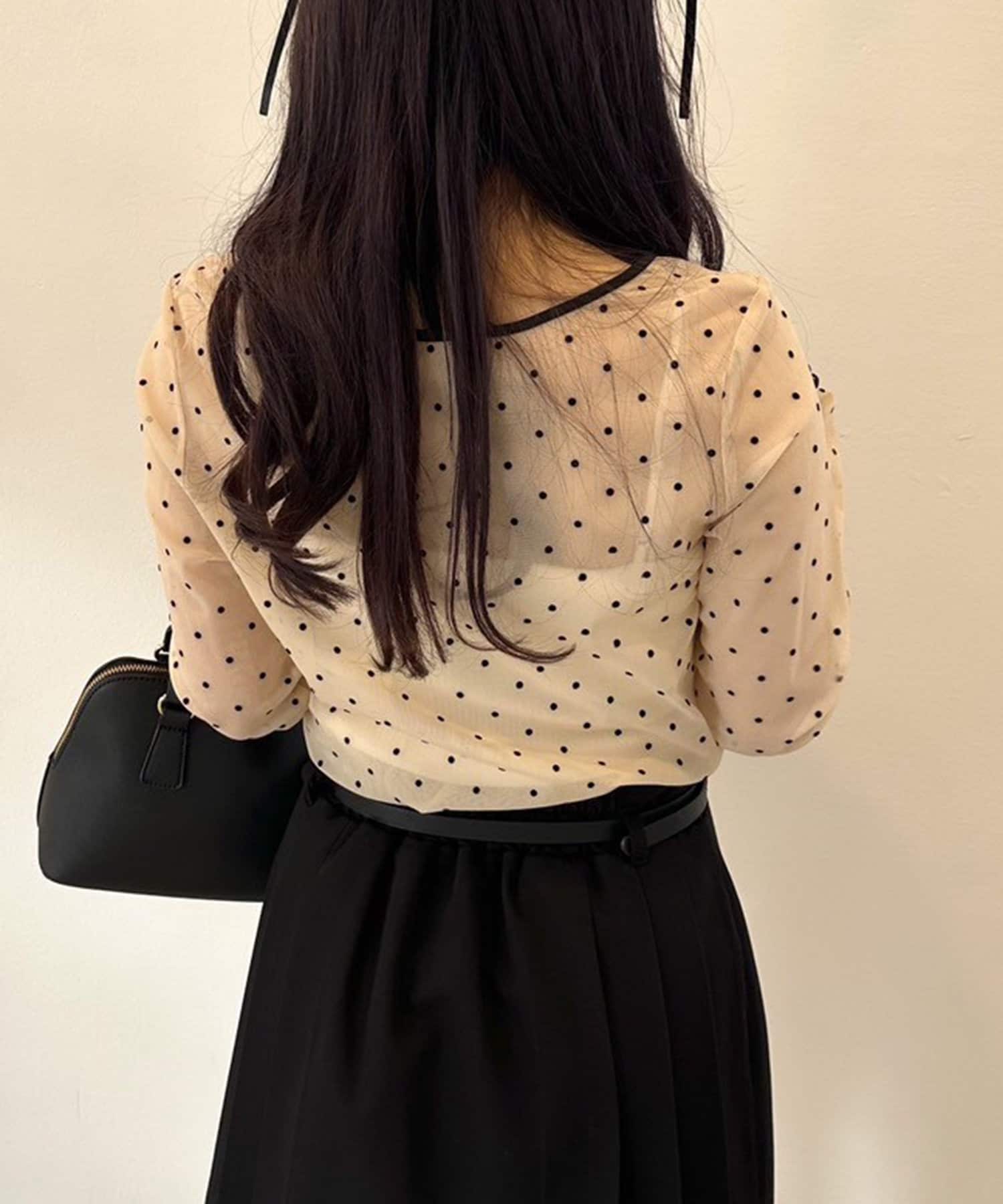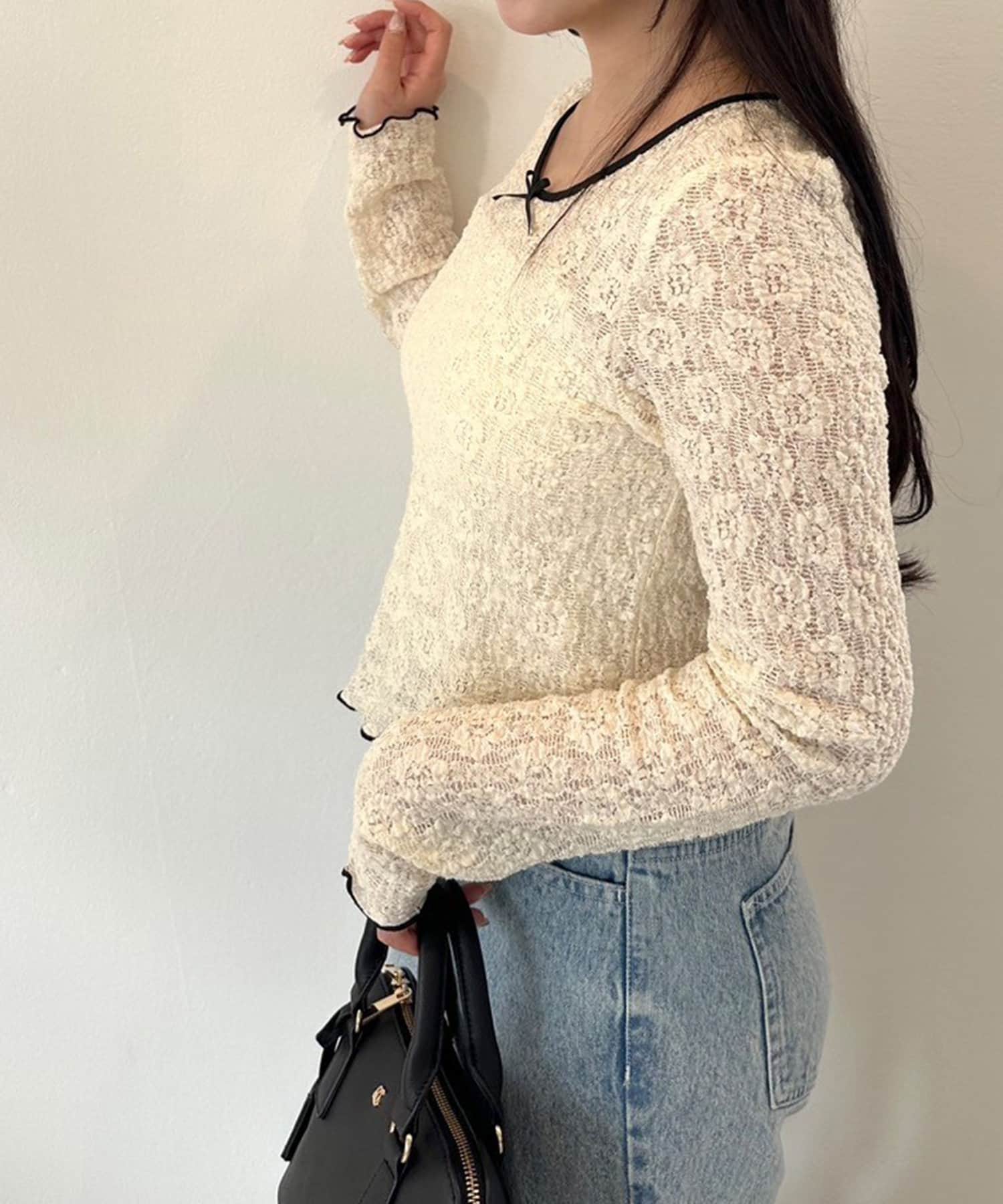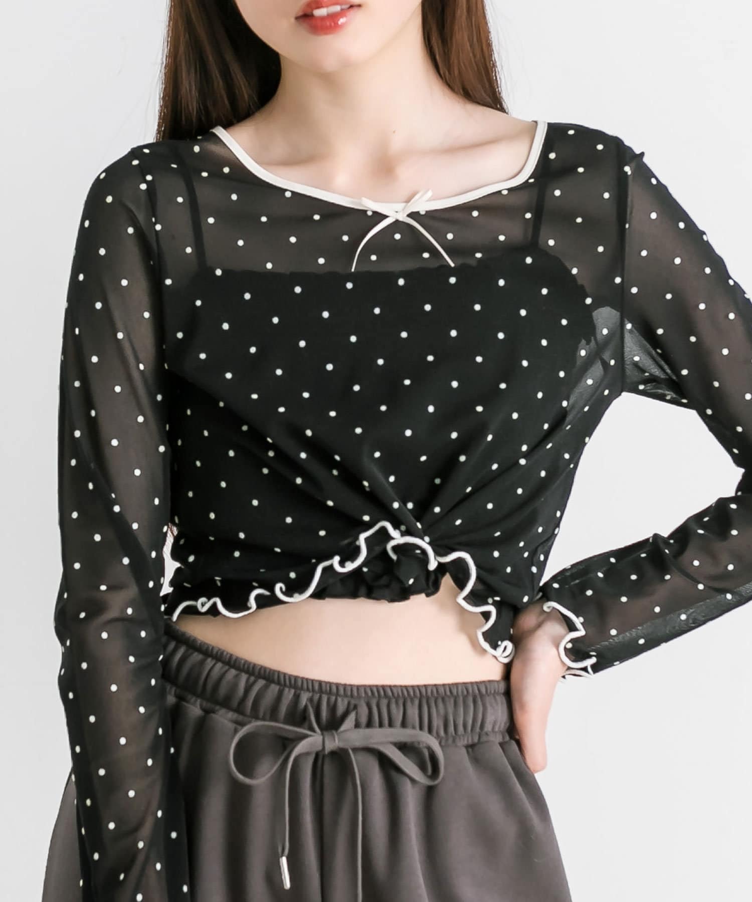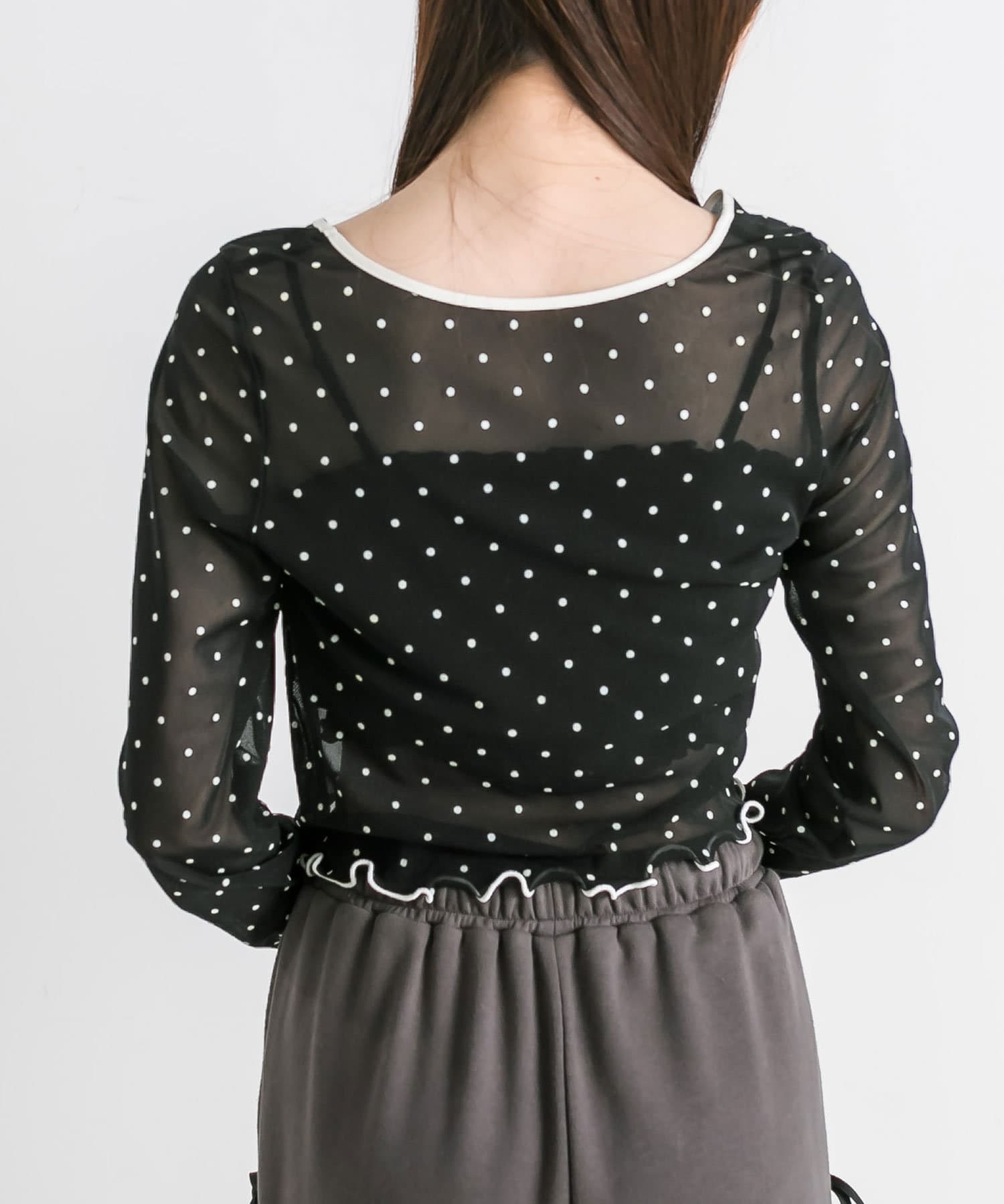 ・ちょうどいい透け感で肌なじみがよく、トップスとして着てもインナー感のないデザインです。