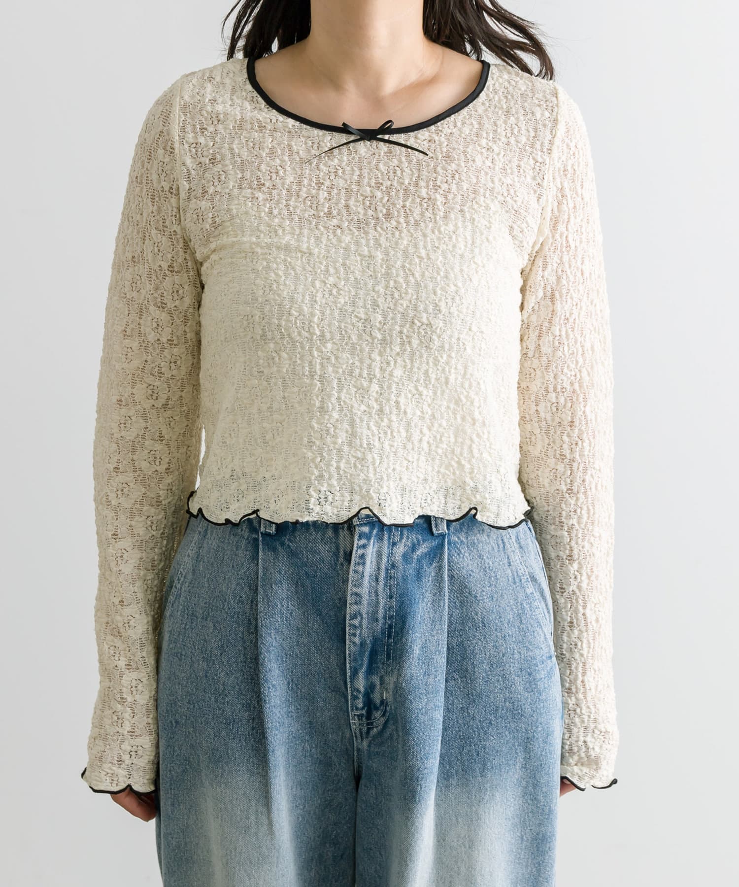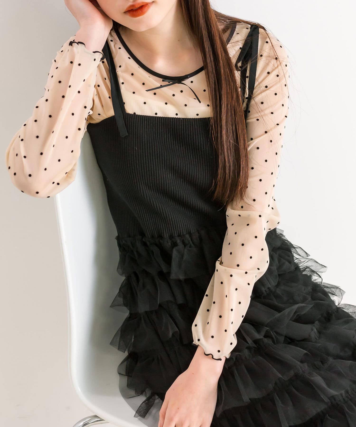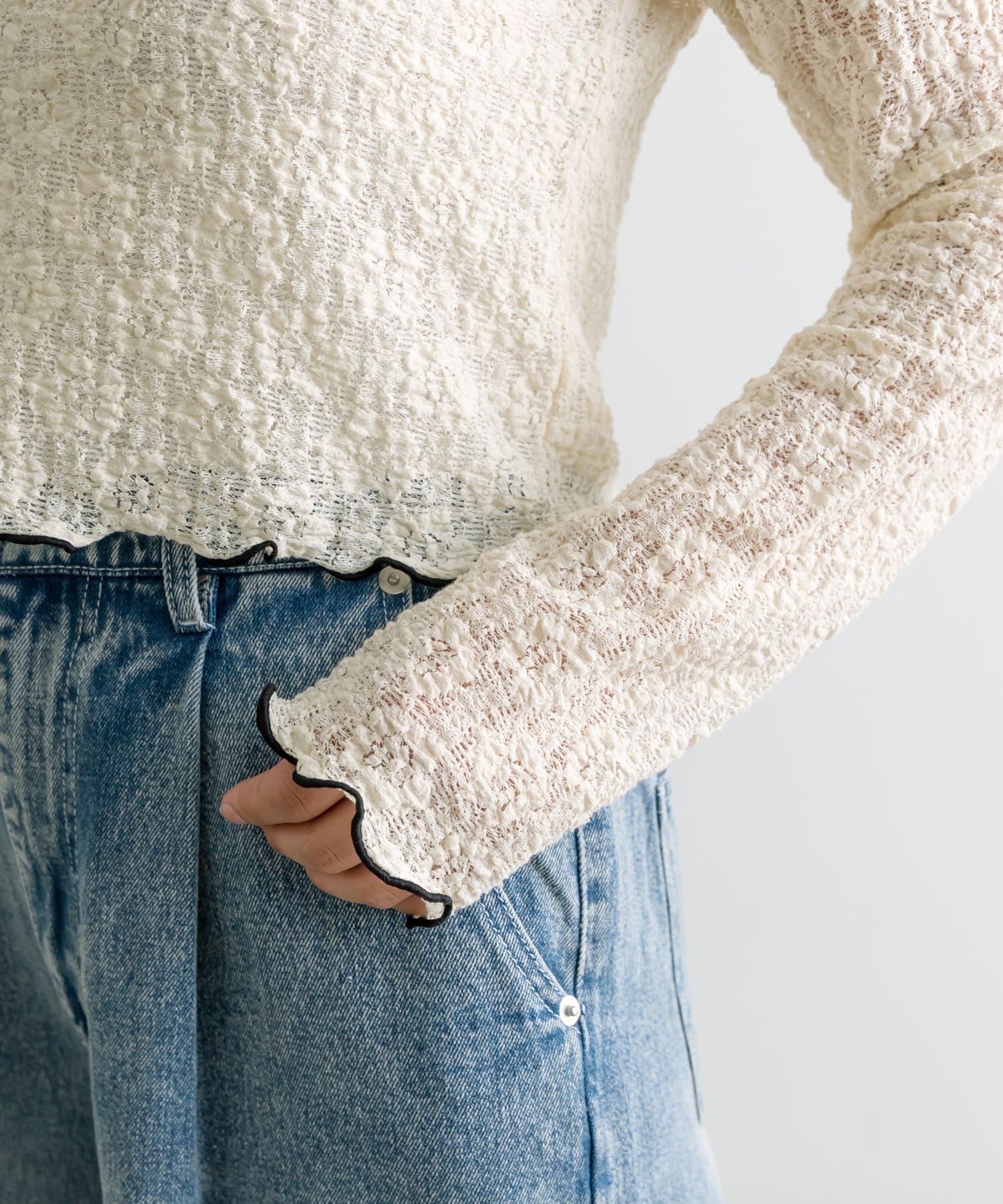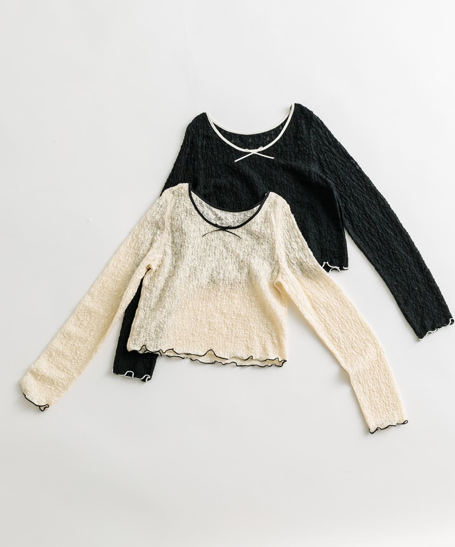 ・ちょうどいい透け感で肌なじみがよく、トップスとして着てもインナー感のないデザインです。